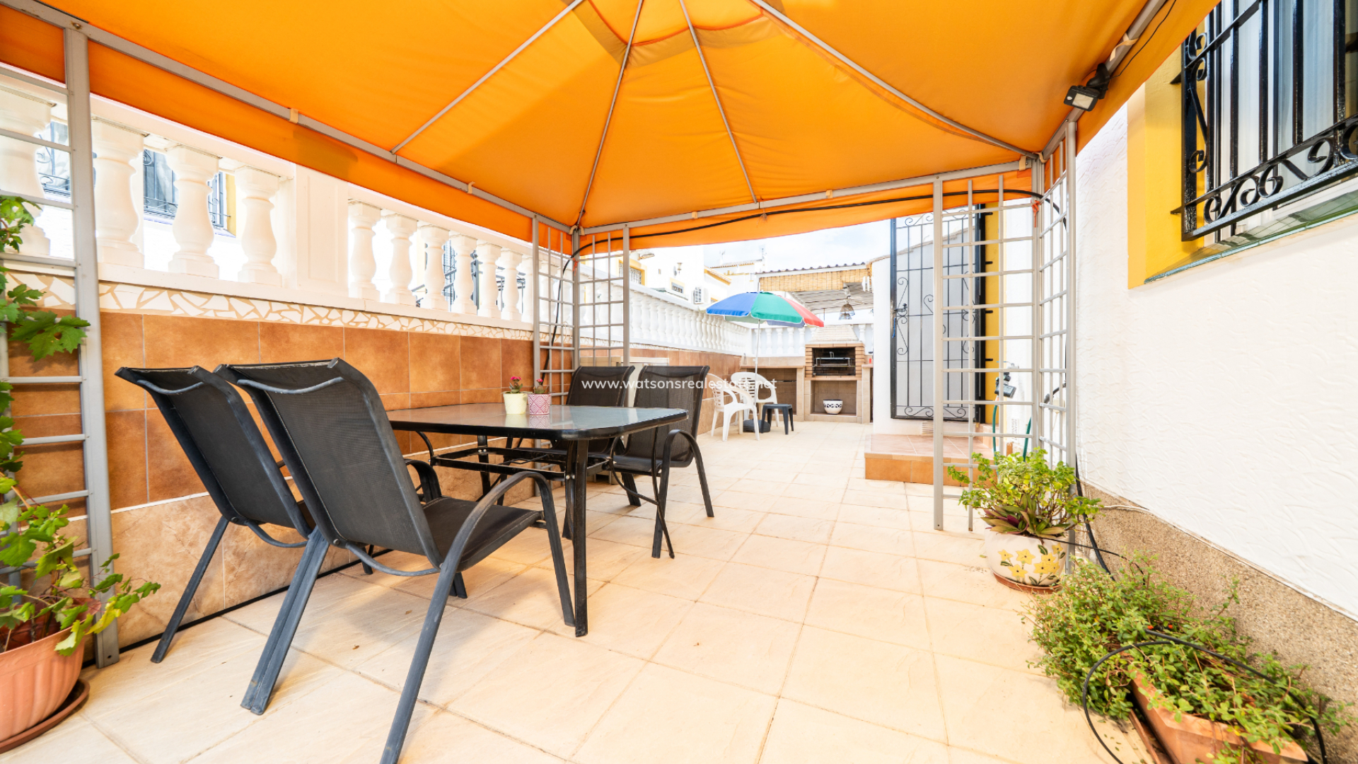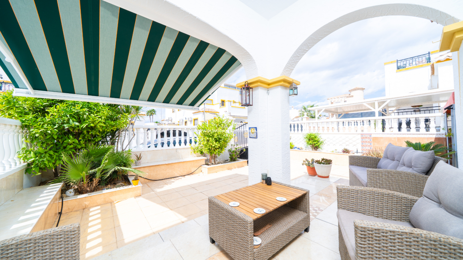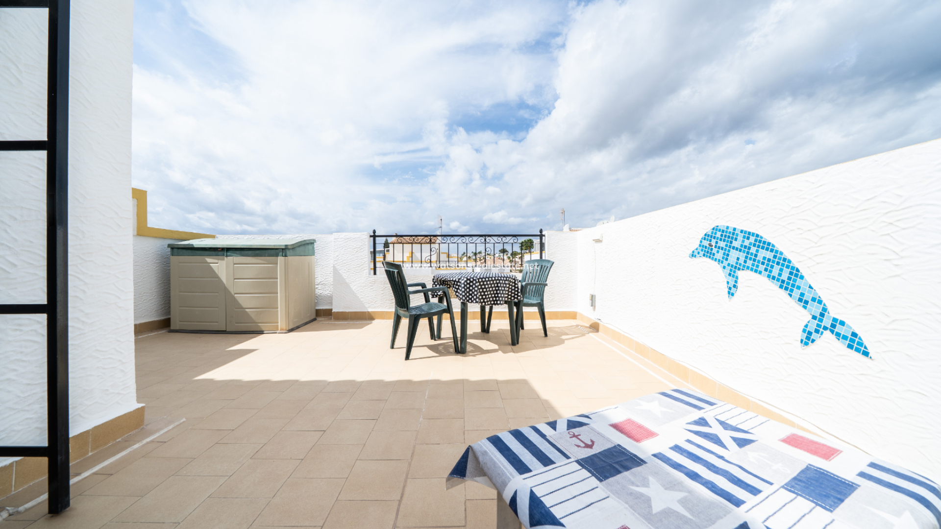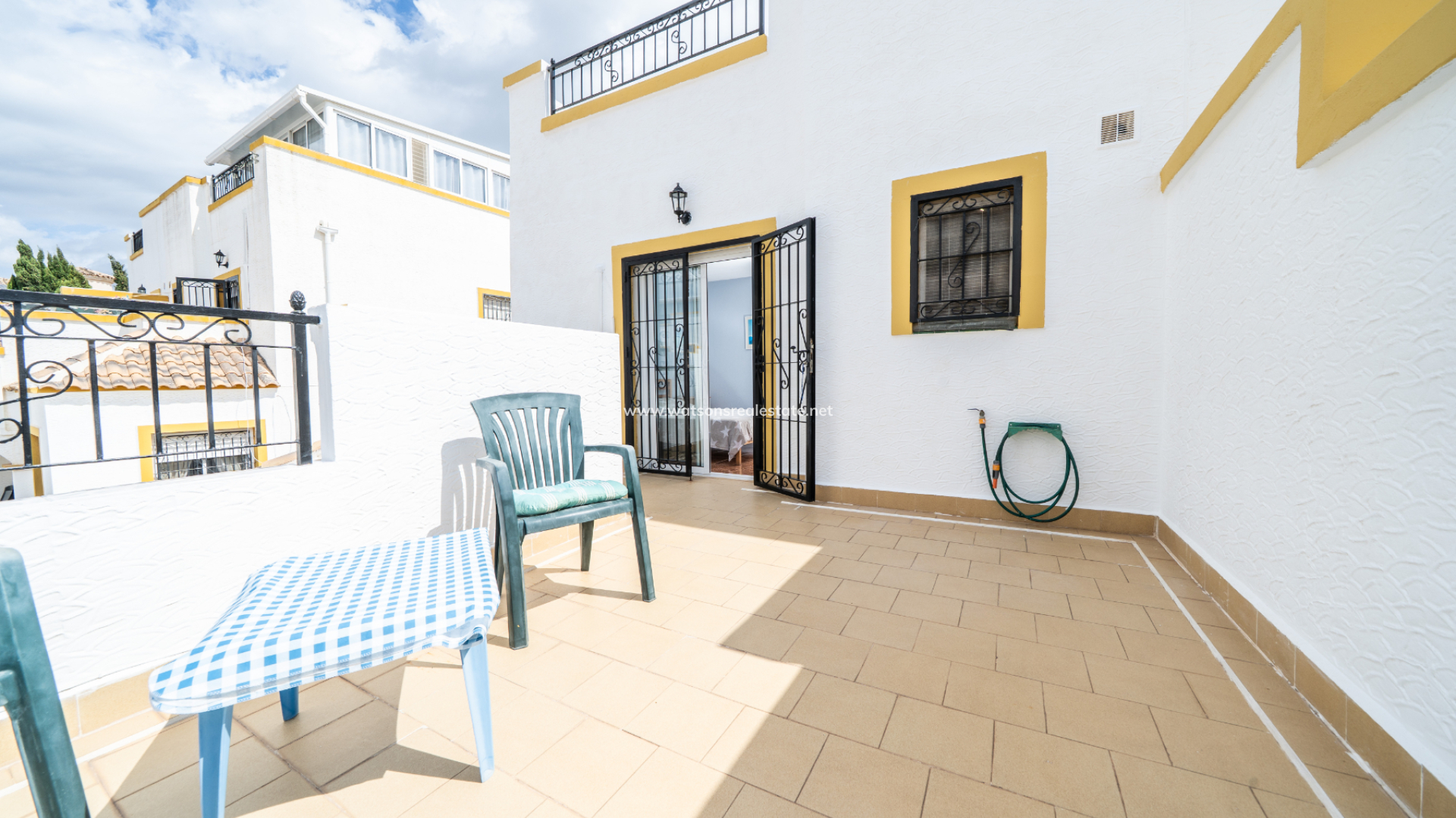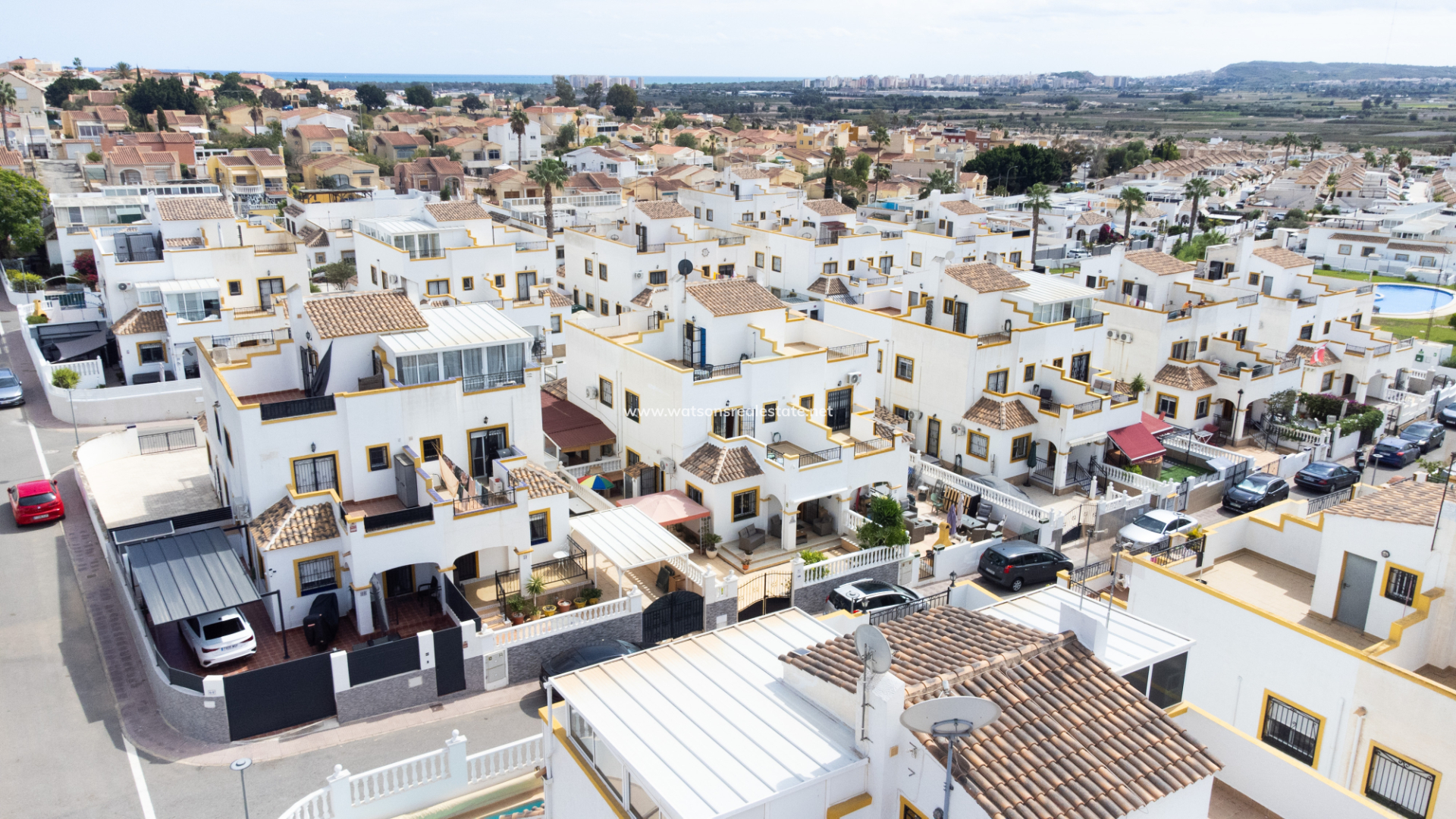 Dieses voll möblierte Quad in La Marina bietet 3 Schlafzimmer und 2 Badezimmer auf 83 m² Wohnfläche auf einem 72 m² großen Grundstück. Mit einer renovierten Küche, Klimaanlage, doppelt verglasten Fenstern, Deckenventilatoren und Haushaltsgeräten ausgestattet, verfügt die Immobilie auch über ein Solarium auf dem Dach, einen Grillplatz und Zugang zu einem Gemeinschaftspool. Nur 3 km vom Strand, 25 km vom Flughafen, 10 km von nahegelegenen Golfplätzen und nur 150 Meter von lokalen Annehmlichkeiten entfernt, bietet es schöne Aussichten und eine ruhige Lage bei gleichzeitig hervorragendem Vermietungspotenzial.