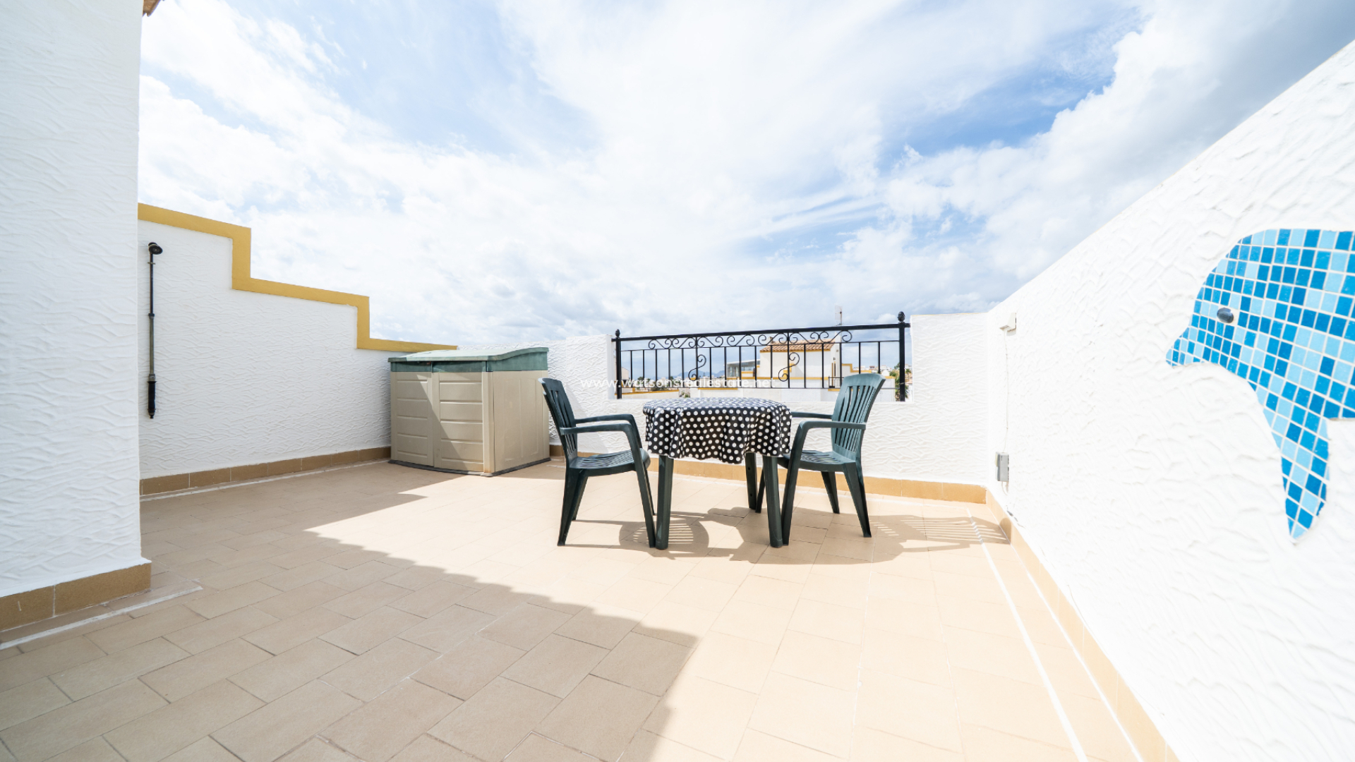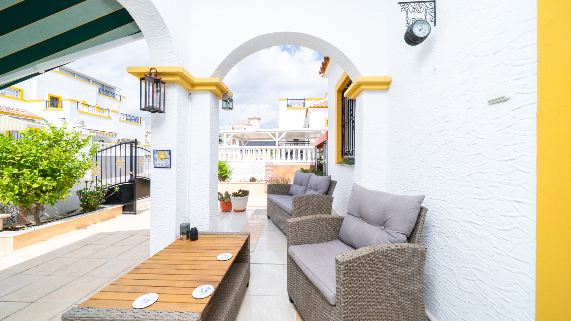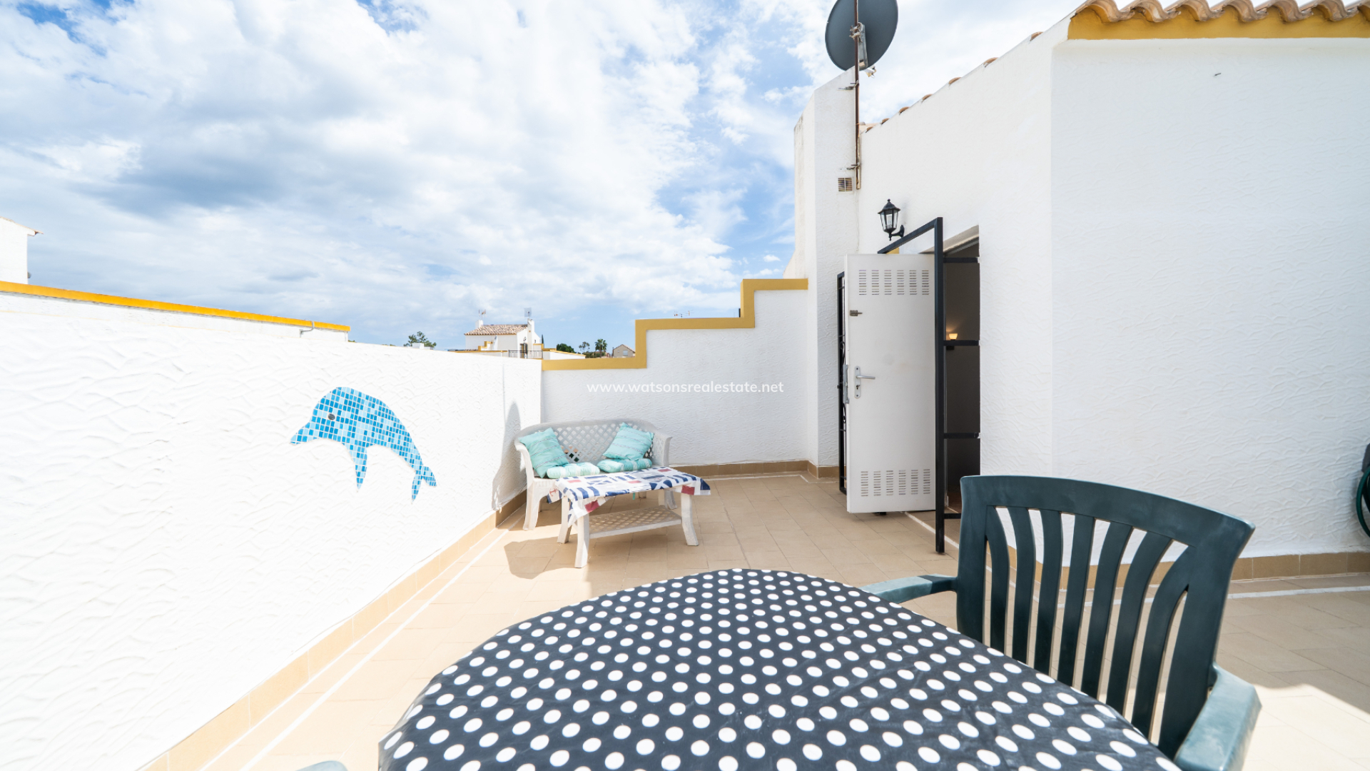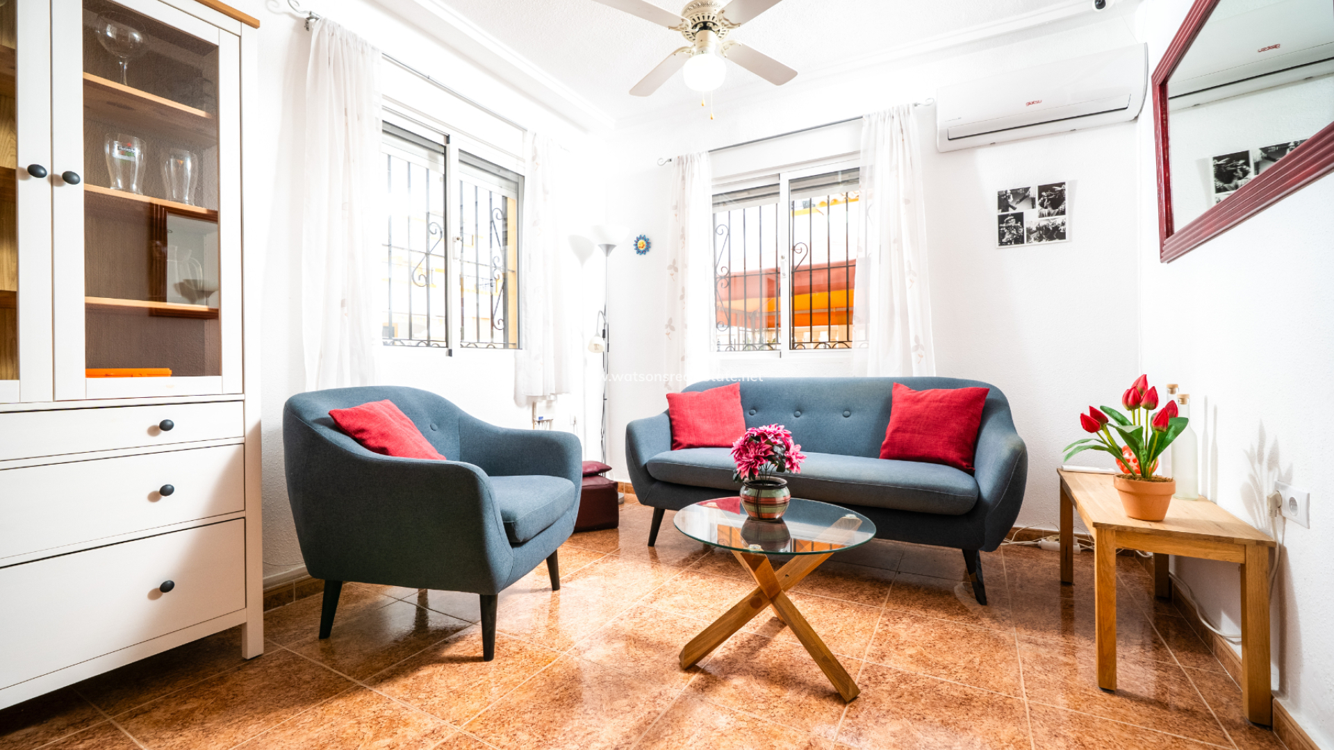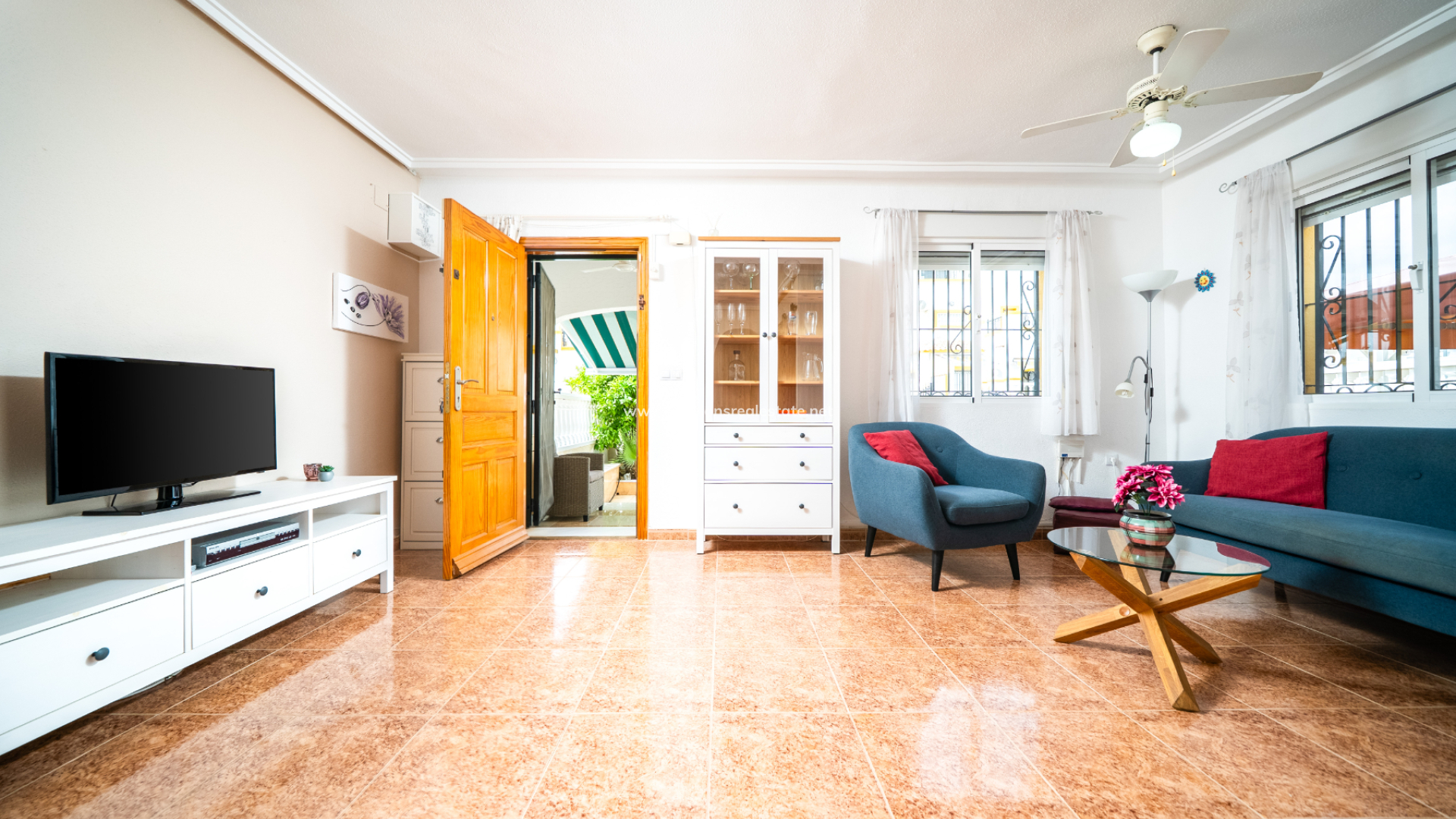 Dieses voll möblierte Quad in La Marina bietet 3 Schlafzimmer und 2 Badezimmer auf 83 m² Wohnfläche auf einem 72 m² großen Grundstück. Mit einer renovierten Küche, Klimaanlage, doppelt verglasten Fenstern, Deckenventilatoren und Haushaltsgeräten ausgestattet, verfügt die Immobilie auch über ein Solarium auf dem Dach, einen Grillplatz und Zugang zu einem Gemeinschaftspool. Nur 3 km vom Strand, 25 km vom Flughafen, 10 km von nahegelegenen Golfplätzen und nur 150 Meter von lokalen Annehmlichkeiten entfernt, bietet es schöne Aussichten und eine ruhige Lage bei gleichzeitig hervorragendem Vermietungspotenzial.