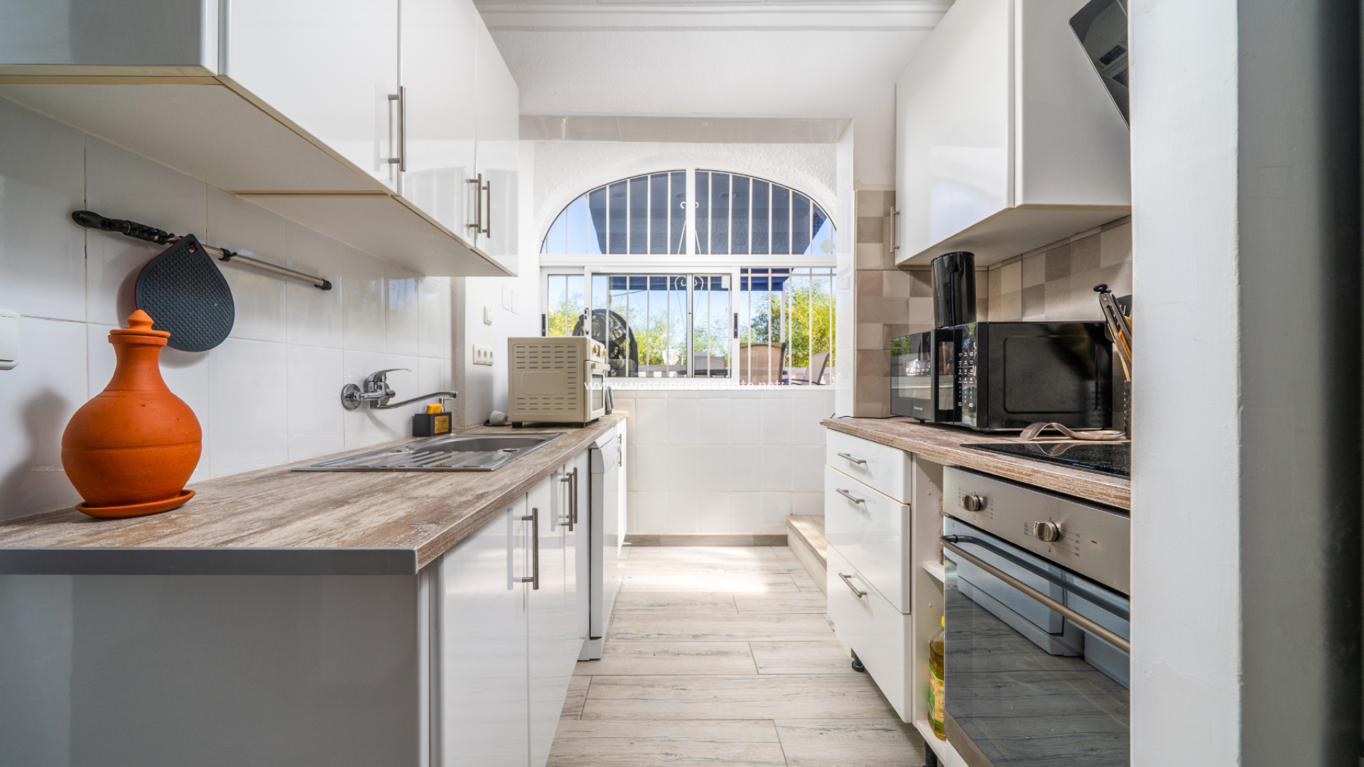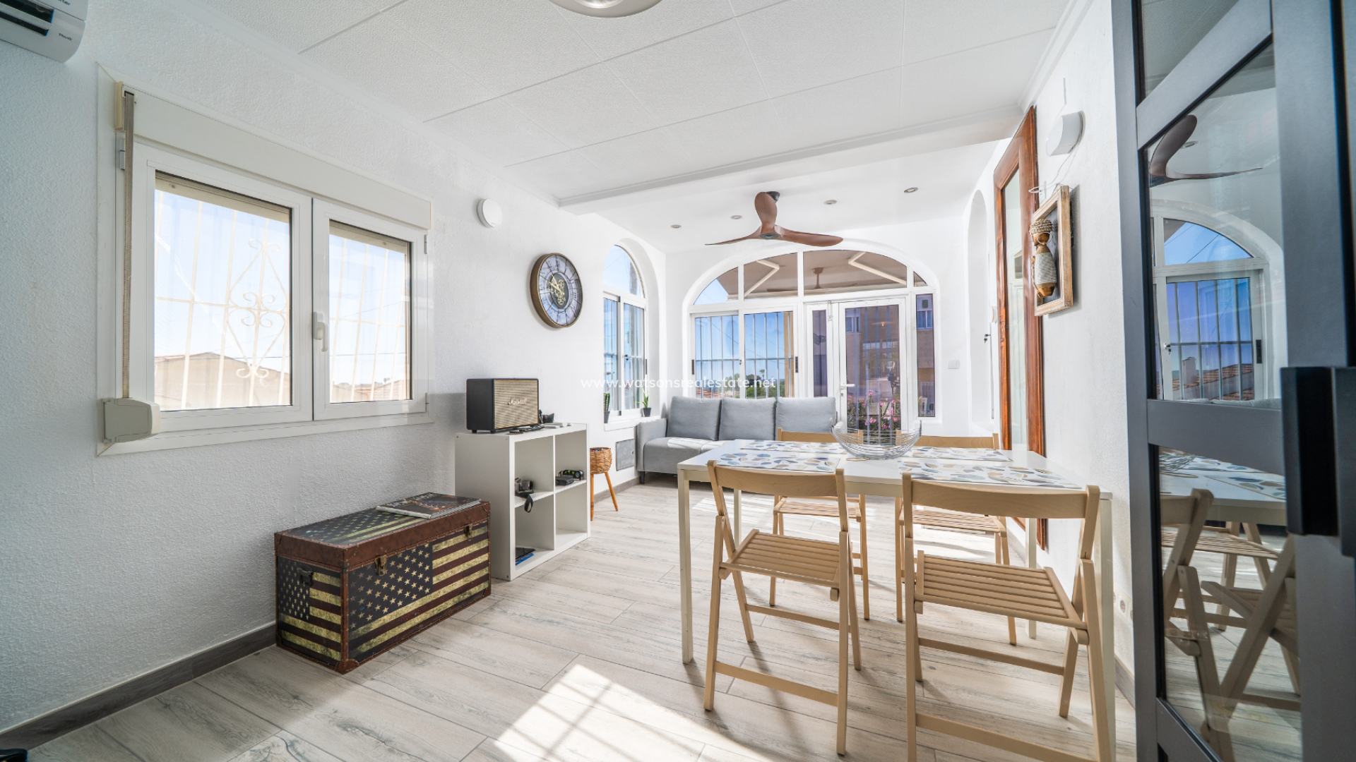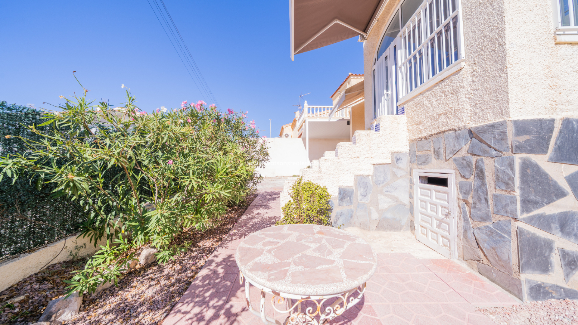 Viva de forma sostenible con estilo en esta villa unifamiliar reformada, situada en una tranquila calle sin salida en la popular urbanización La Marina, San Fulgencio. Esta villa se encuentra a poca distancia a pie de los servicios y del mercado semanal de los jueves, donde se puede disfrutar de productos frescos y delicias locales o sentarse en una de las cafeterías a tomar un refresco y ver pasar la vida. Esta casa, un modelo Rosa ampliado, ha sido meticulosamente actualizada y cuenta con 2 dormitorios y 1 baño.