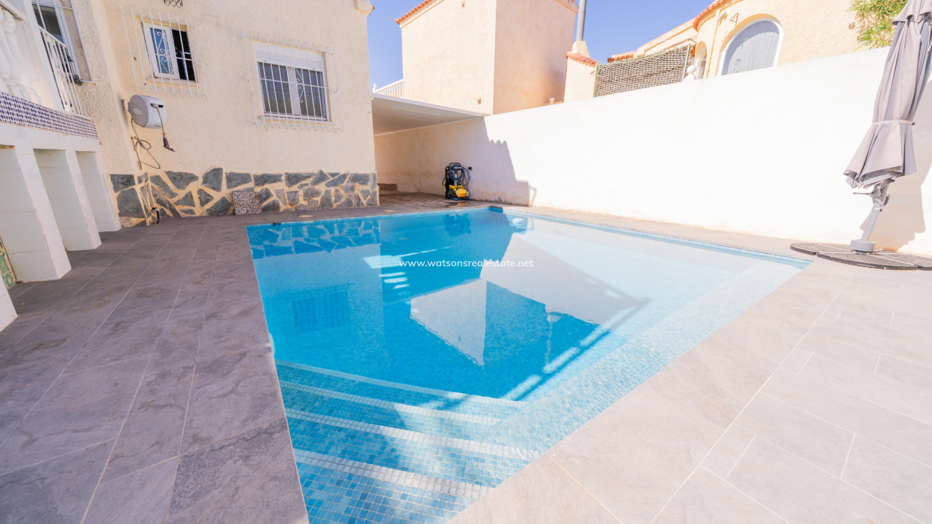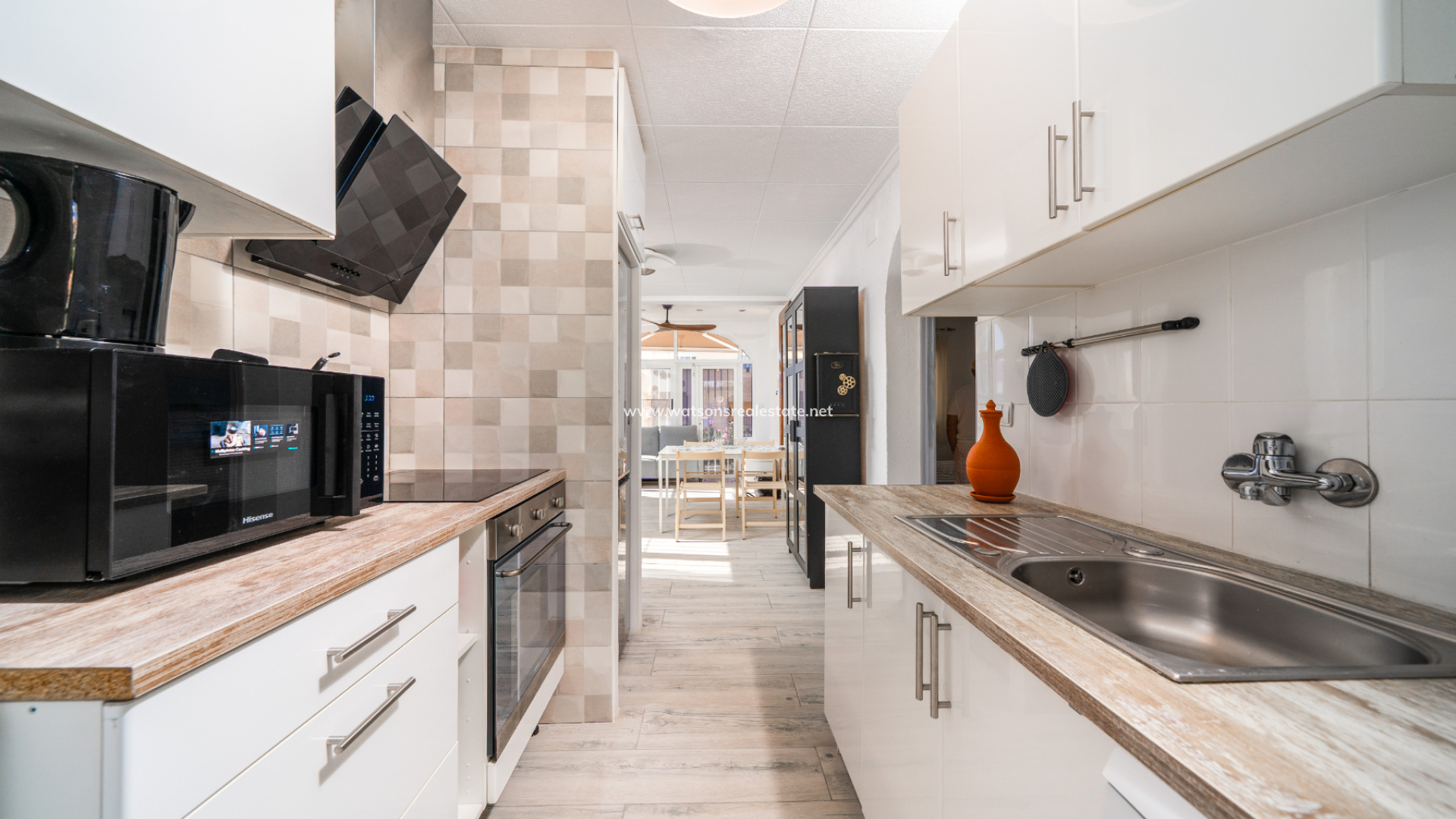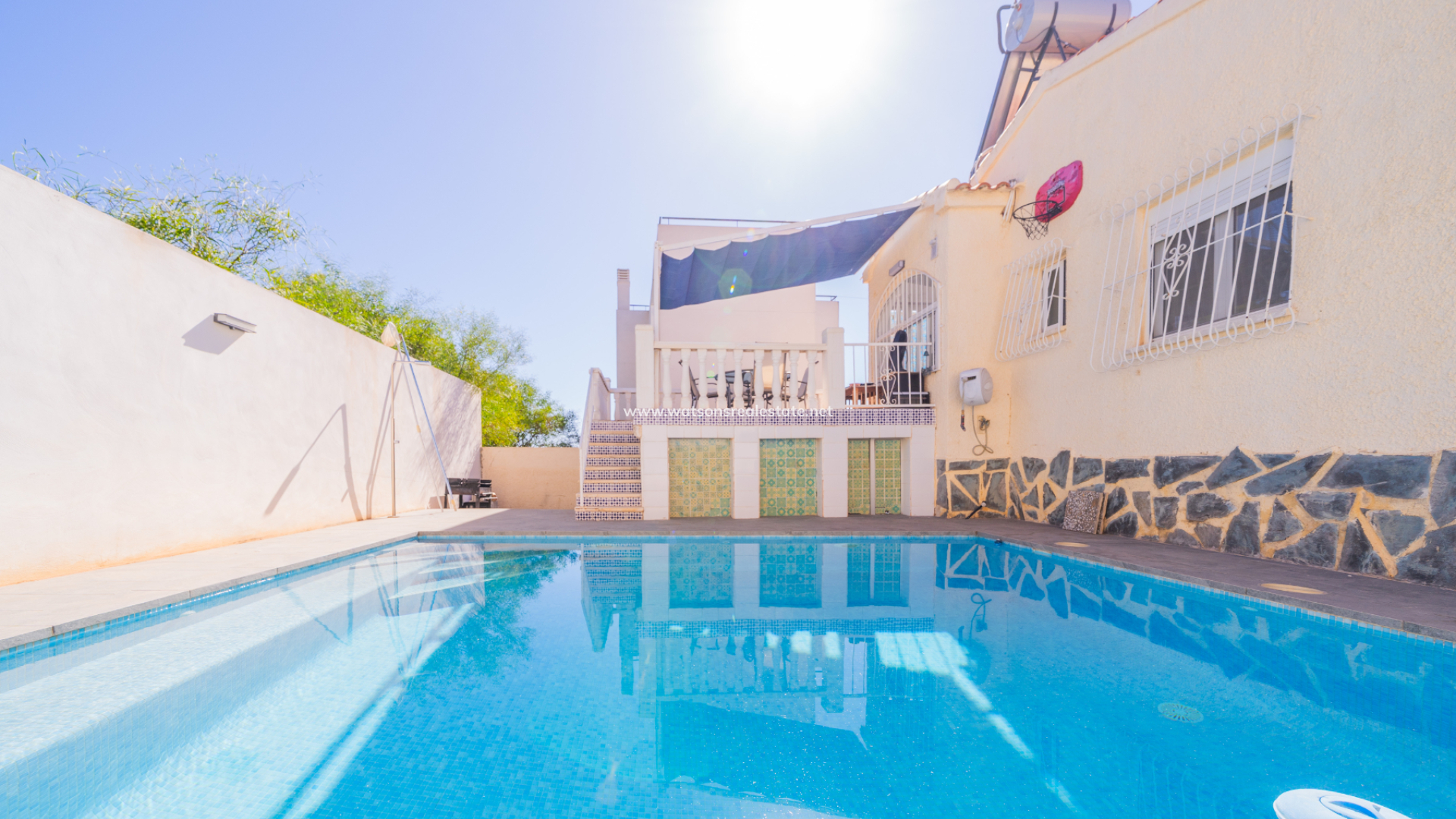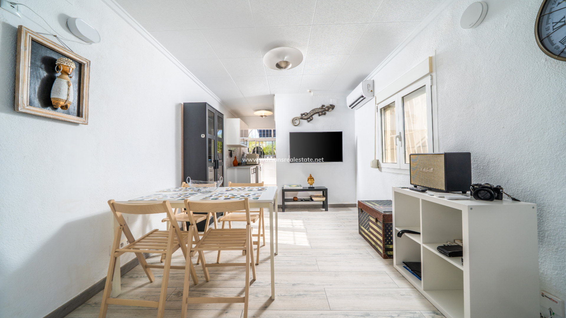 Viva de forma sostenible con estilo en esta villa unifamiliar reformada, situada en una tranquila calle sin salida en la popular urbanización La Marina, San Fulgencio. Esta villa se encuentra a poca distancia a pie de los servicios y del mercado semanal de los jueves, donde se puede disfrutar de productos frescos y delicias locales o sentarse en una de las cafeterías a tomar un refresco y ver pasar la vida. Esta casa, un modelo Rosa ampliado, ha sido meticulosamente actualizada y cuenta con 2 dormitorios y 1 baño.