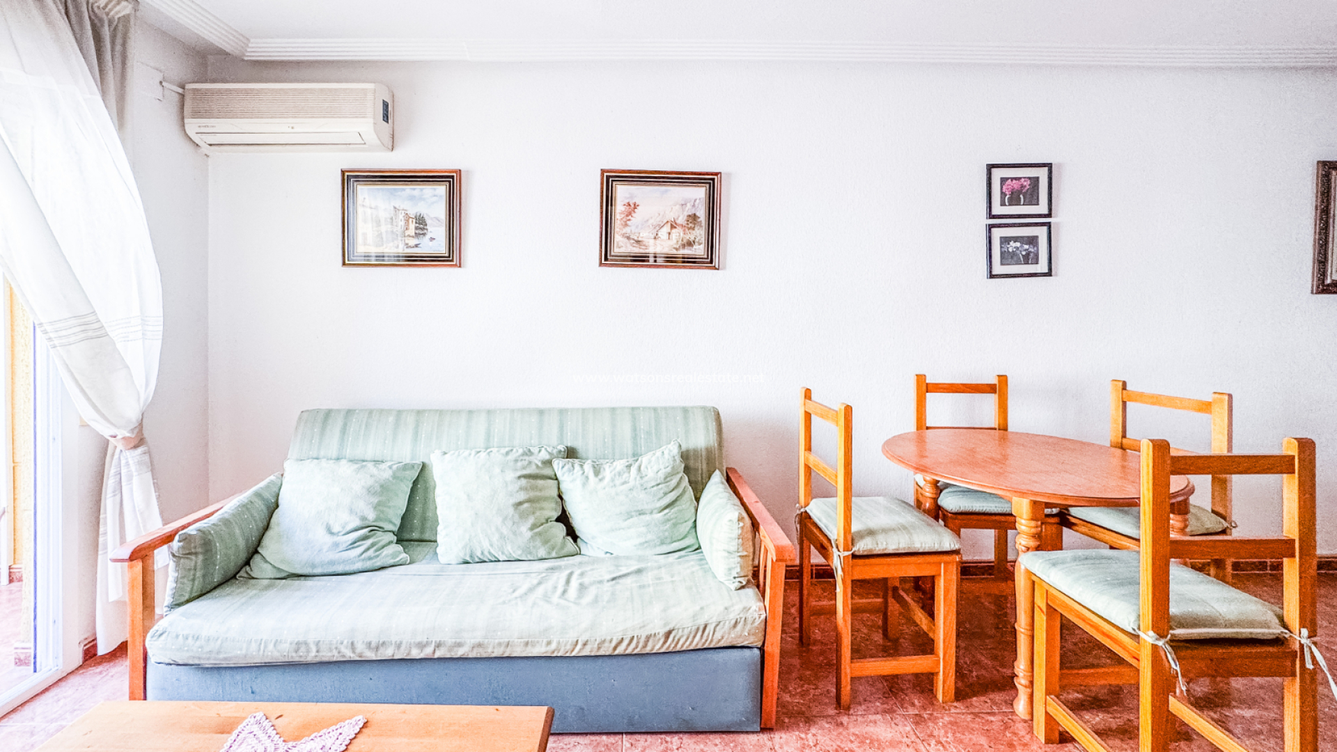 La vivienda cuenta con dos dormitorios —uno doble con armario empotrado y uno con dos camas individuales— y un baño bien equipado con bañera, bidé, WC y lavabo. El salón-comedor tiene acceso a un ✅balcón privado, perfecto para disfrutar de la brisa mediterránea. La cocina independiente y totalmente equipada dispone de una puerta trasera que da acceso a un patio, proporcionando espacio adicional y practicidad.