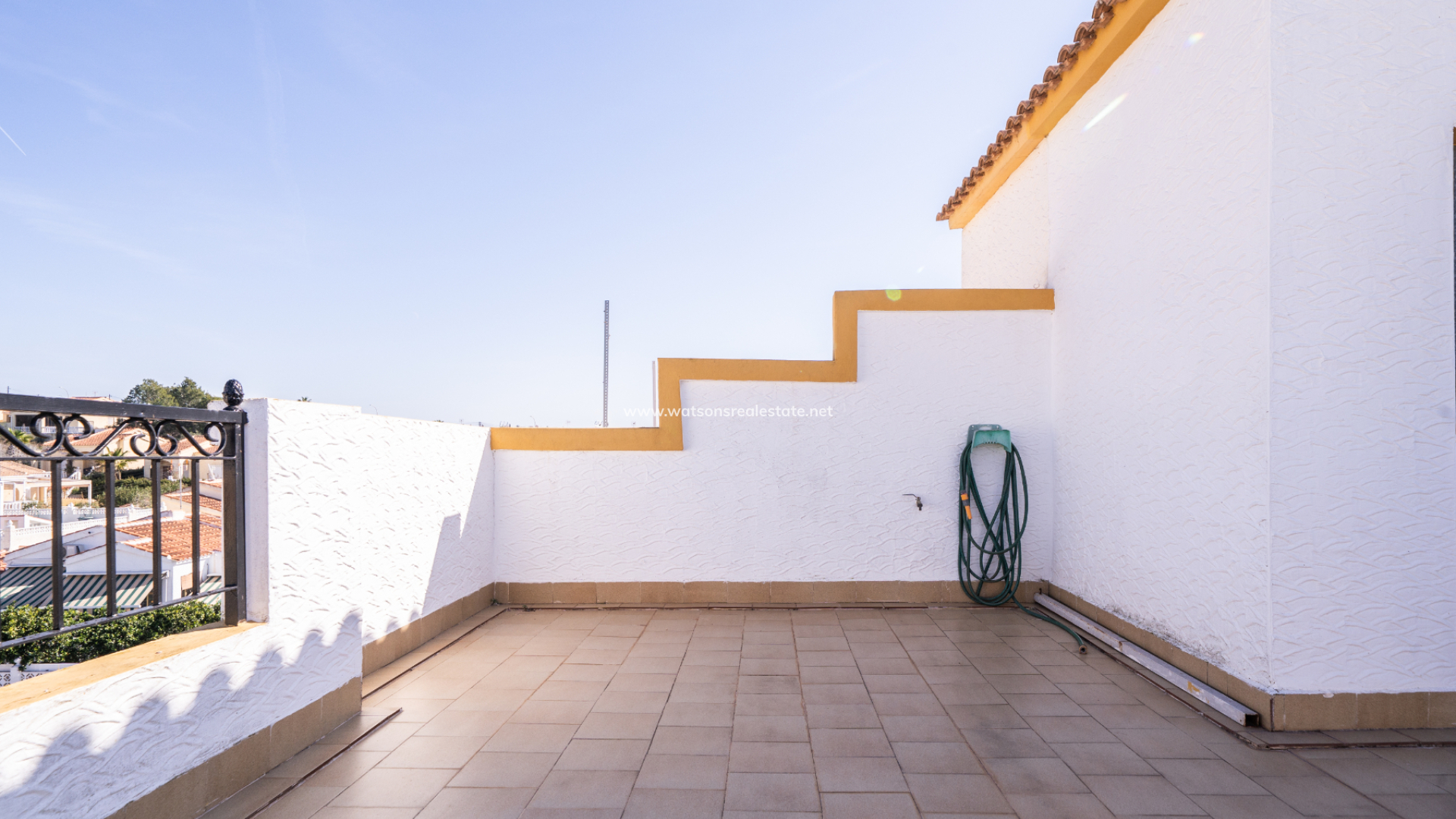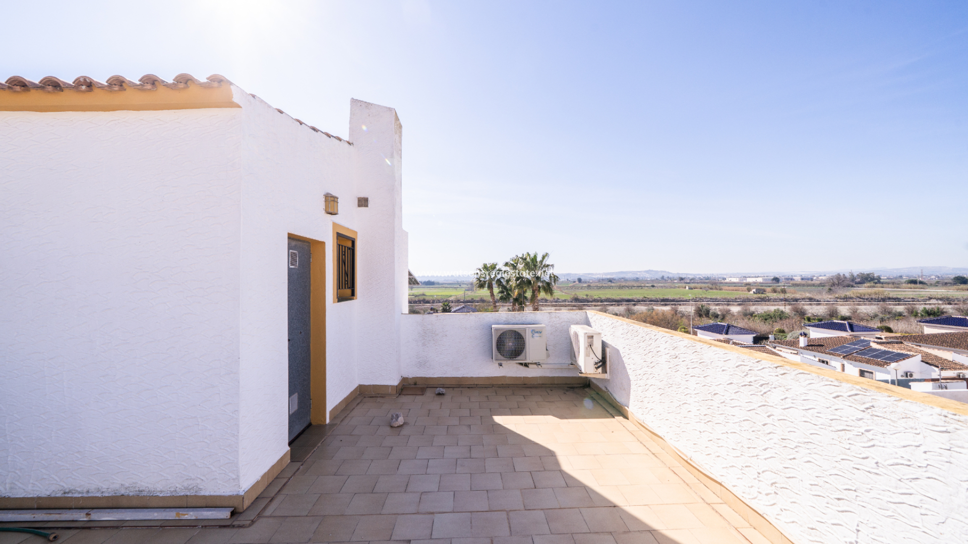 Desde el rellano, se accede a un amplio solárium donde se puede disfrutar de vistas abiertas al campo, proporcionando un excelente espacio exterior adicional para relajarse o tomar el sol.