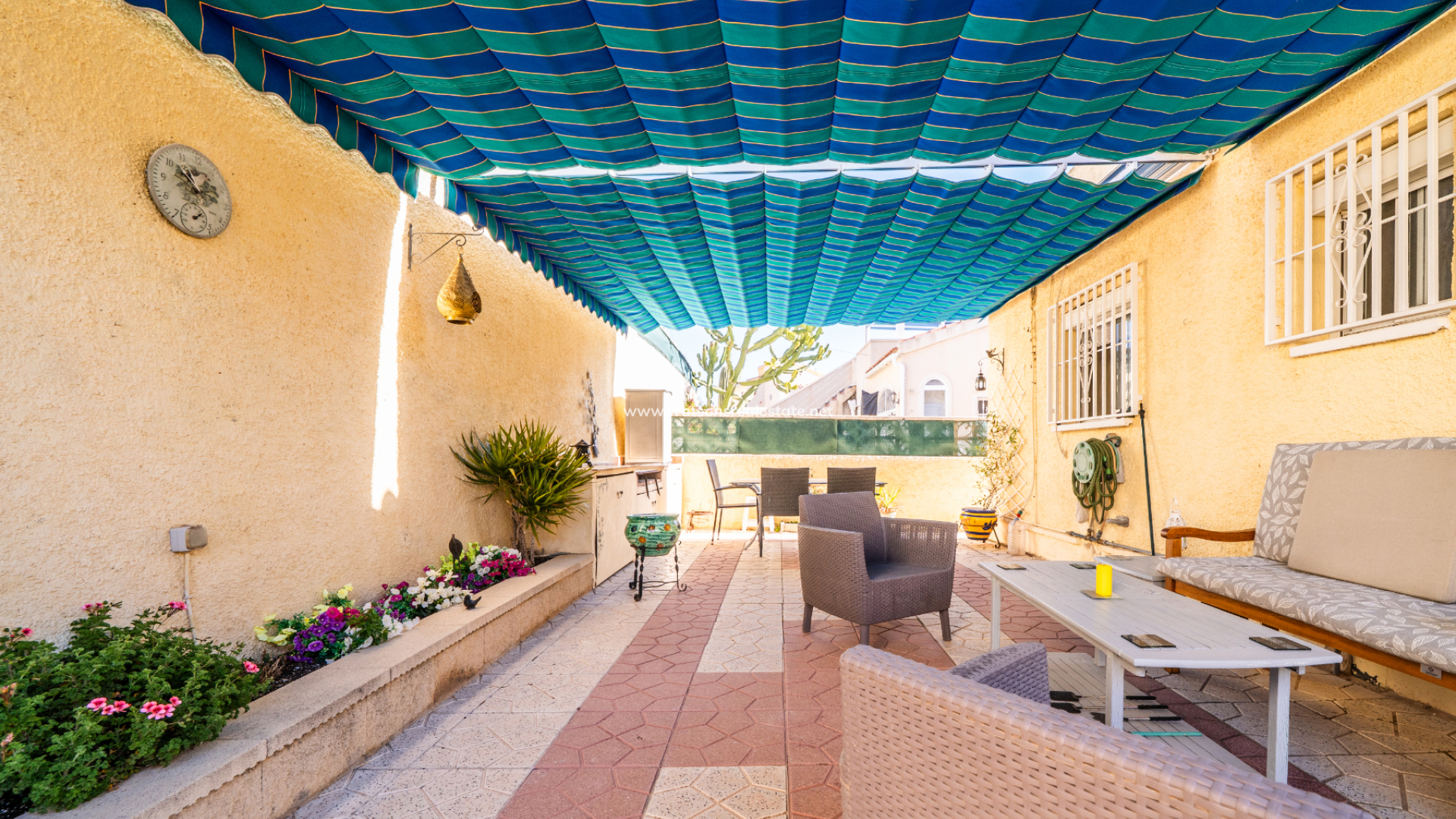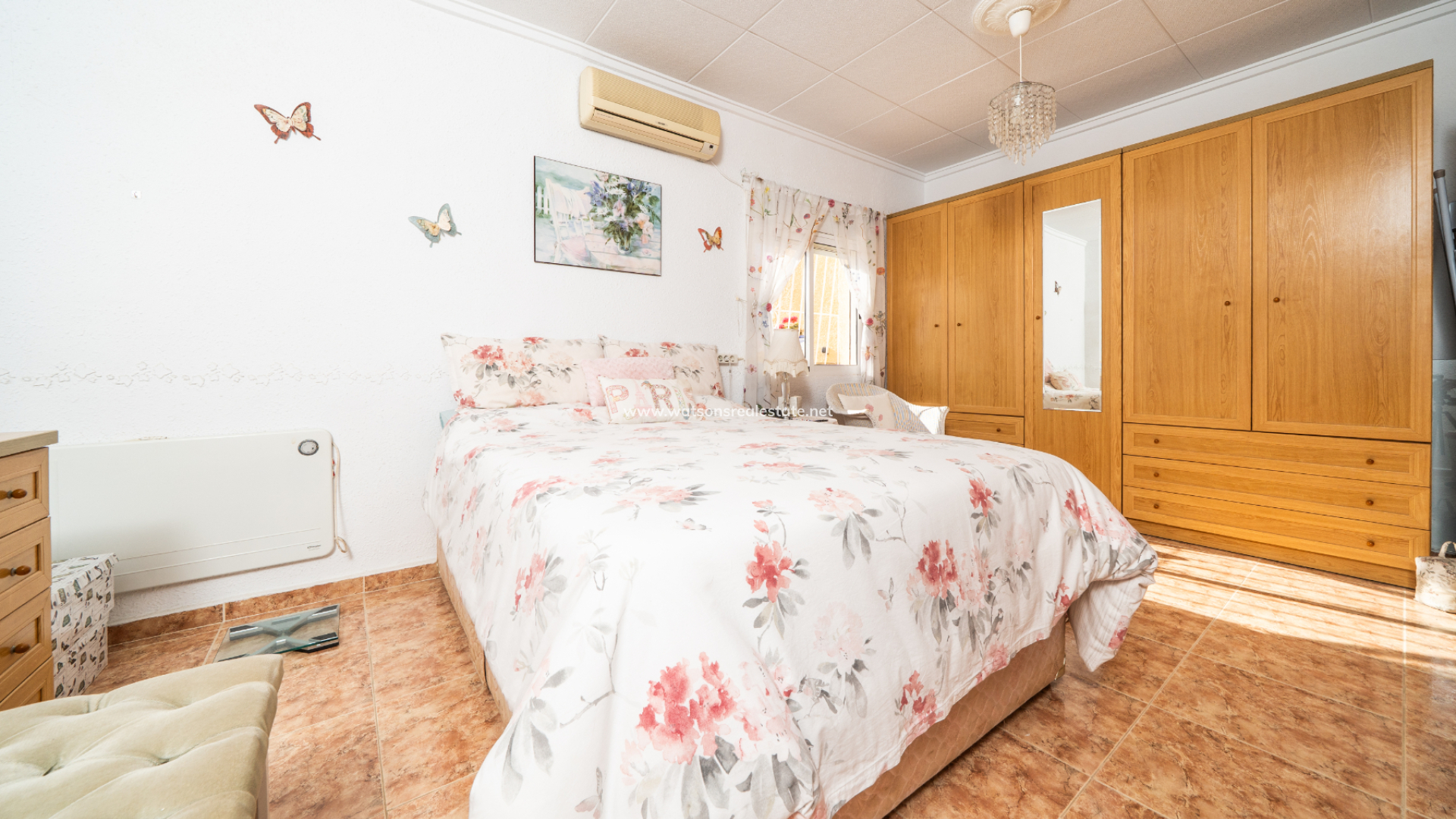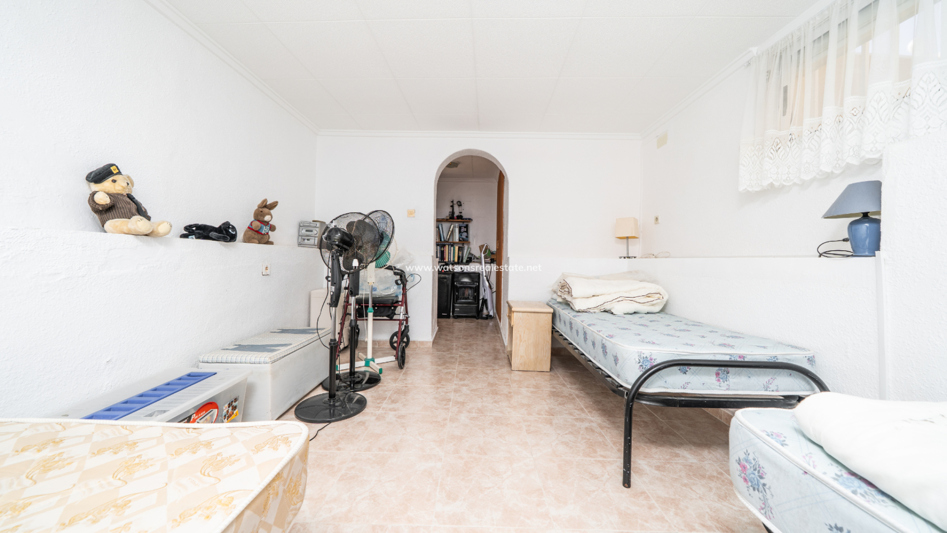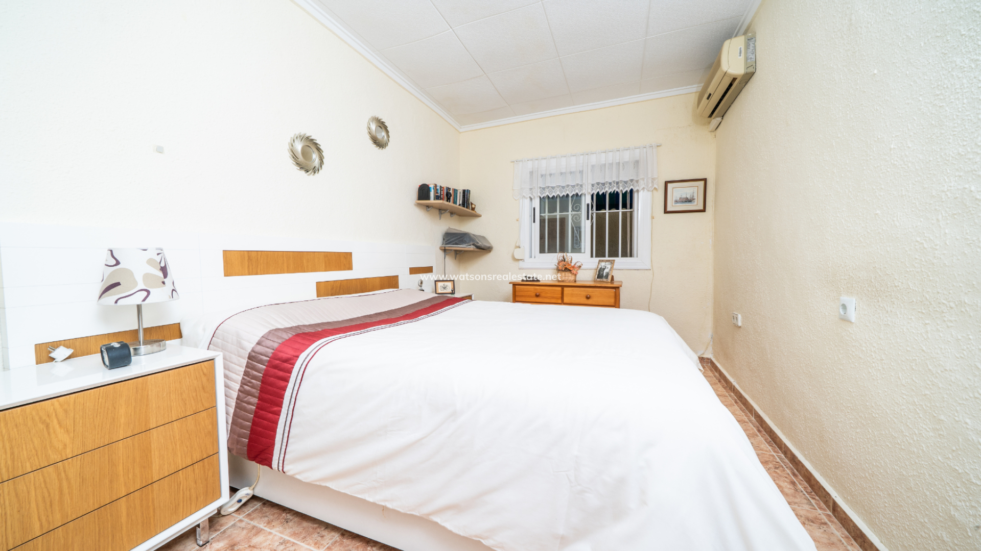 La casa principal cuenta con una gran terraza delantera para tomar el sol con vistas despejadas hacia la vecina ciudad de Guardamar del Segura, creando el lugar perfecto para relajarse o recibir invitados. En el interior, hay un amplio salón con ventilador de techo, que conduce a dos dormitorios bien proporcionados. El dormitorio principal es una habitación muy amplia y luminosa con armarios empotrados y aire acondicionado. El segundo dormitorio es un doble cómodo, también con armarios empotrados y aire acondicionado. El baño principal ha sido actualizado para incluir una gran ducha a ras de suelo, inodoro y mueble de tocador.