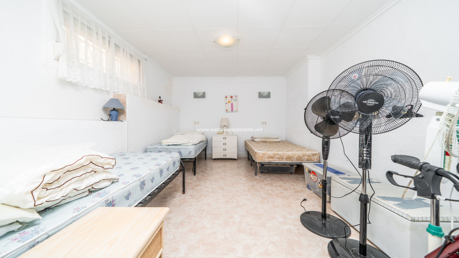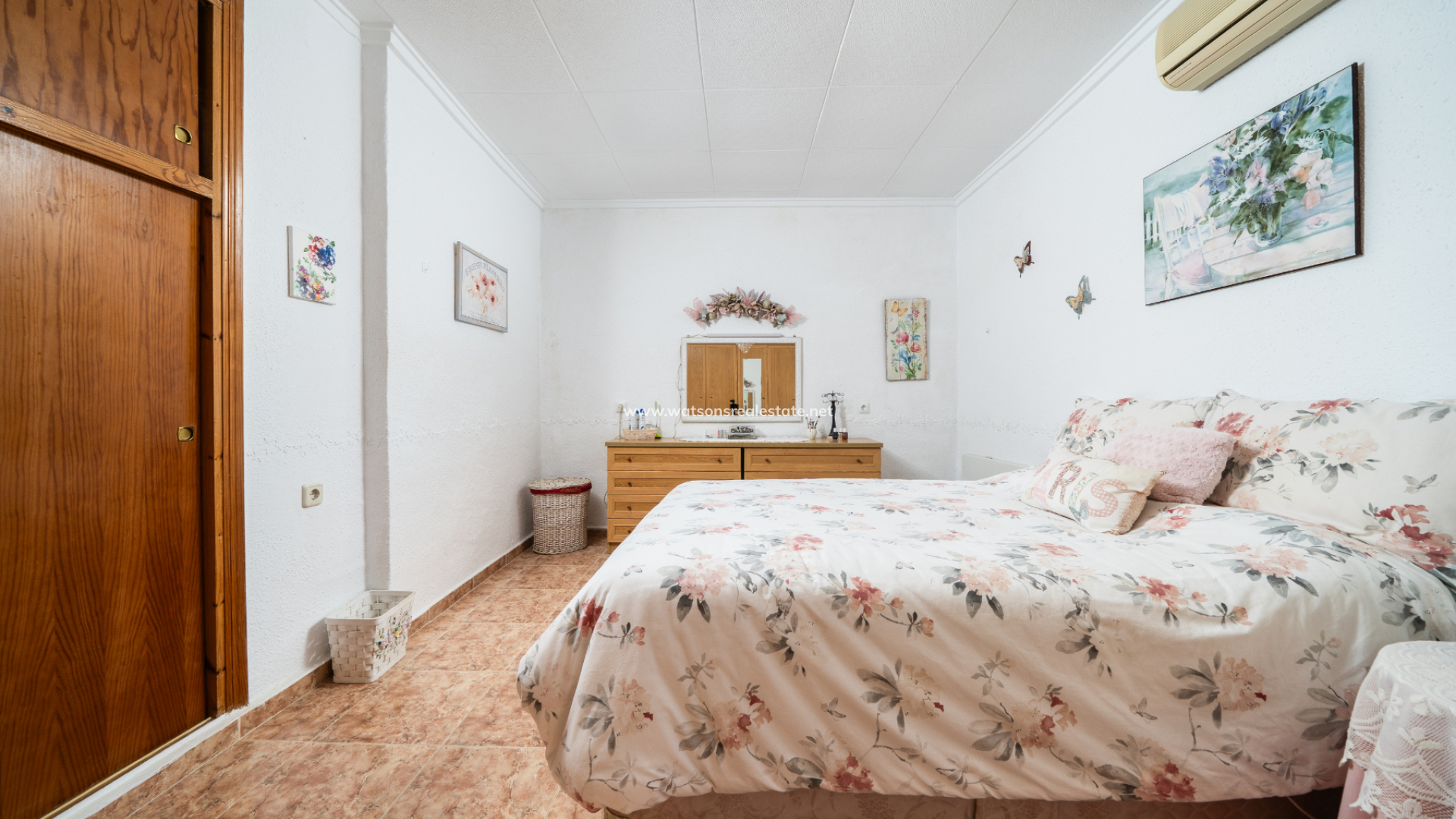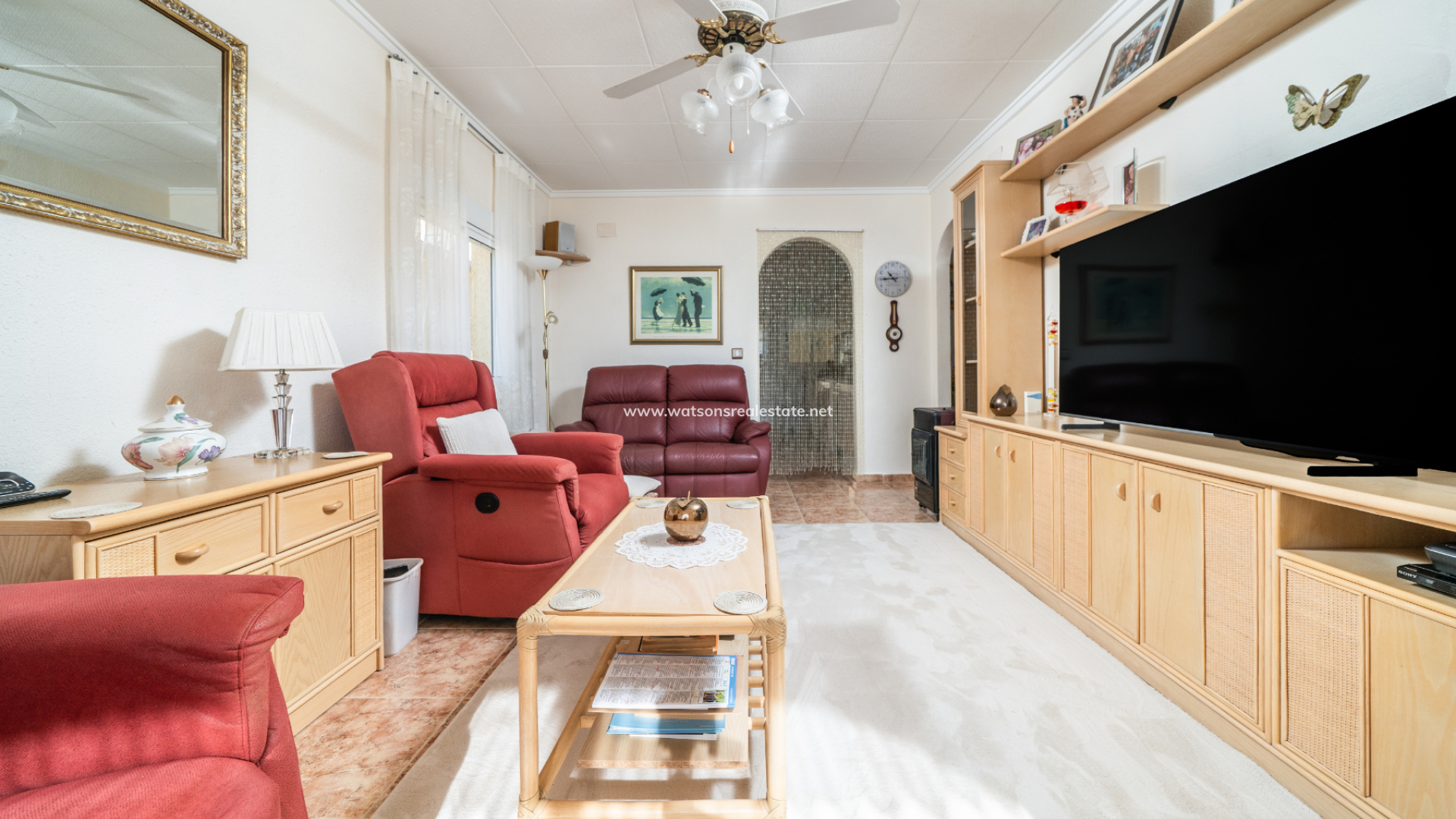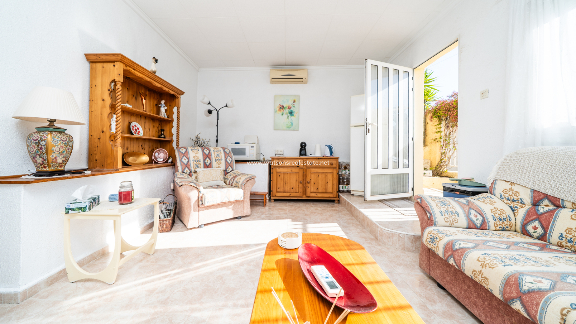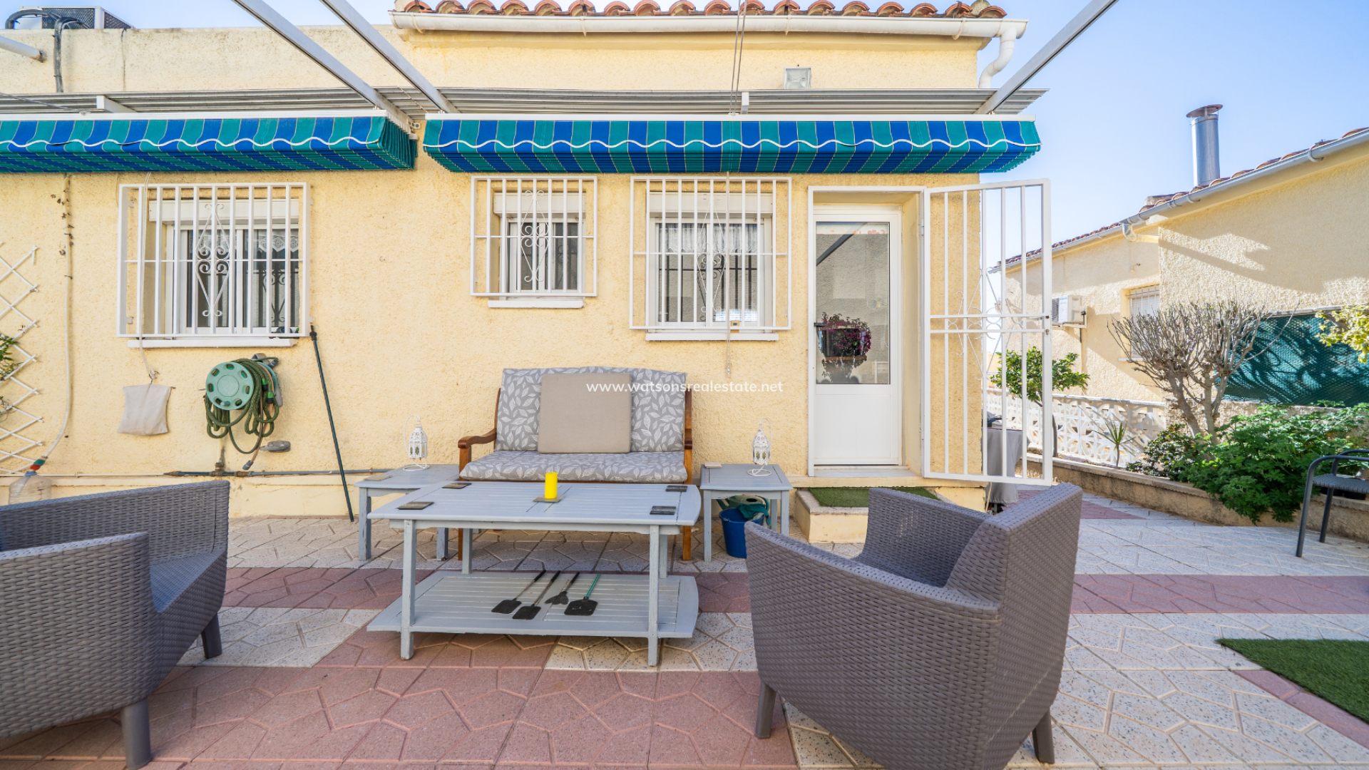 La casa principal cuenta con una gran terraza delantera para tomar el sol con vistas despejadas hacia la vecina ciudad de Guardamar del Segura, creando el lugar perfecto para relajarse o recibir invitados. En el interior, hay un amplio salón con ventilador de techo, que conduce a dos dormitorios bien proporcionados. El dormitorio principal es una habitación muy amplia y luminosa con armarios empotrados y aire acondicionado. El segundo dormitorio es un doble cómodo, también con armarios empotrados y aire acondicionado. El baño principal ha sido actualizado para incluir una gran ducha a ras de suelo, inodoro y mueble de tocador.