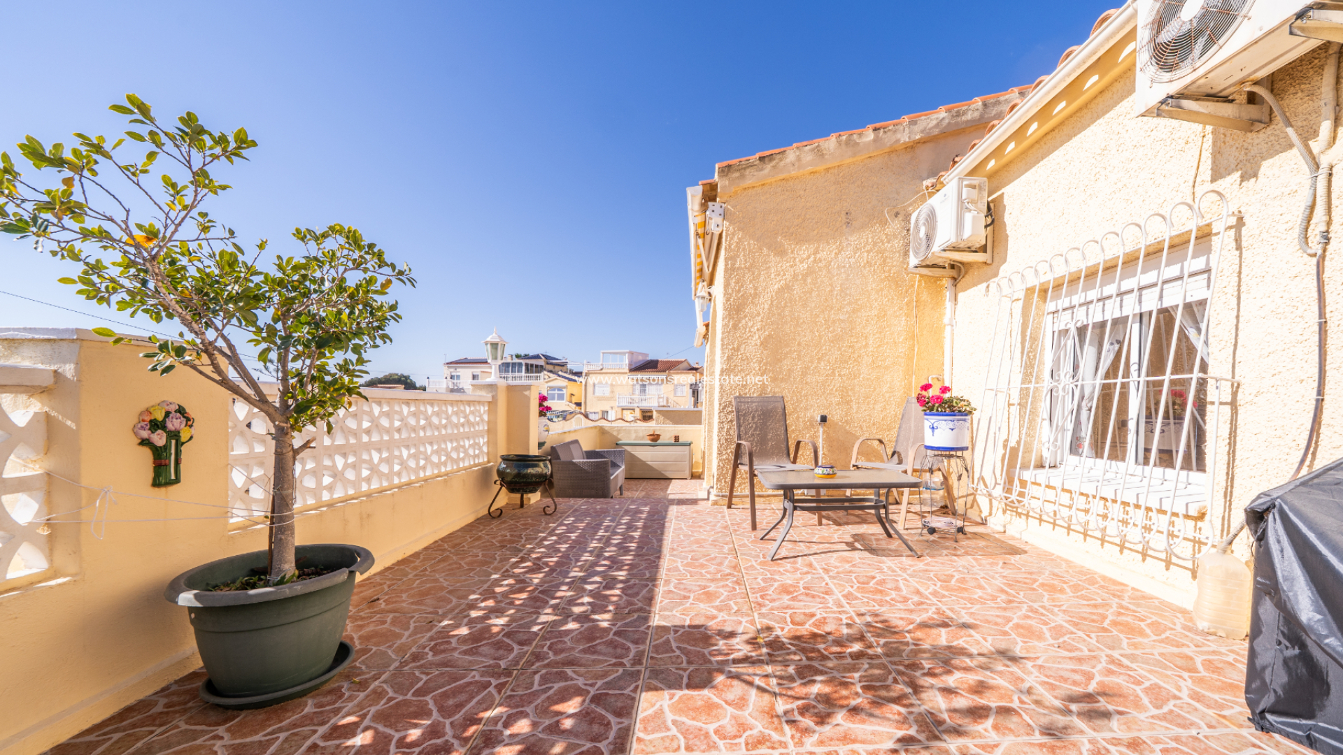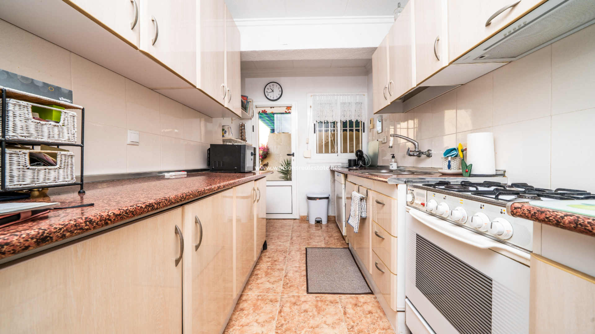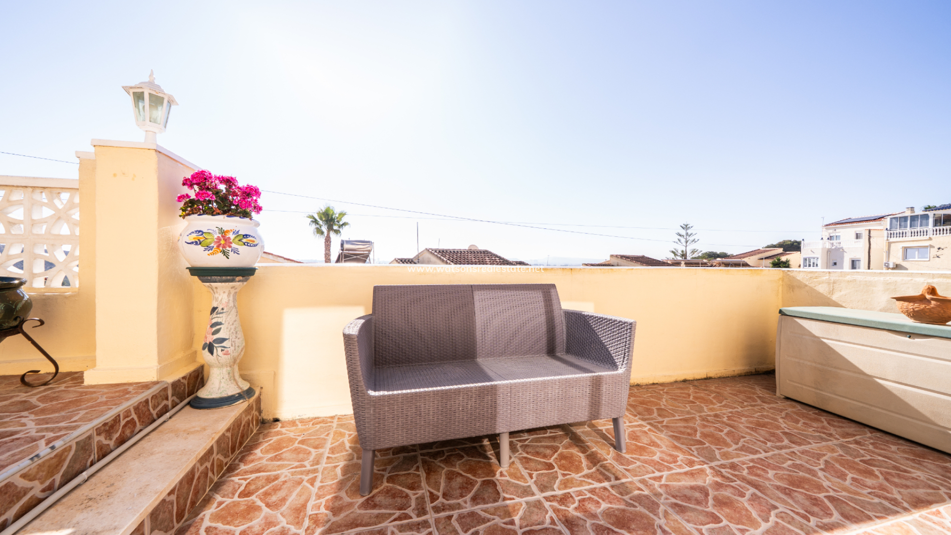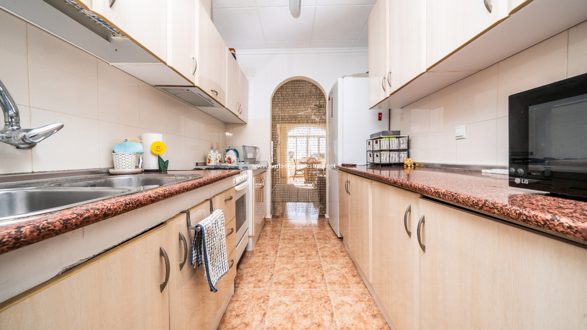 La casa principal cuenta con una gran terraza delantera para tomar el sol con vistas despejadas hacia la vecina ciudad de Guardamar del Segura, creando el lugar perfecto para relajarse o recibir invitados. En el interior, hay un amplio salón con ventilador de techo, que conduce a dos dormitorios bien proporcionados. El dormitorio principal es una habitación muy amplia y luminosa con armarios empotrados y aire acondicionado. El segundo dormitorio es un doble cómodo, también con armarios empotrados y aire acondicionado. El baño principal ha sido actualizado para incluir una gran ducha a ras de suelo, inodoro y mueble de tocador.