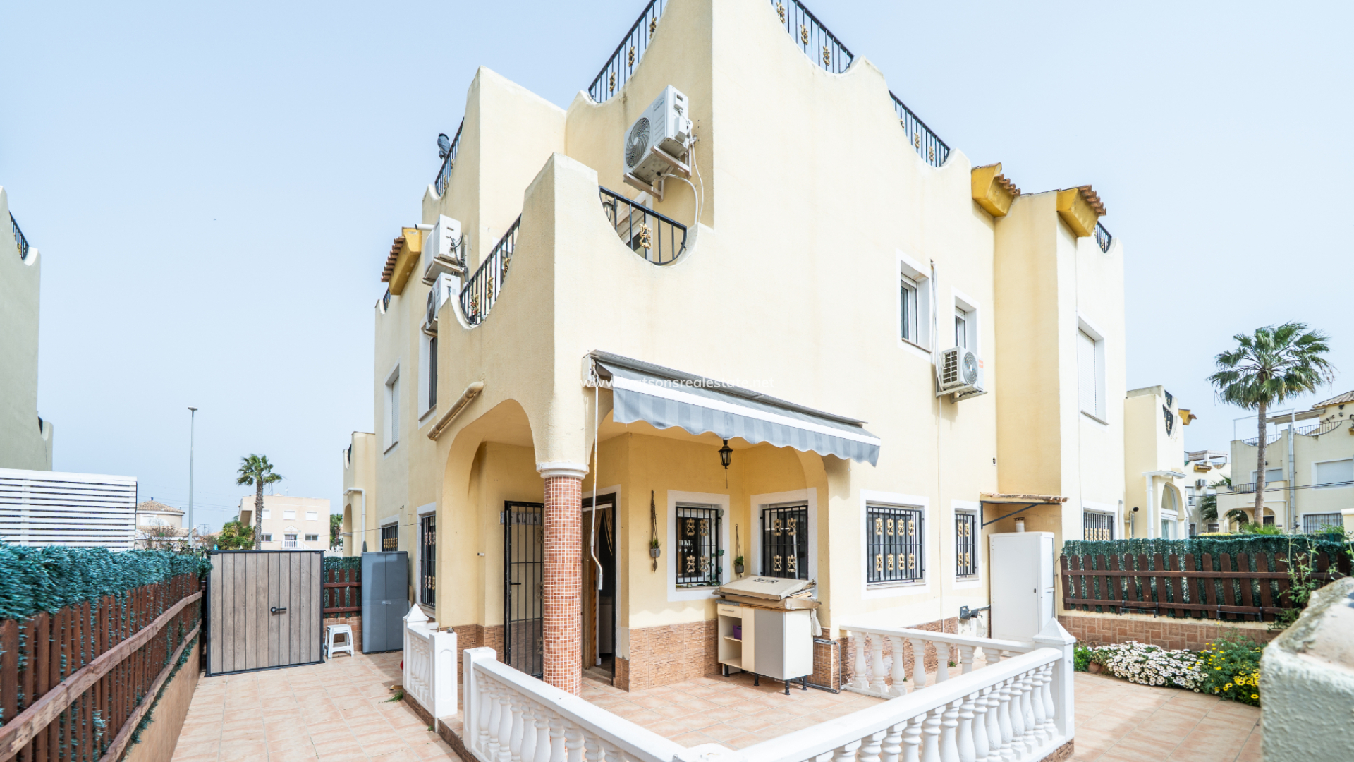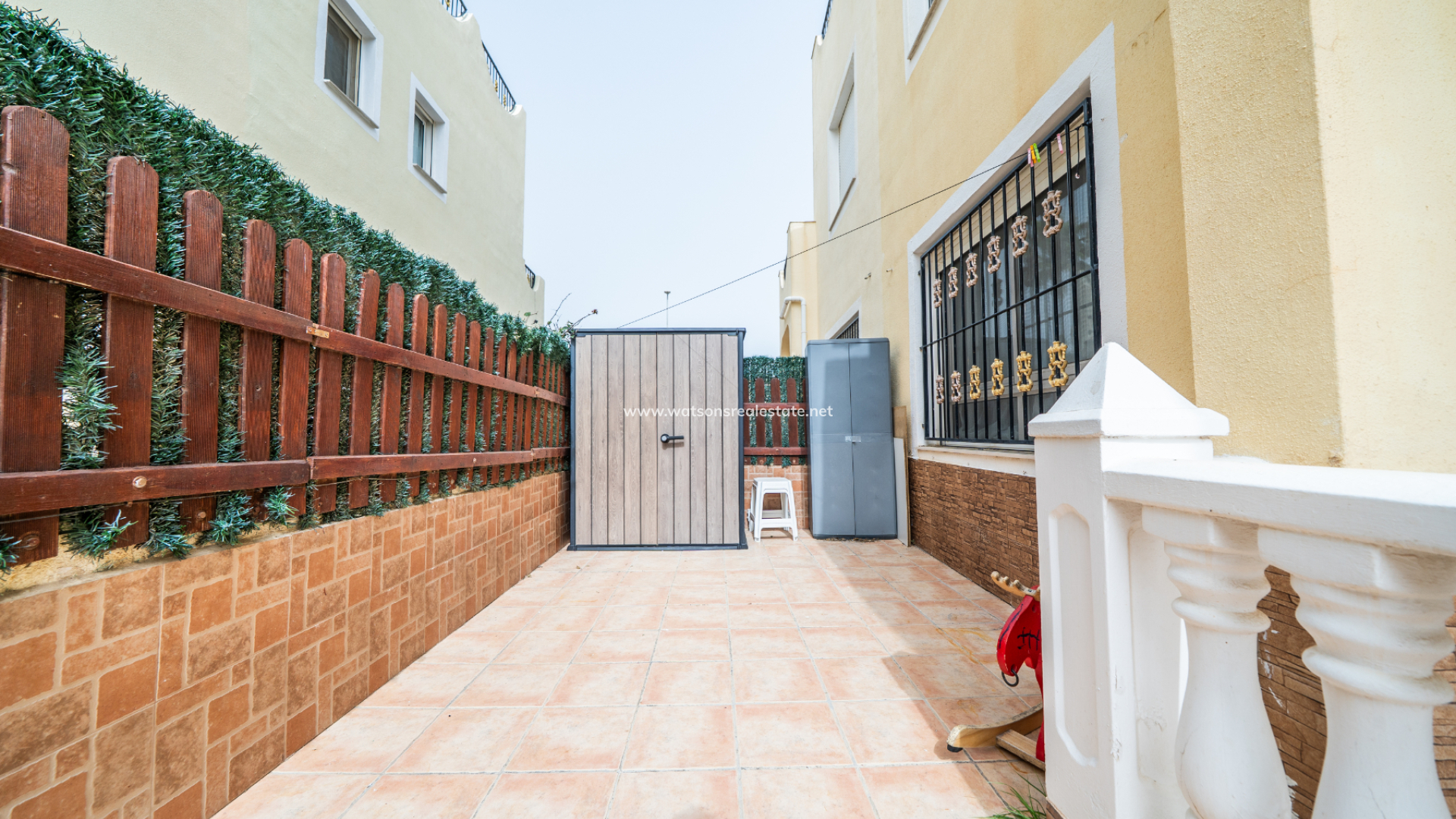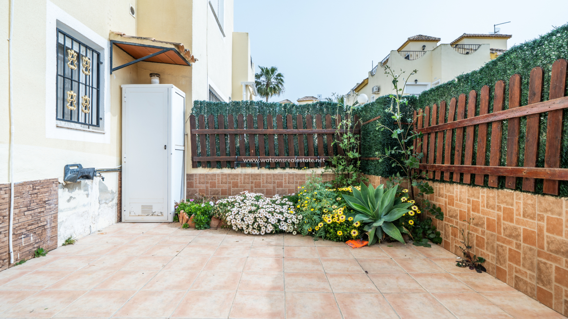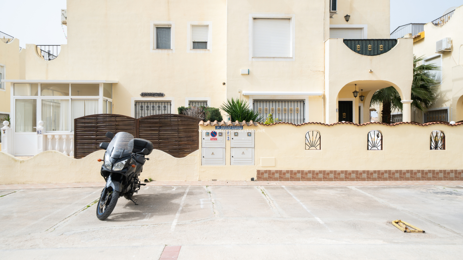 La propiedad dispone de ➡️ una plaza de aparcamiento asignada situada justo fuera de la comunidad. El jardín, totalmente pavimentado, facilita el mantenimiento y ofrece una vista atractiva, una zona de porche cubierto y toldos para crear sombra adicional y confort durante todo el año.