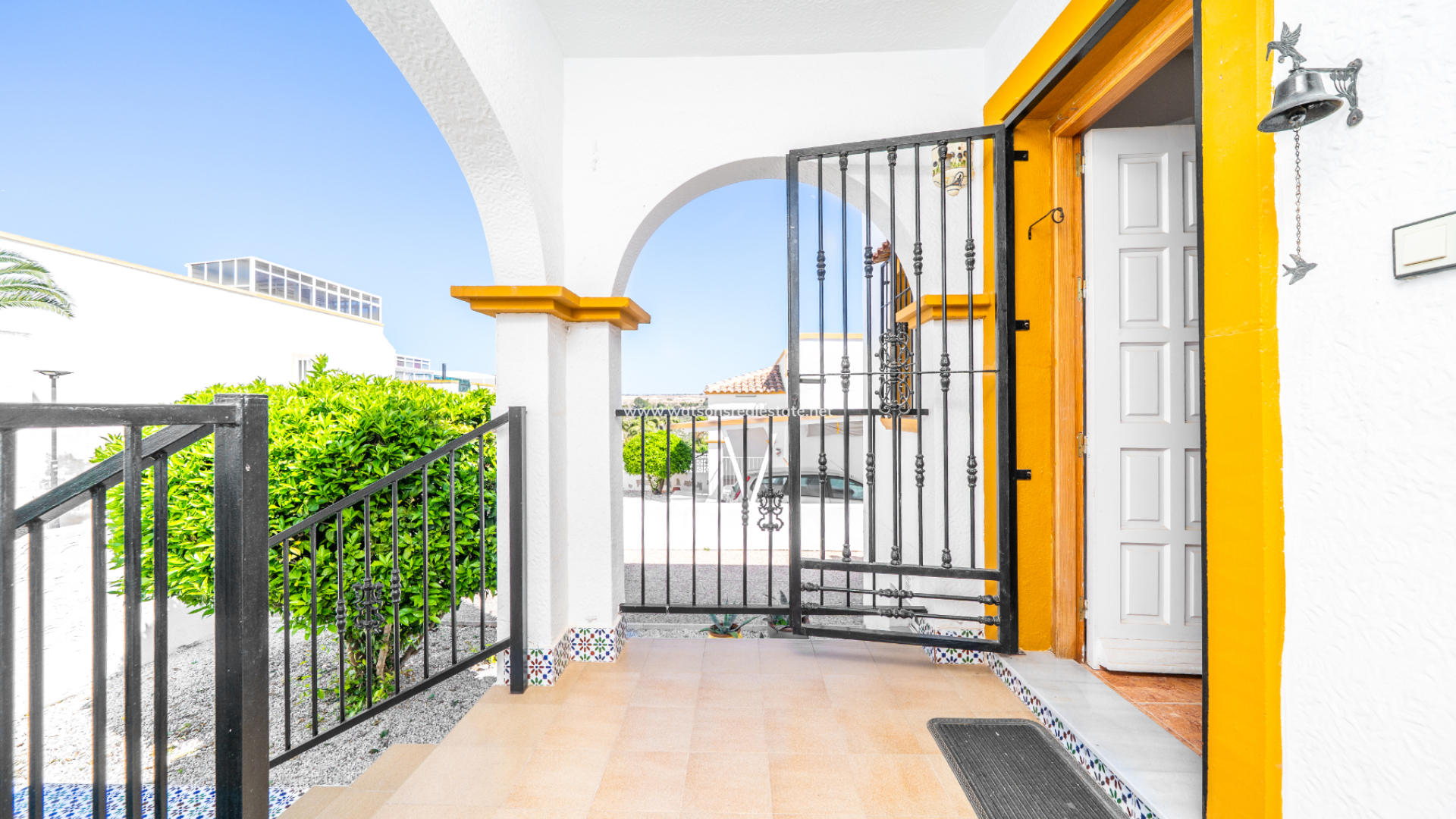 El interior ofrece ✅aproximadamente 70 m² de espacio habitable en una sola planta. En la parte delantera, hay una terraza elevada, perfecta para cenar al aire libre. Al entrar, encontrará un salón luminoso y espacioso con comedor independiente, una cocina independiente totalmente equipada, dos dormitorios (el dormitorio principal cuenta con su propio baño en-suite) y un baño familiar totalmente alicatado.