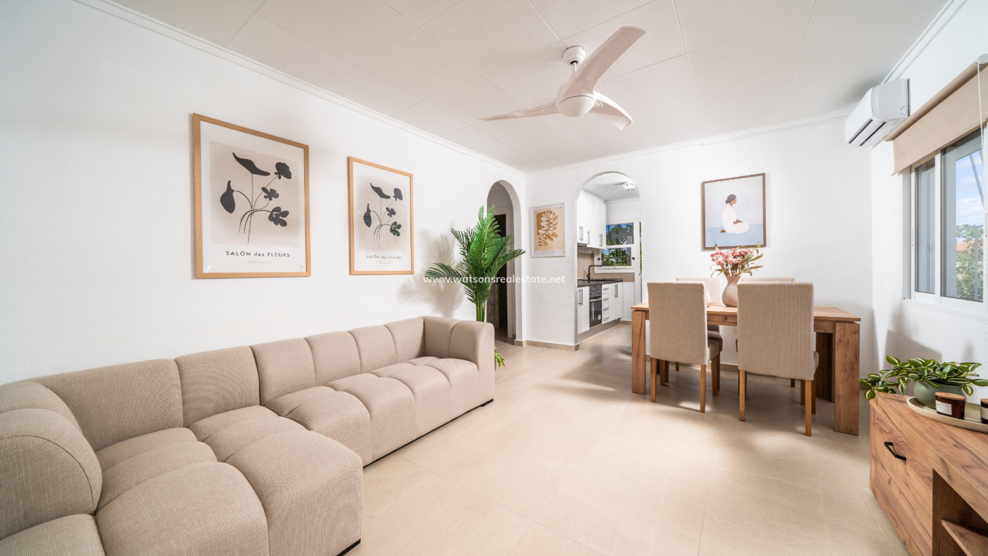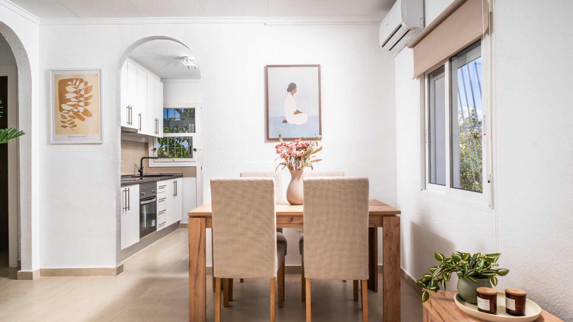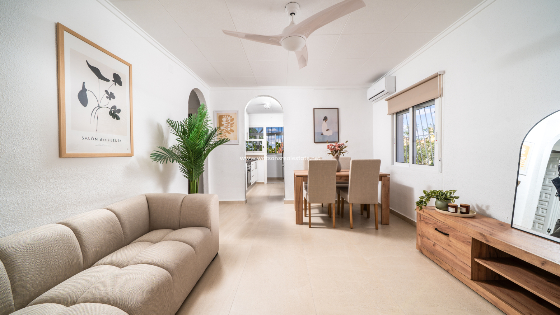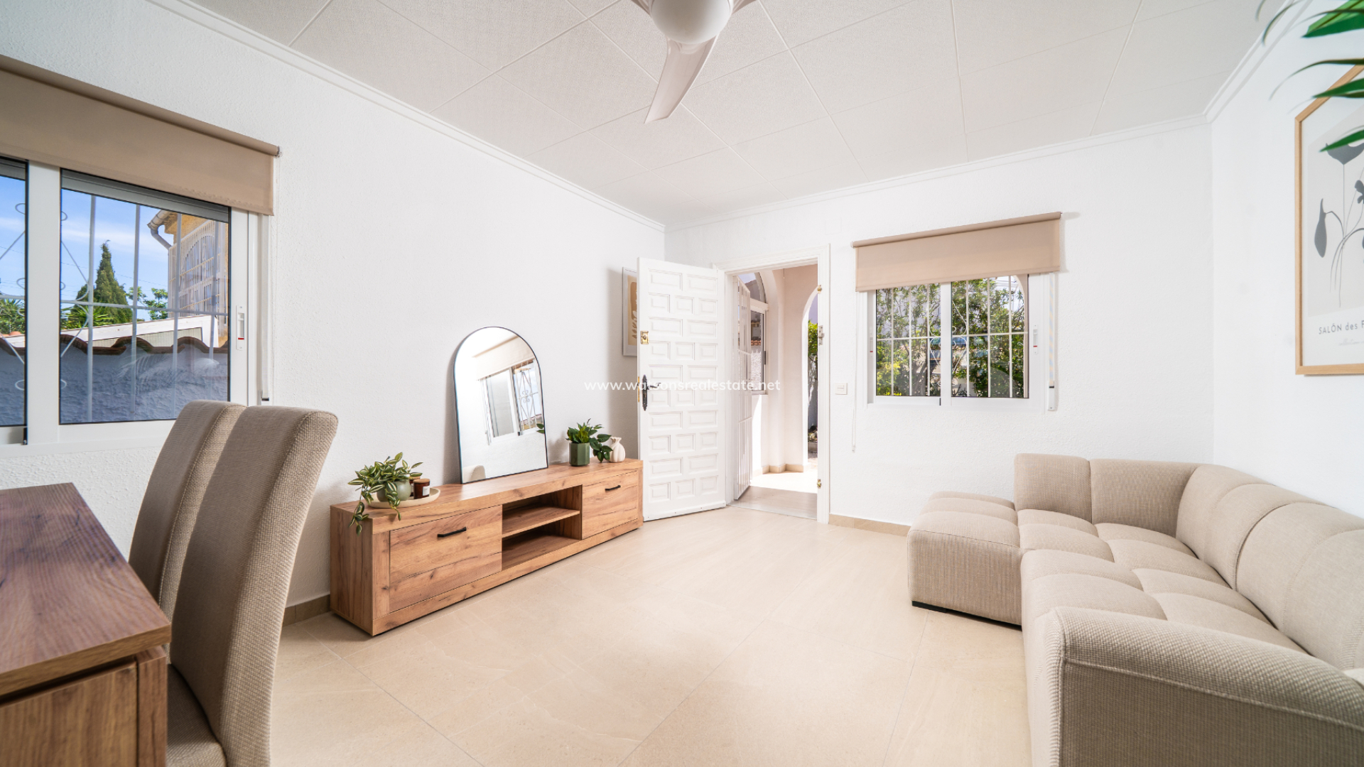La maison a été entièrement remise à neuf, avec des fenêtres et des volets neufs, de nouveaux revêtements de sol, des salles de bain fraîchement installées, une peinture neuve et une nouvelle climatisation, créant ainsi un espace lumineux et prêt à habiter.