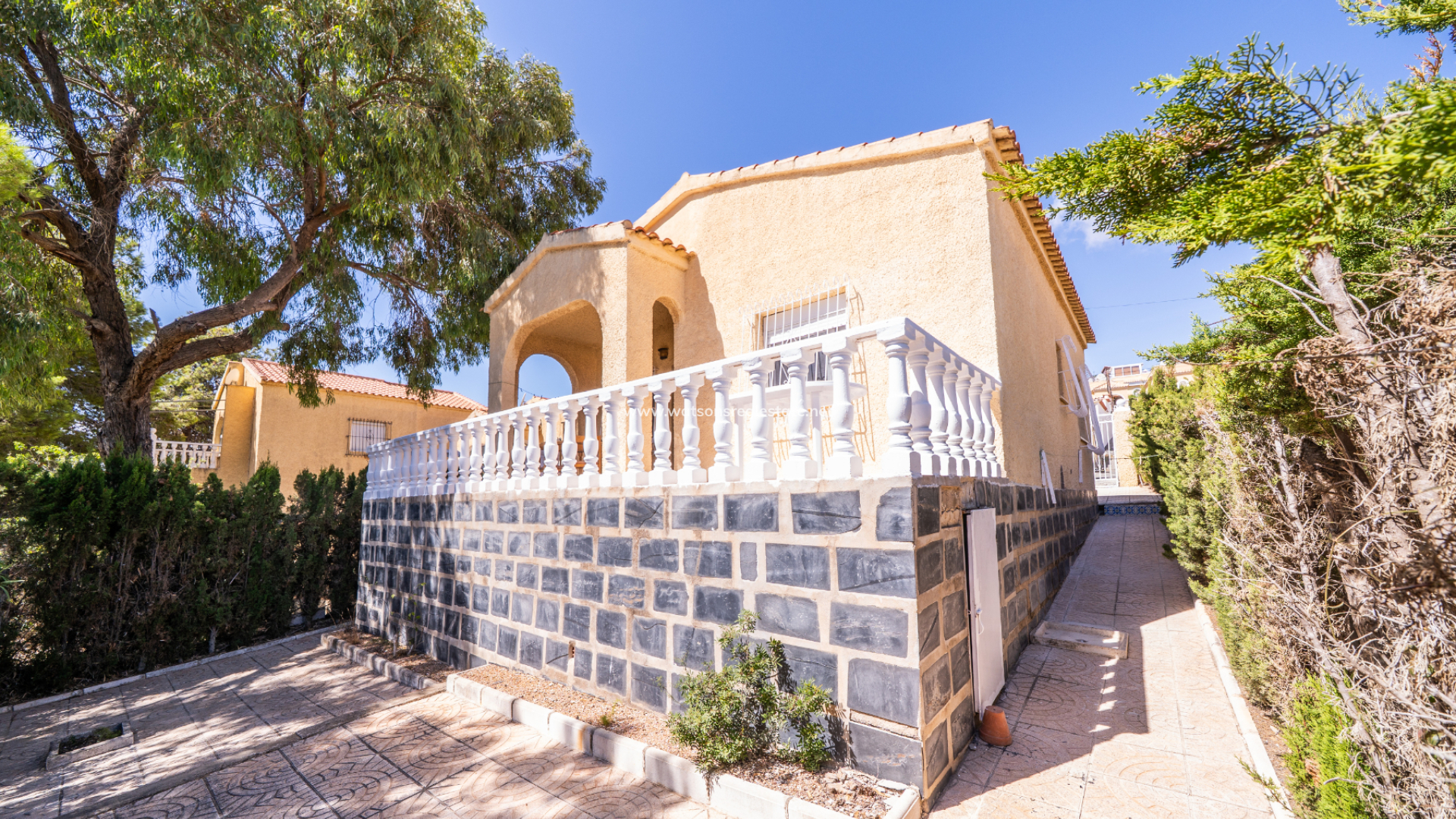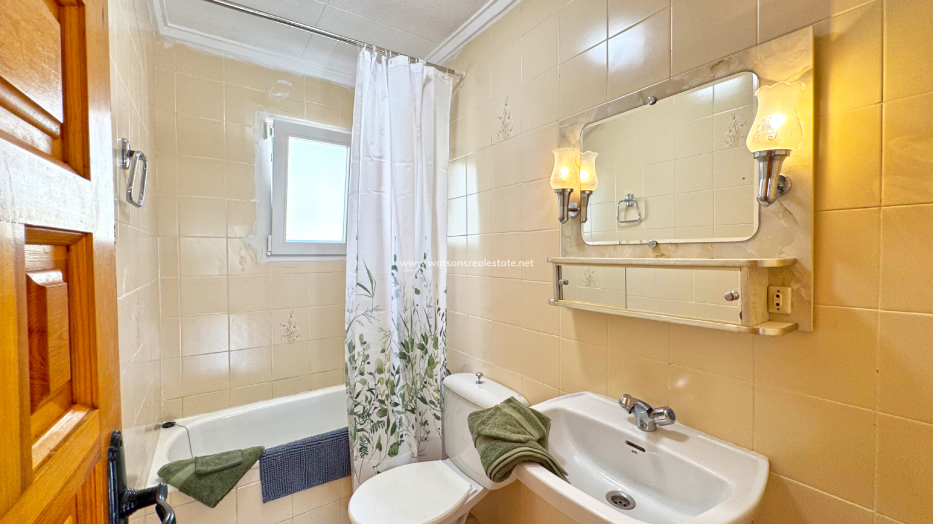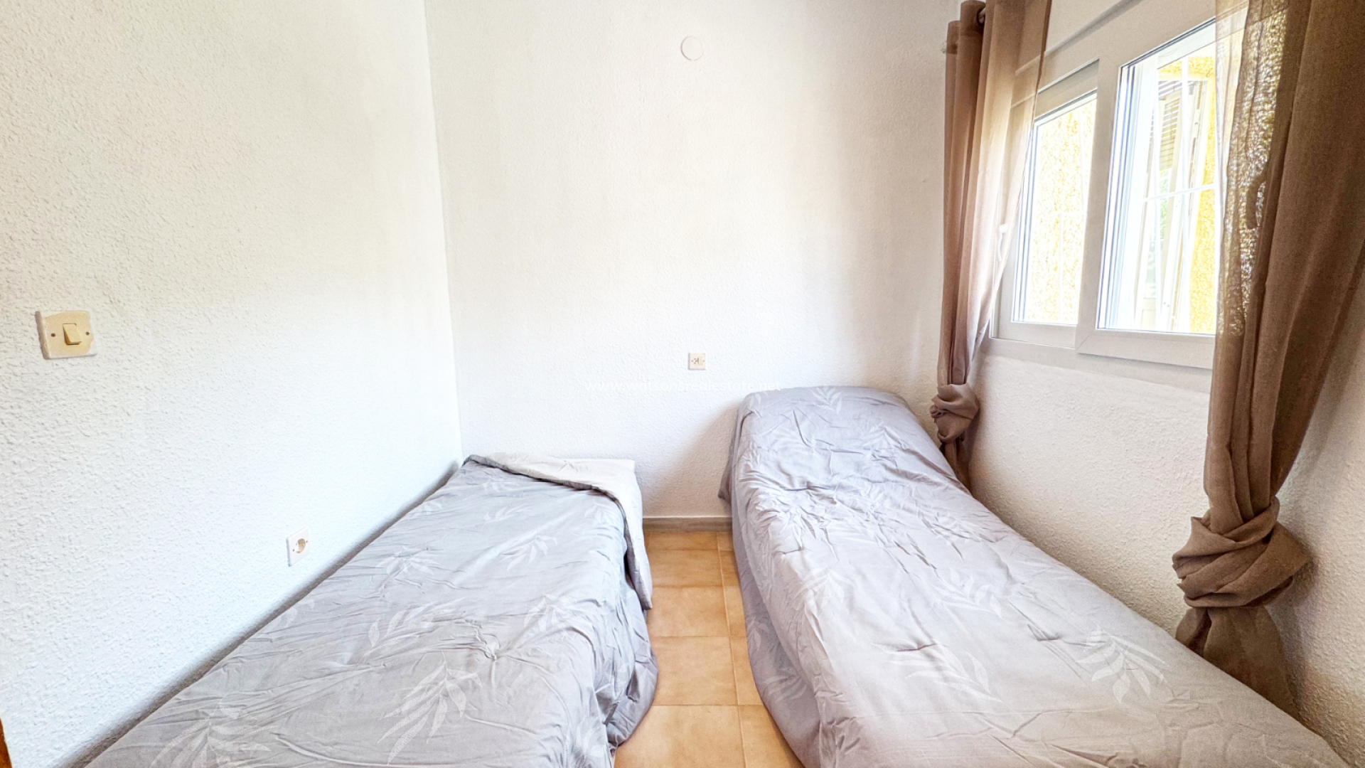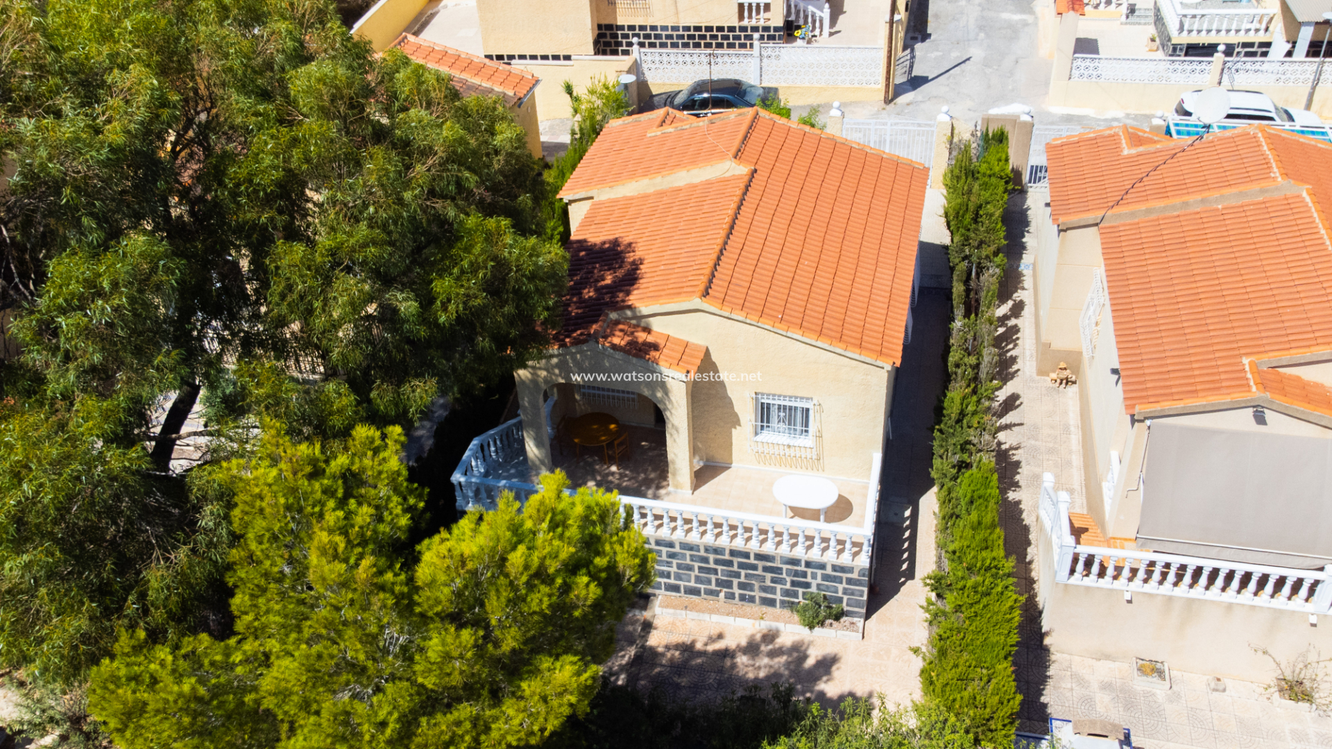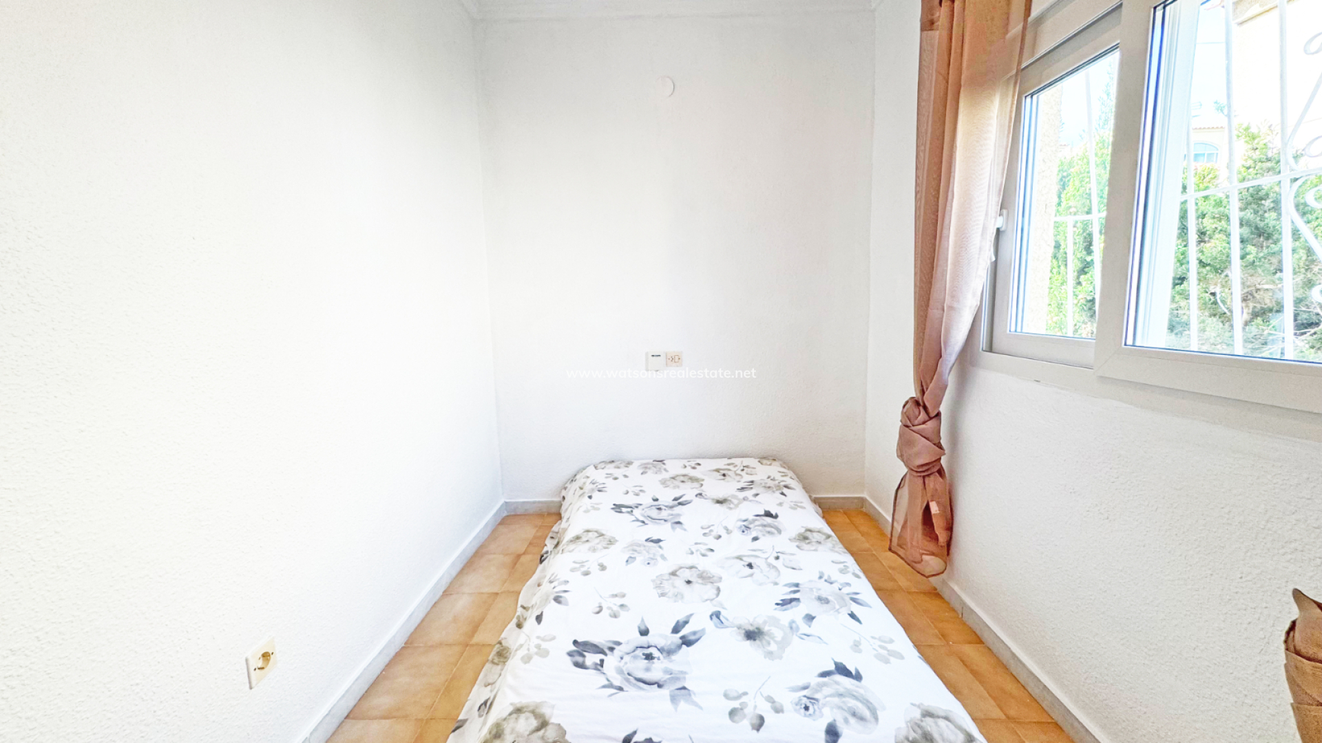 De woning profiteert van een verhoogd achterterras en een overdekte veranda met balustrades. Dit gedeelte biedt niet alleen een heerlijke plek om te zitten en te ontspannen, maar ook praktische bergruimte eronder. Vanaf het terras geniet u van uitzicht richting Guardamar del Segura.