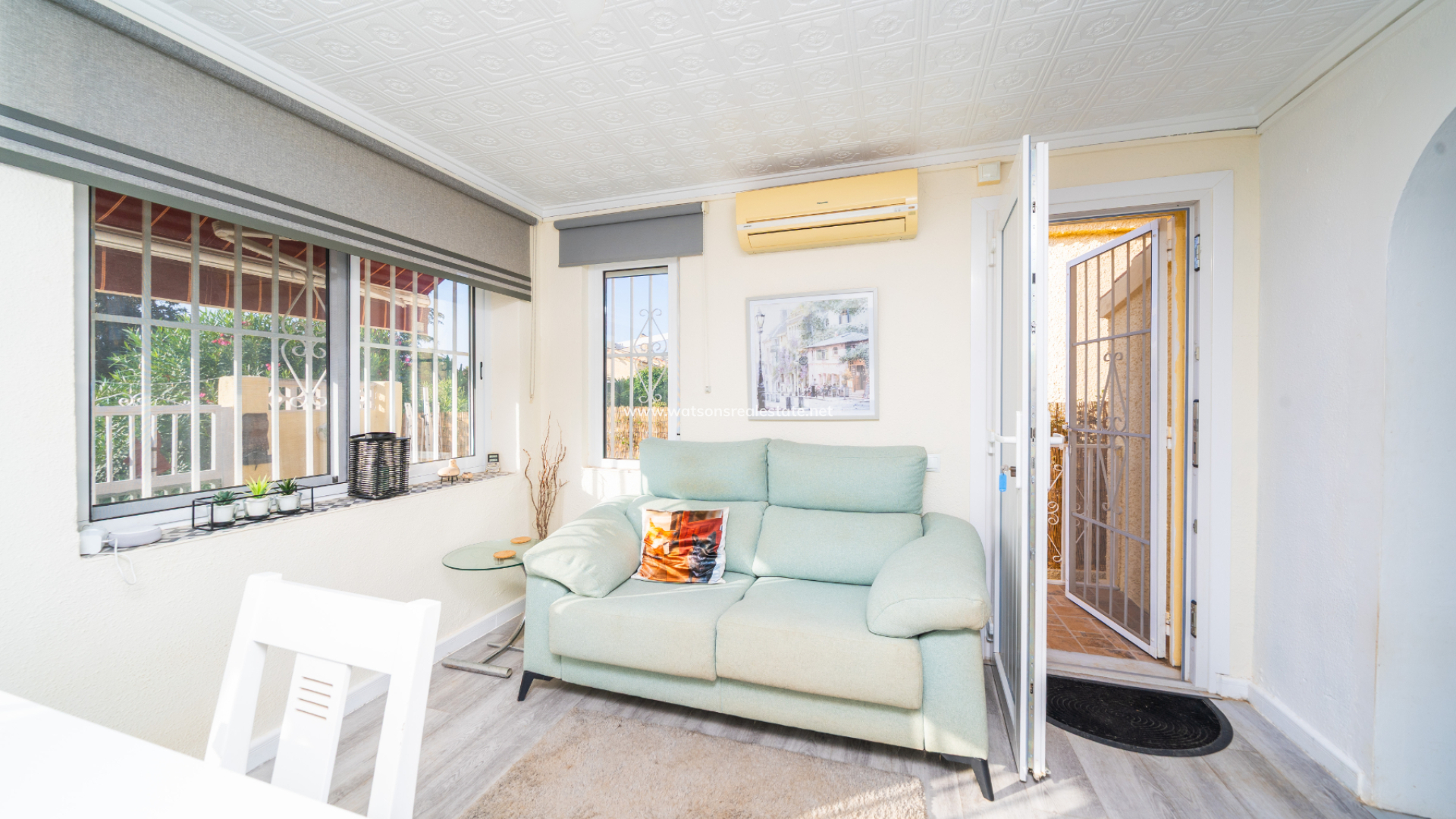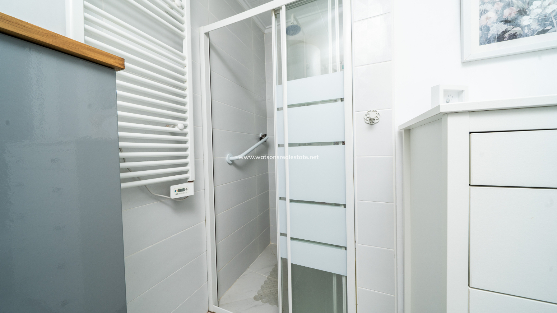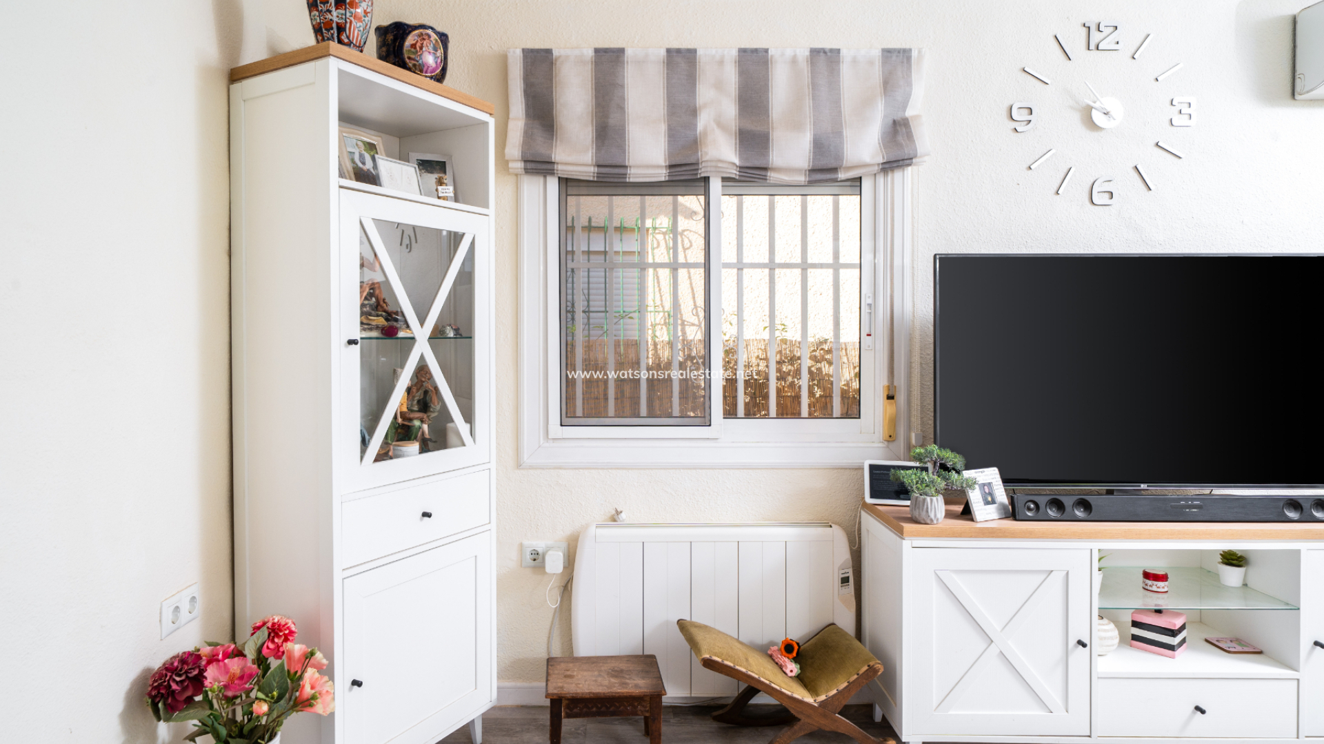 Binnen komt de woning uit op een glazen entreeportiek die leidt naar een lichte, comfortabele woonkamer. De nieuw geplaatste moderne keuken is zowel stijlvol als functioneel, aangevuld met een extra woon-/eetkamer. De ruime hoofdslaapkamer met airconditioning en plafondventilator beschikt ook over spiegelde inbouwkasten, een extra opbergkast / kledingkast en een grote en-suite badkamer met een inloopdouche. De tweede slaapkamer heeft toegang tot een veelzijdige kamer die gemakkelijk kan worden gebruikt als kleedkamer, hobbyruimte of opslag (deze wordt momenteel gebruikt als gastenverblijf). Het interieur van deze prachtige villa wordt gecompleteerd door een eigentijdse familiebadkamer met een hoek-inloopdouche.