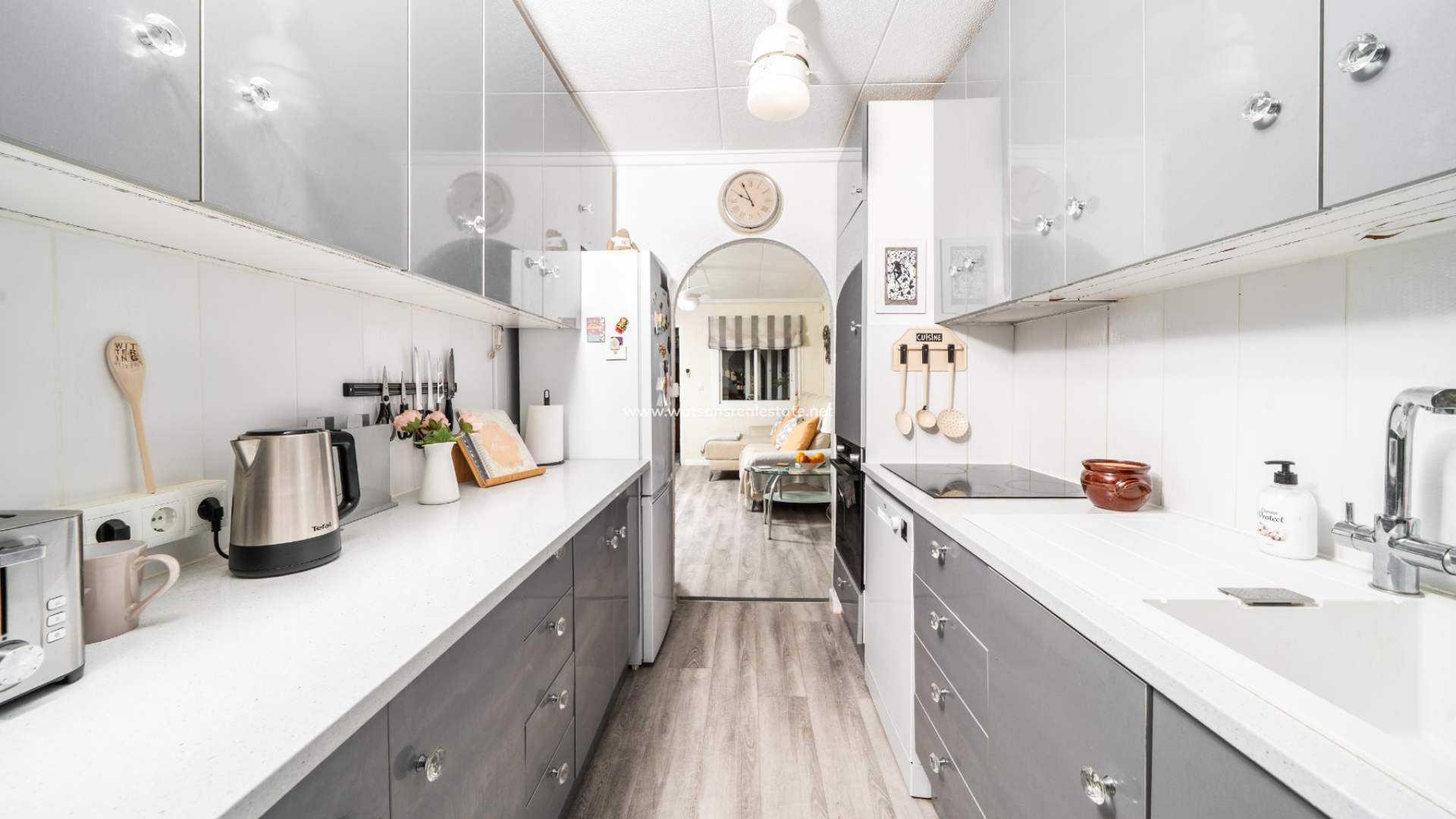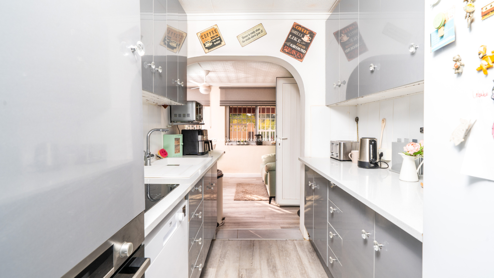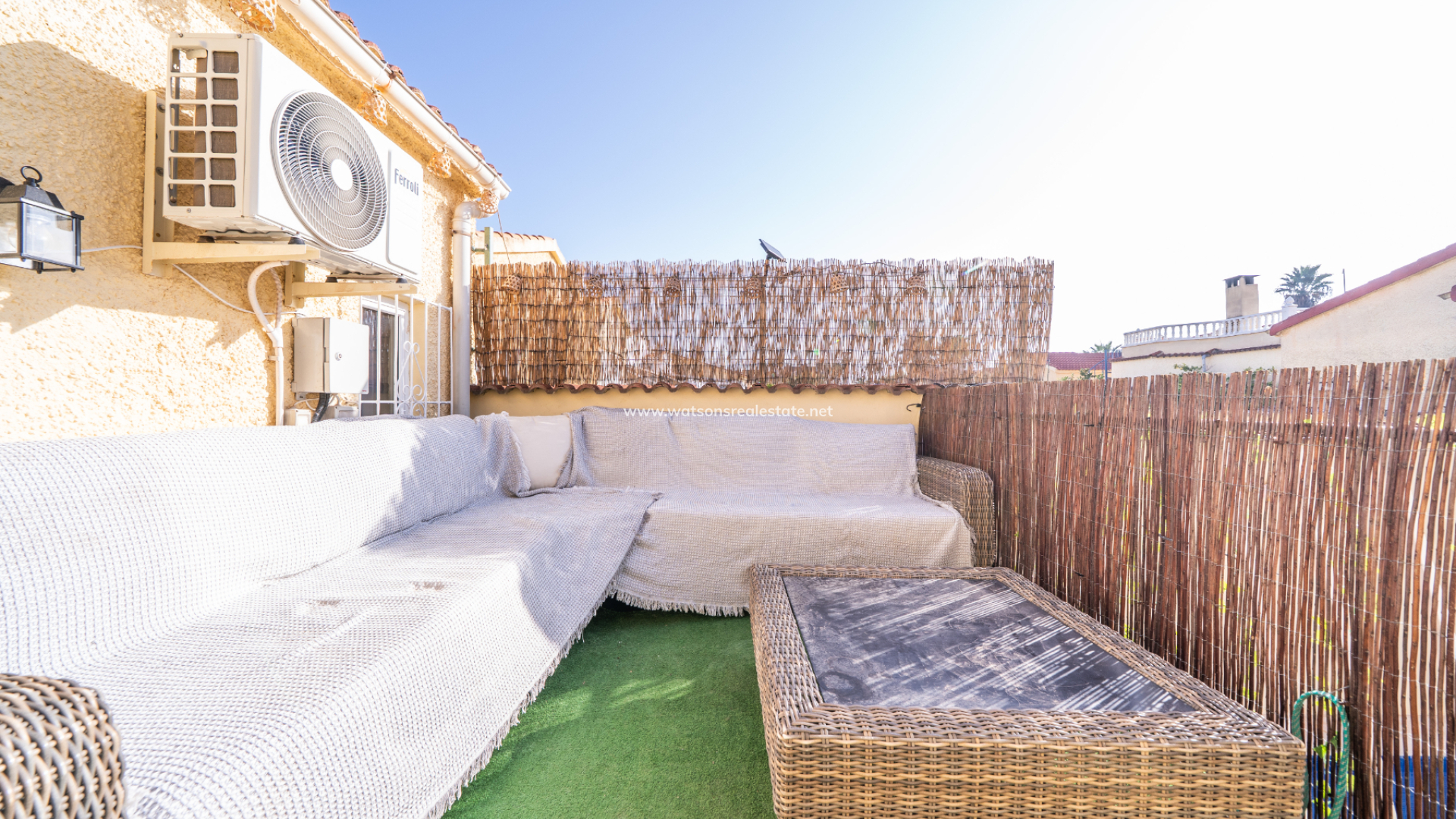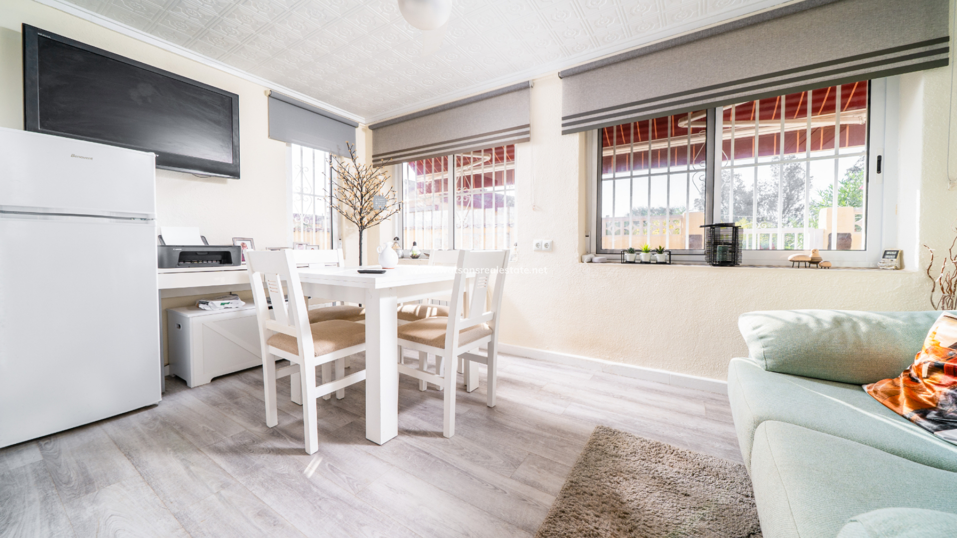 Binnen komt de woning uit op een glazen entreeportiek die leidt naar een lichte, comfortabele woonkamer. De nieuw geplaatste moderne keuken is zowel stijlvol als functioneel, aangevuld met een extra woon-/eetkamer. De ruime hoofdslaapkamer met airconditioning en plafondventilator beschikt ook over spiegelde inbouwkasten, een extra opbergkast / kledingkast en een grote en-suite badkamer met een inloopdouche. De tweede slaapkamer heeft toegang tot een veelzijdige kamer die gemakkelijk kan worden gebruikt als kleedkamer, hobbyruimte of opslag (deze wordt momenteel gebruikt als gastenverblijf). Het interieur van deze prachtige villa wordt gecompleteerd door een eigentijdse familiebadkamer met een hoek-inloopdouche.