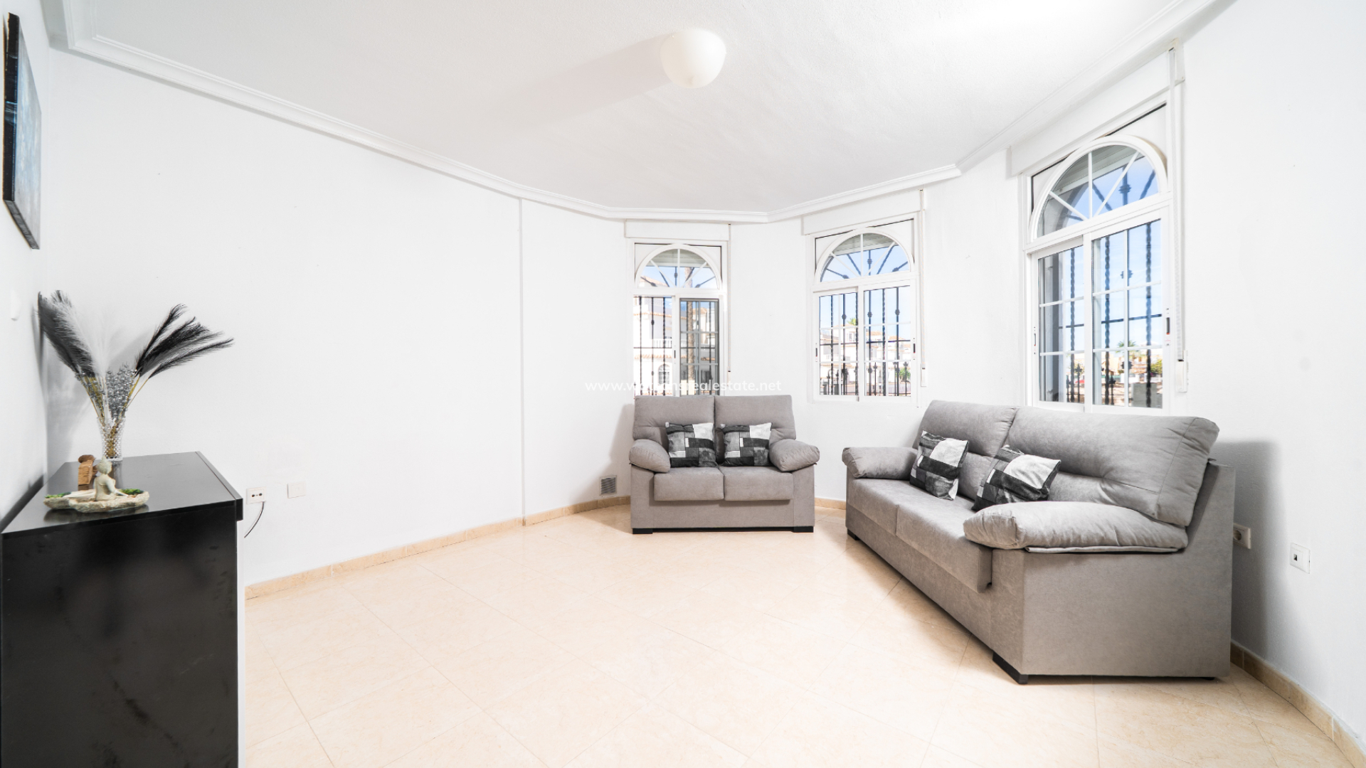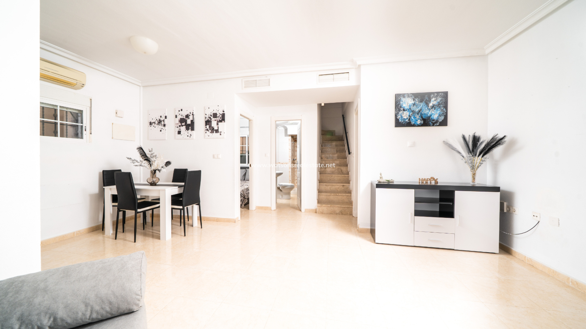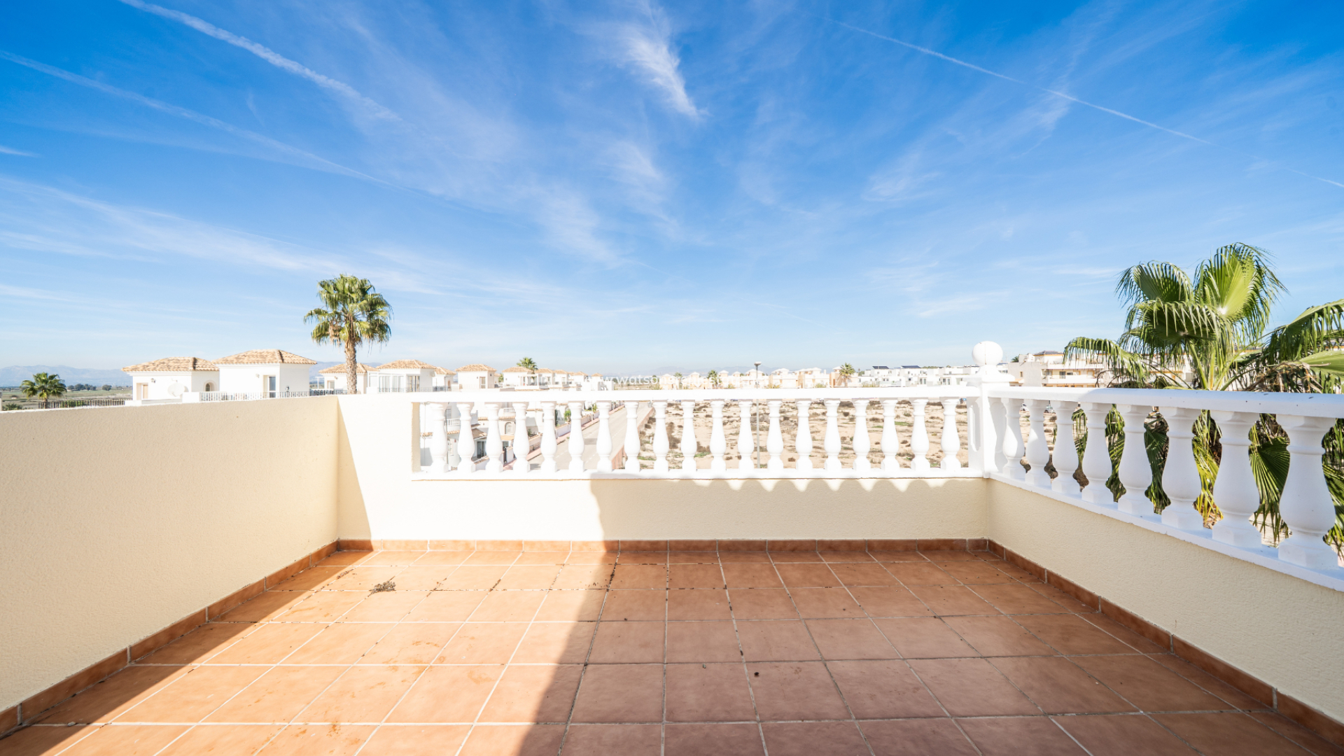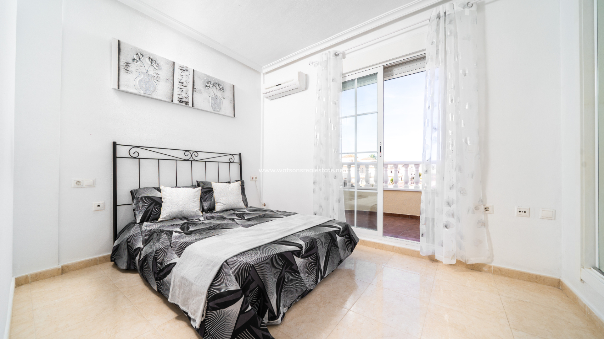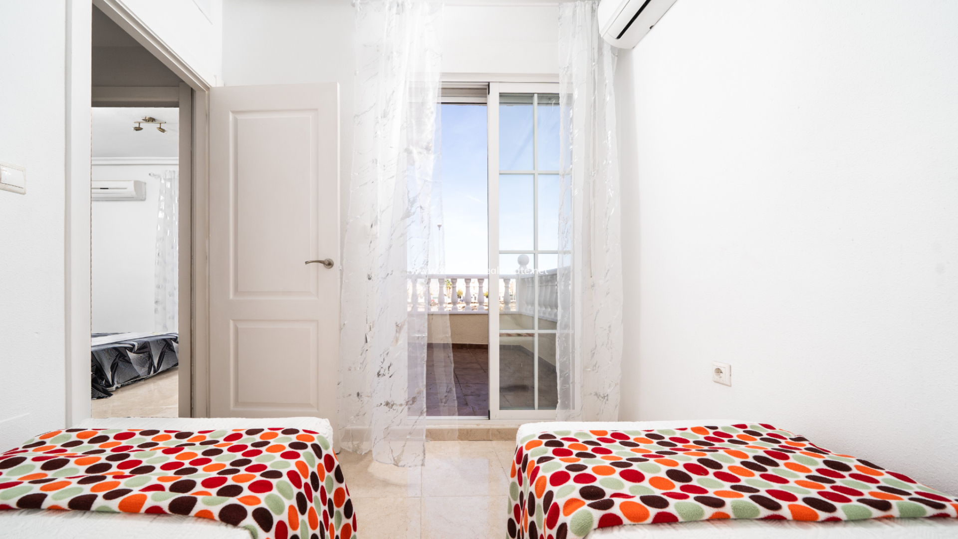 Boven zijn er nog twee slaapkamers, elk met toegang tot een privé balkon, samen met een tweede badkamer. De ligging van de villa zorgt de hele dag voor veel ochtendzon en een lichte sfeer. Bewoners profiteren van een prachtig onderhouden gemeenschappelijk zwembad, perfect om te ontspannen of tijd door te brengen met familie en vrienden tijdens de warmere maanden. Deze woning combineert een rustige omgeving met uitstekende toegang tot voorzieningen en vertegenwoordigt ook een fantastische kans voor verhuurinvestering.