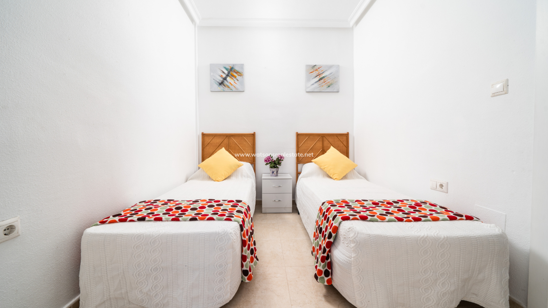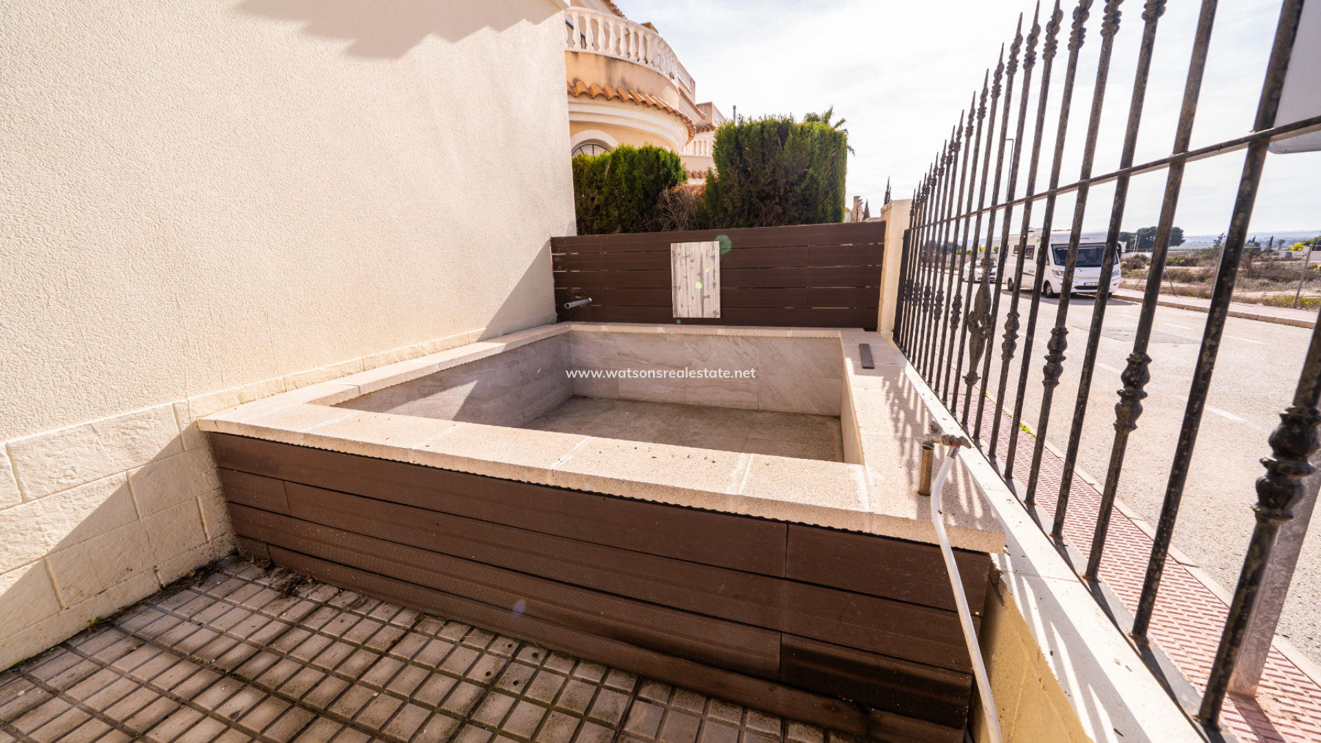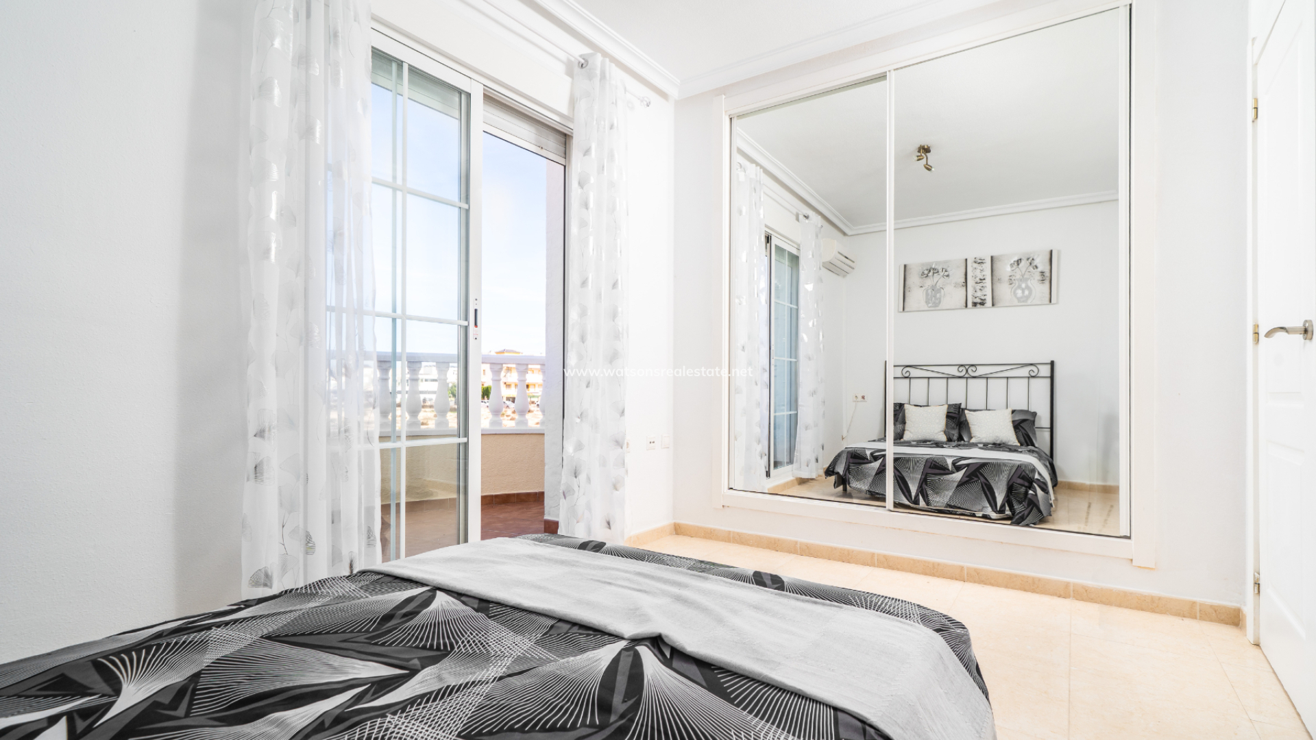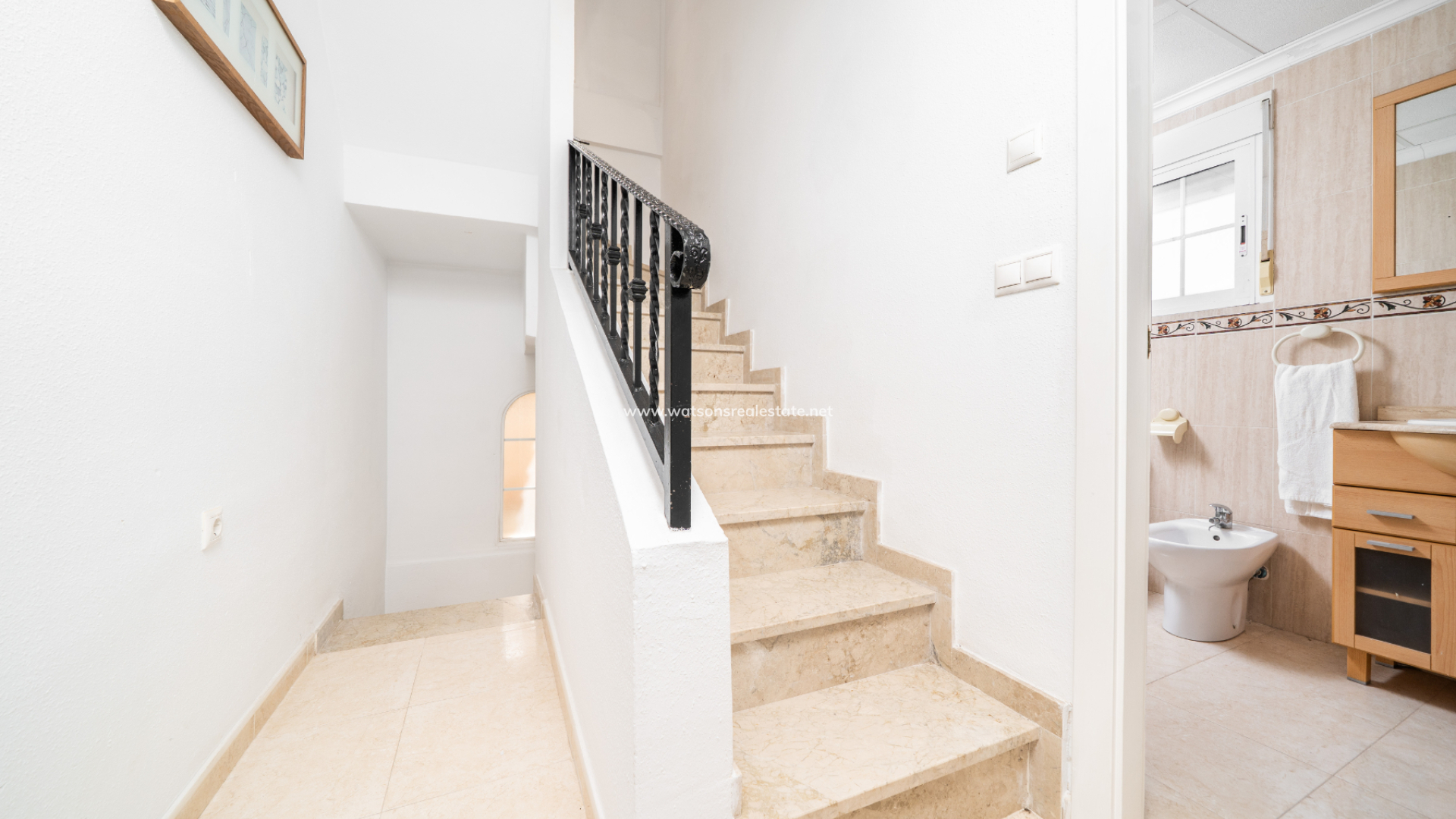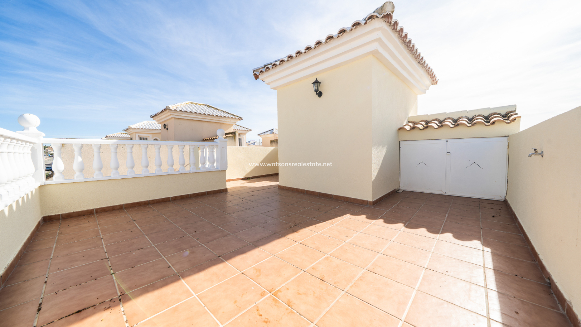 Boven zijn er nog twee slaapkamers, elk met toegang tot een privé balkon, samen met een tweede badkamer. De ligging van de villa zorgt de hele dag voor veel ochtendzon en een lichte sfeer. Bewoners profiteren van een prachtig onderhouden gemeenschappelijk zwembad, perfect om te ontspannen of tijd door te brengen met familie en vrienden tijdens de warmere maanden. Deze woning combineert een rustige omgeving met uitstekende toegang tot voorzieningen en vertegenwoordigt ook een fantastische kans voor verhuurinvestering.