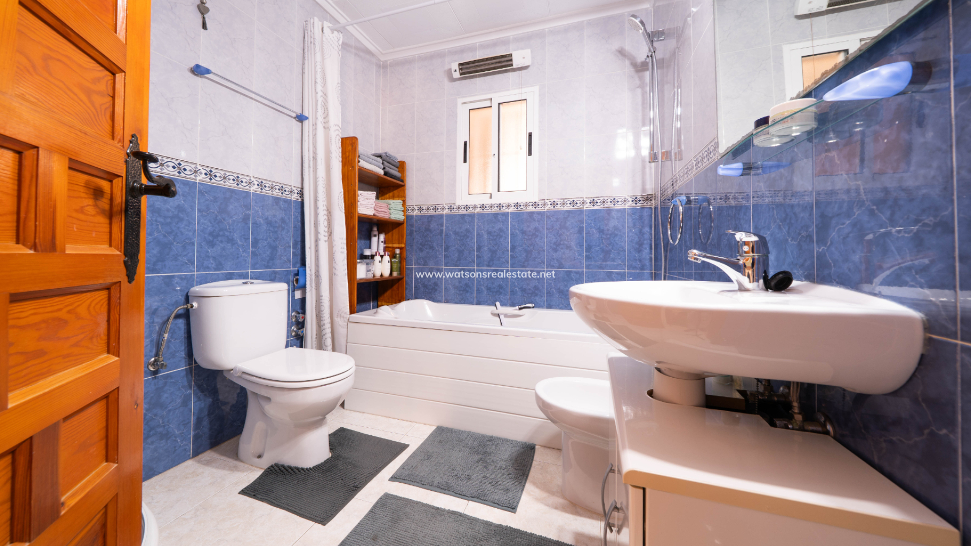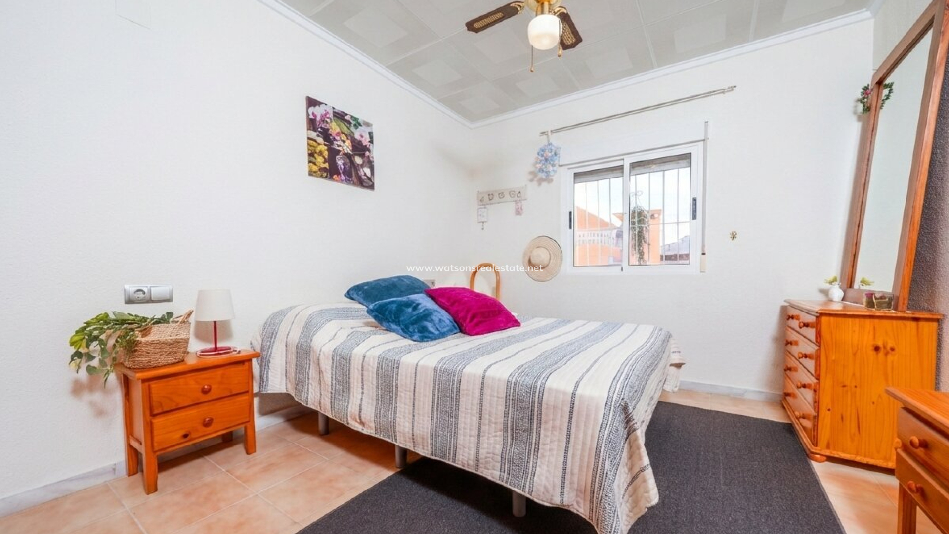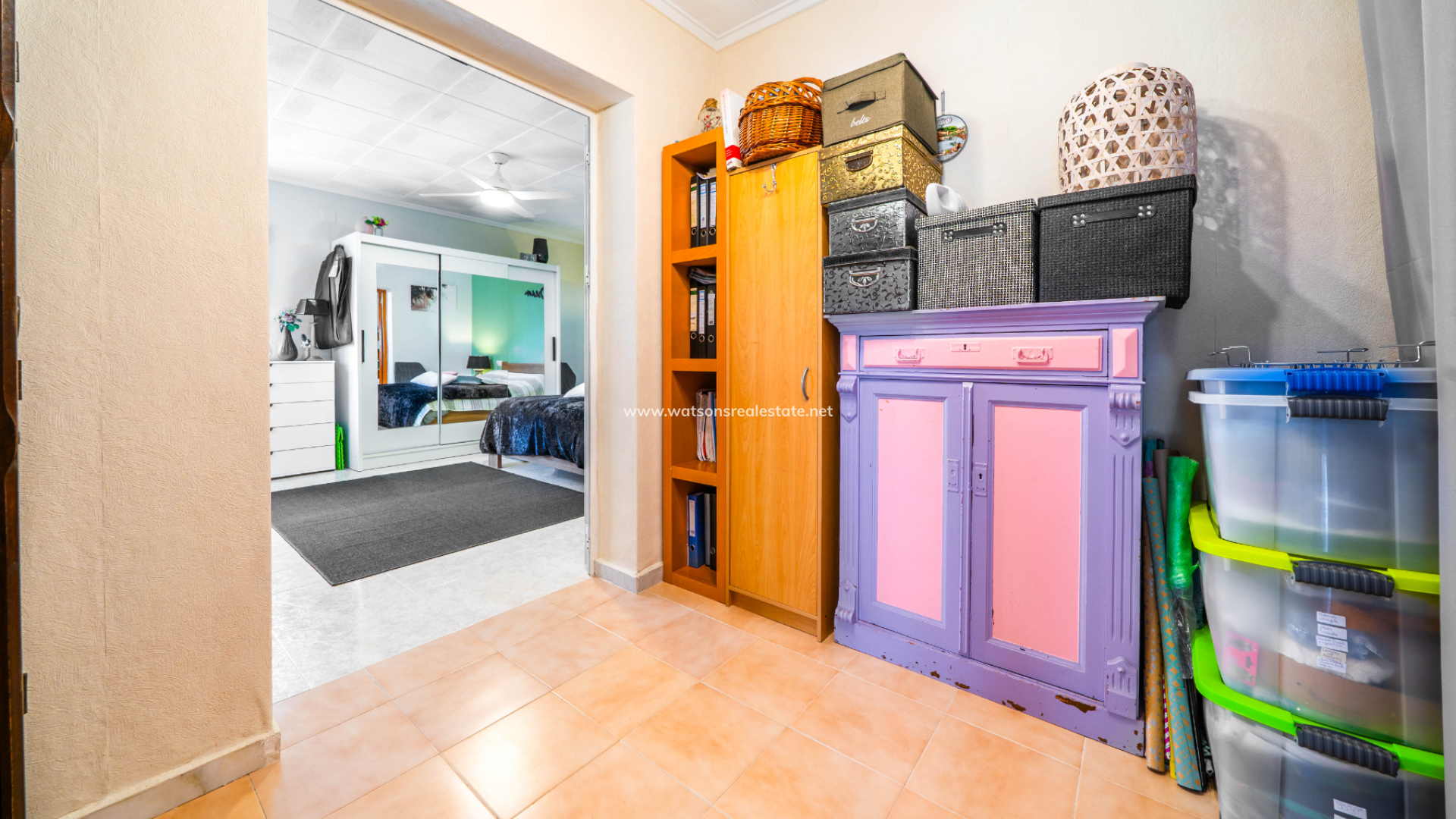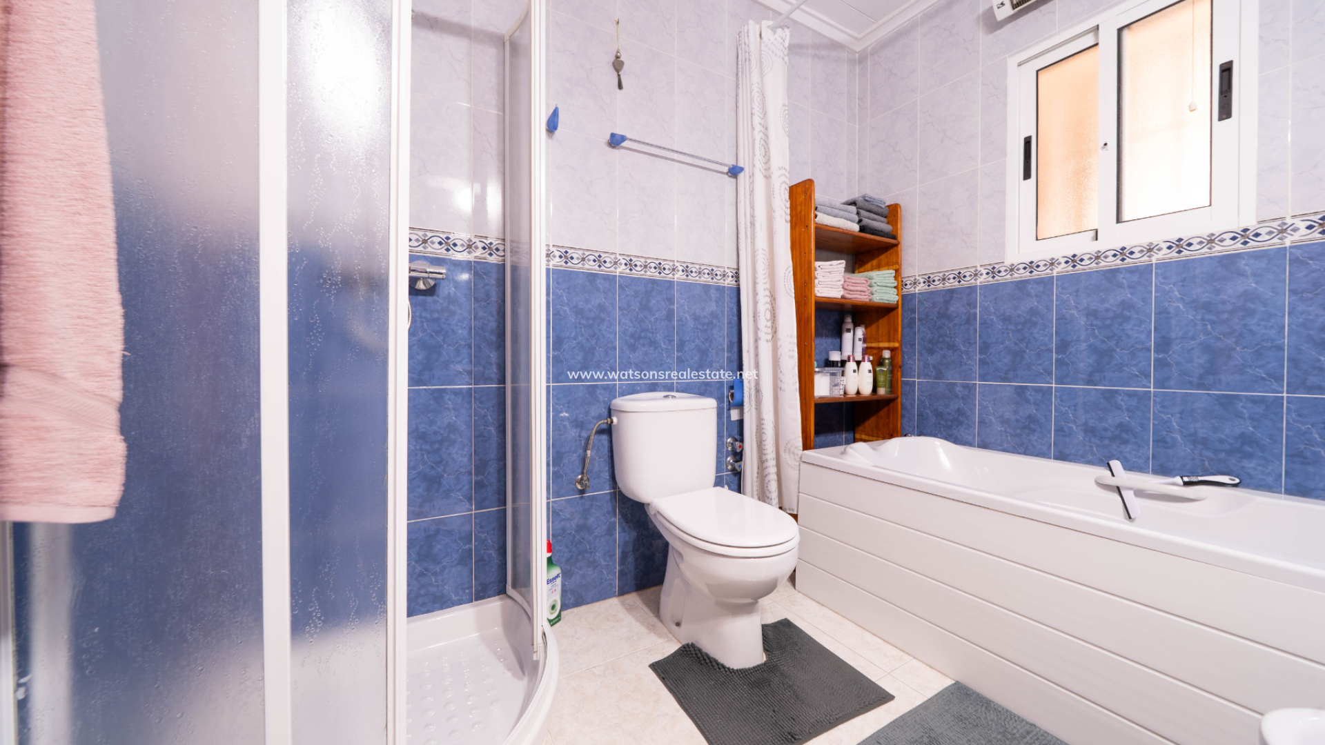 De villa beschikt ook over drie ruime tweepersoonsslaapkamers en twee badkamers. De hoofdslaapkamer is ruim en heeft een en-suite badkamer met een hoekdouche en bad. Er is een praktische opbergruimte tussen twee van de slaapkamers.
