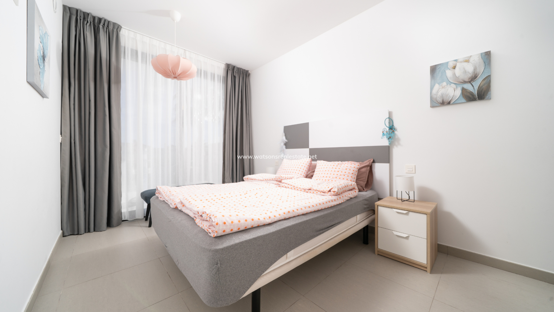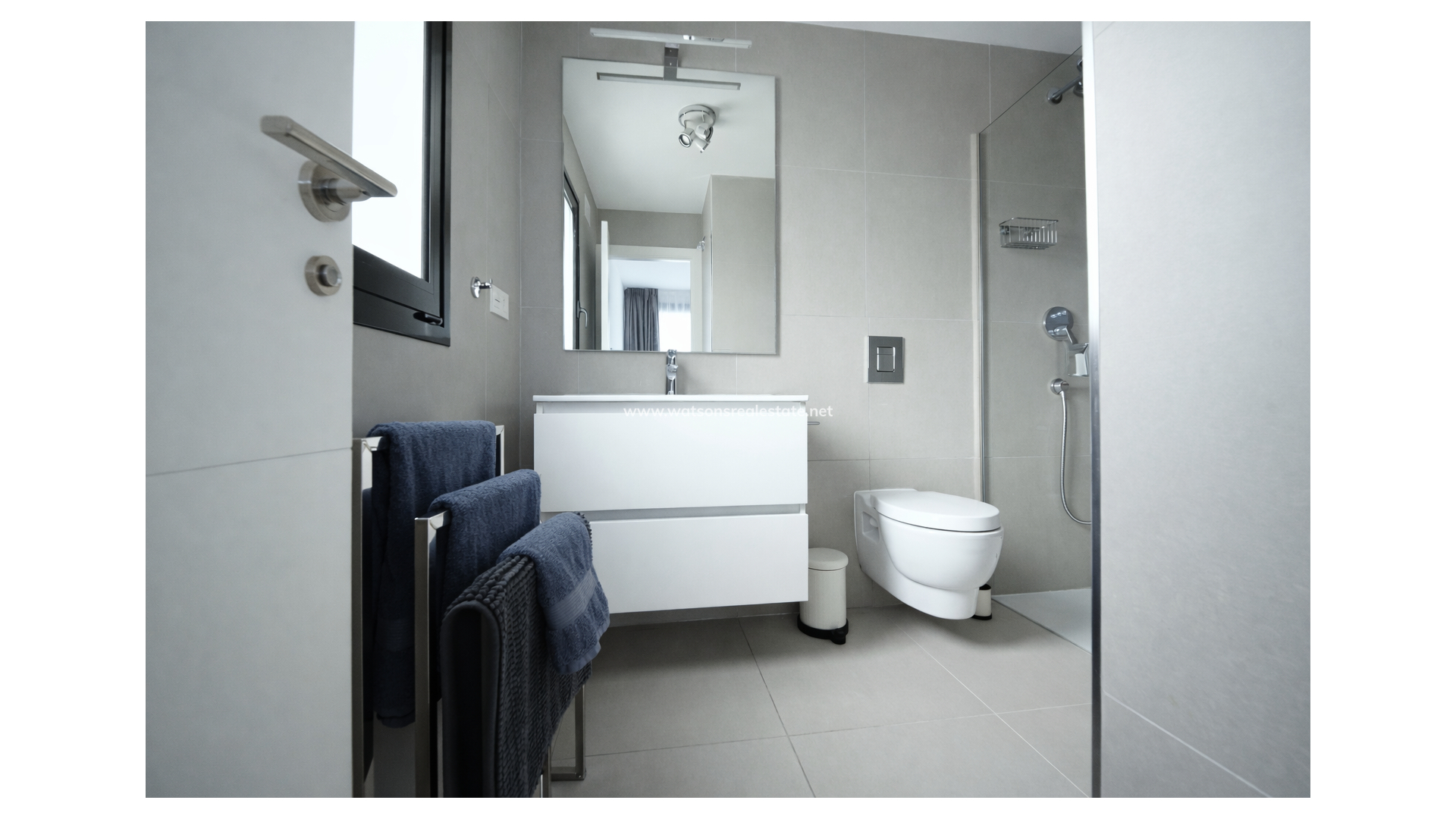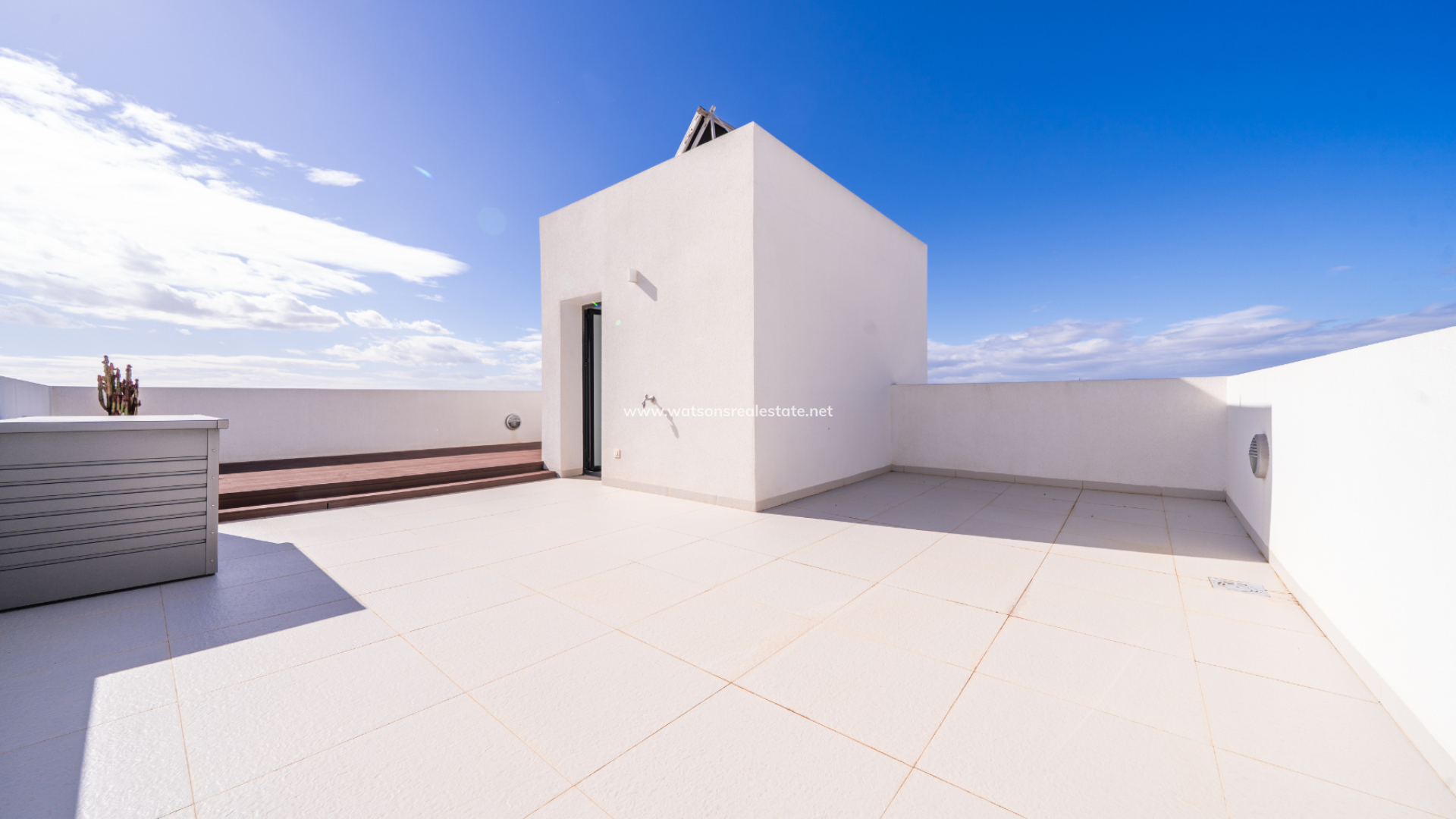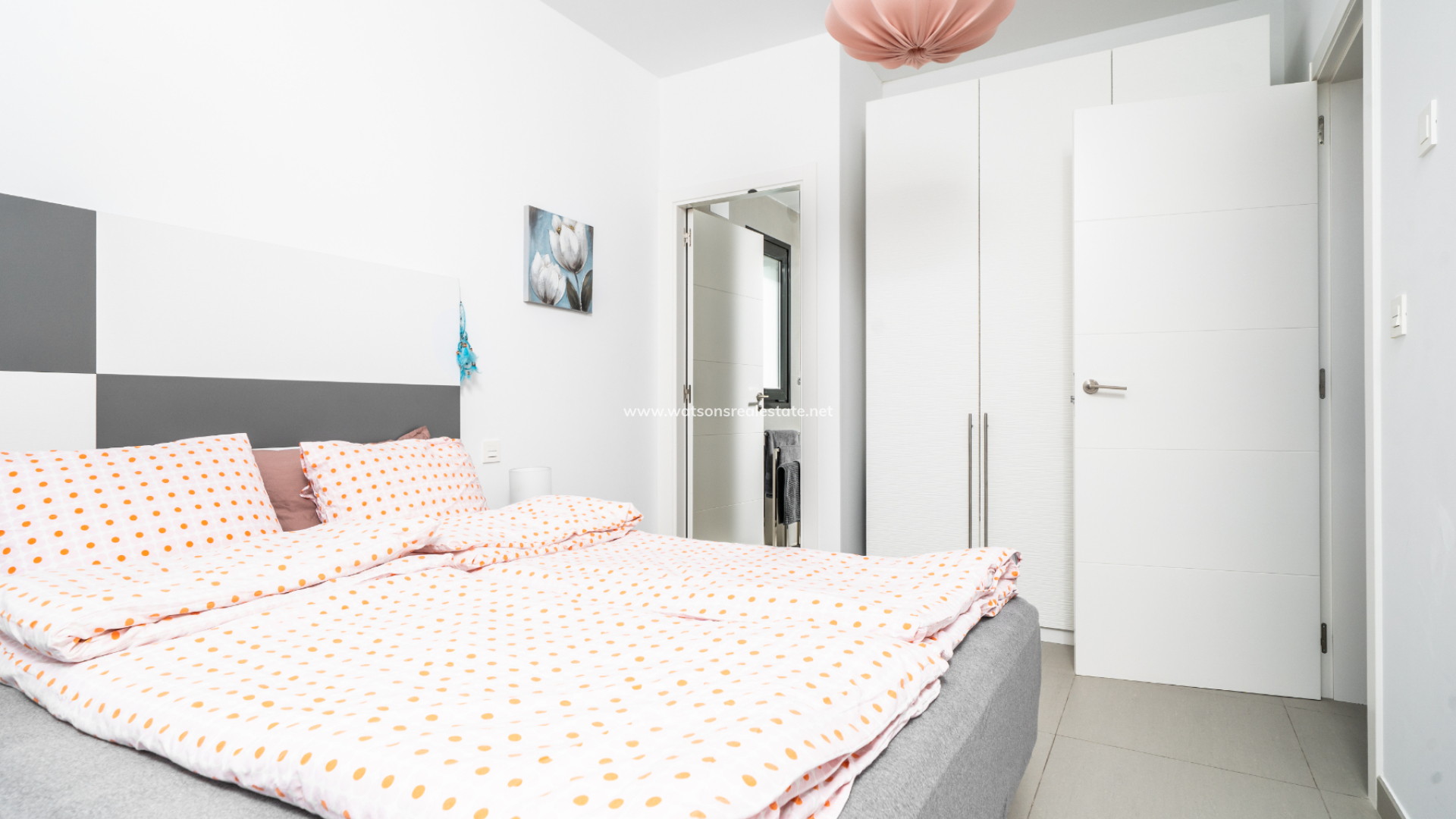 De villa beschikt over drie ruime slaapkamers en drie stijlvolle badkamers (waarvan 2 en-suite), allemaal afgewerkt volgens een hoge standaard met LED-spiegels, verhoogde toiletten en kamerbrede douches. De hoofdslaapkamer profiteert van een inloopkast en een van de en-suite badkamers. De open woon-, eet- en keukenruimte is volledig geïntegreerd en bevat een ontbijtbar, wat een praktische en sociale ruimte creëert, terwijl een aparte bijkeuken dagelijks gemak toevoegt. Op de bovenverdieping wordt de overloop gebruikt als studeer- of kantoorruimte, met toegang tot een zonneterras, dat ook toegankelijk is vanuit beide slaapkamers boven via openslaande deuren.
