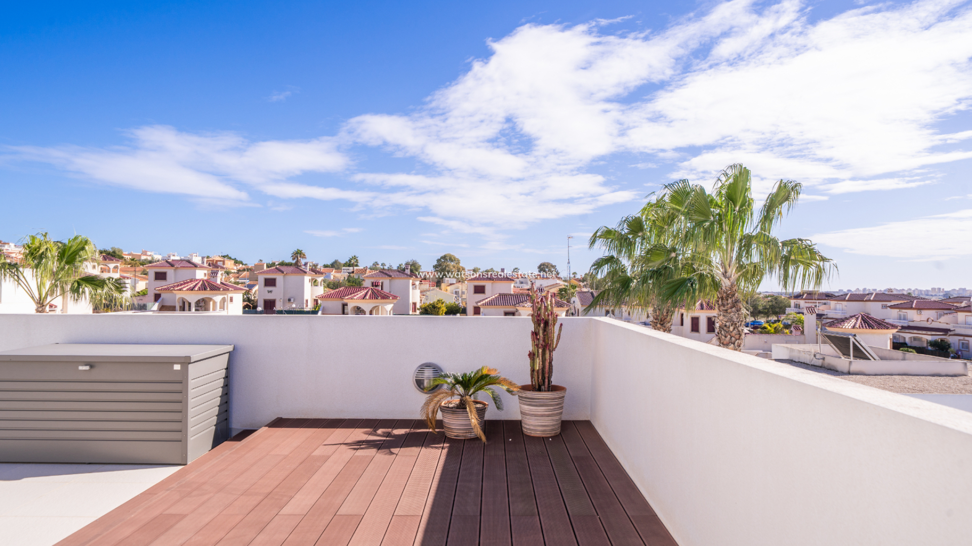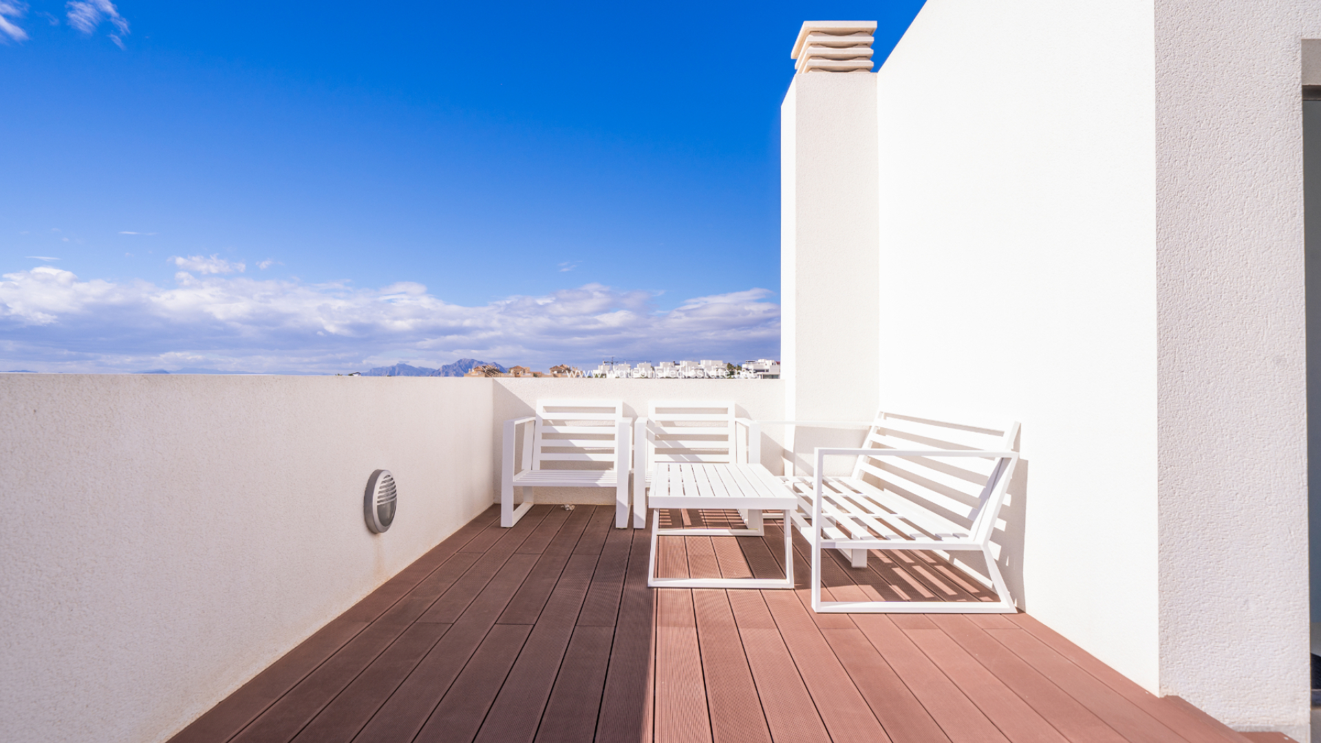 Buiten zijn er tal van zitgedeeltes in de tuin en op de terrassen, gelegen in zowel zonnige als schaduwrijke gebieden, ➡️ een privé verwarmd zwembad dat het hele jaar door plezier biedt, en een solarium met een lounge/chill-out gedeelte met houten vlonders dat een panoramisch uitzicht biedt over Guardamar del Segura, het omliggende platteland en de bergen, met uitzicht op de prachtige zonsondergangen van de Costa Blanca.