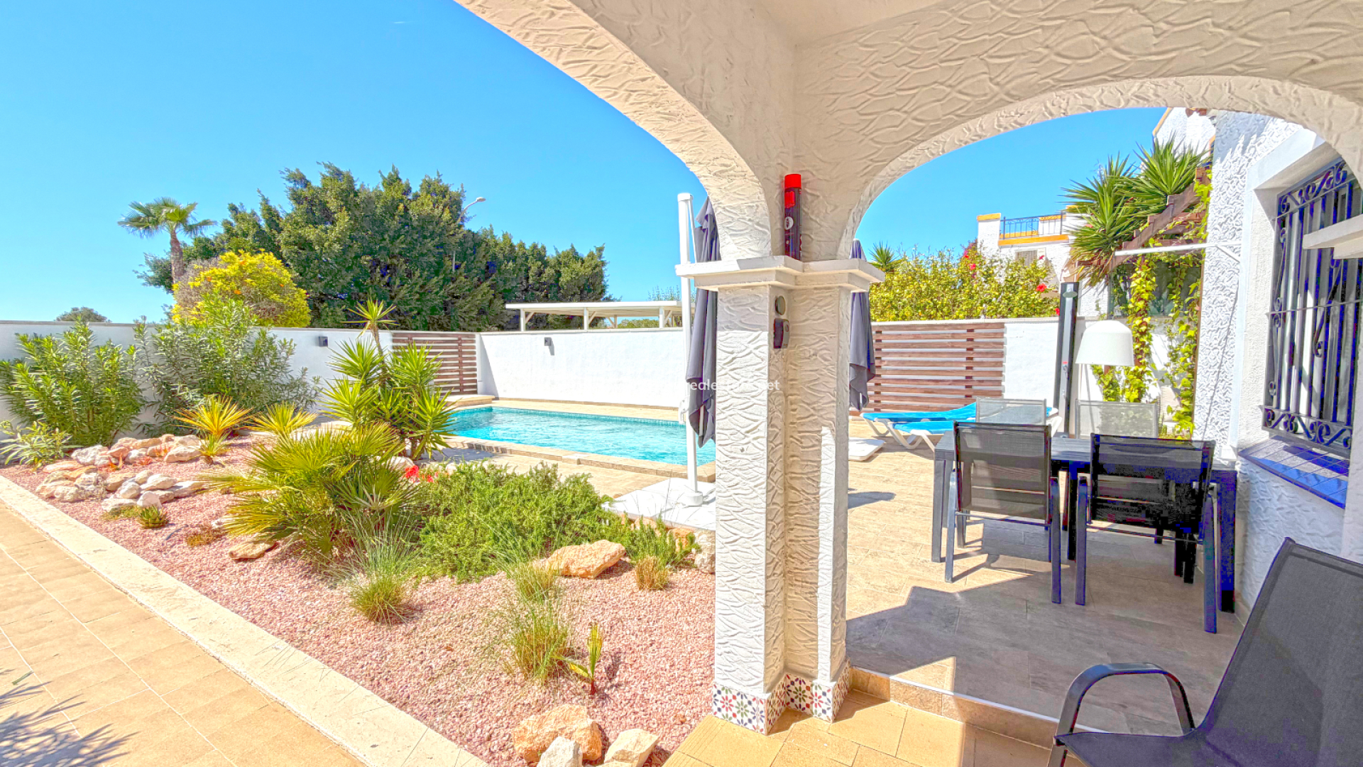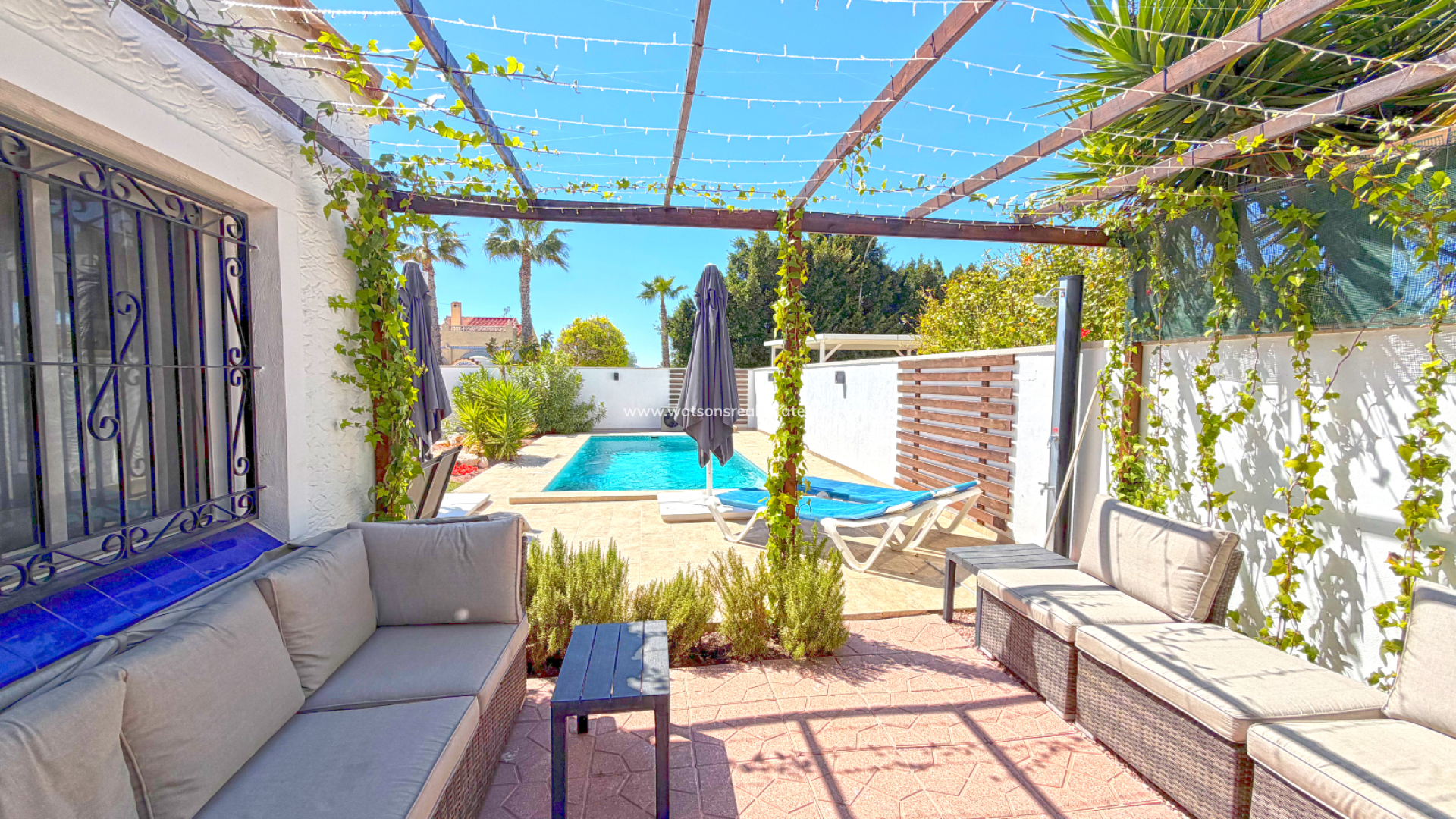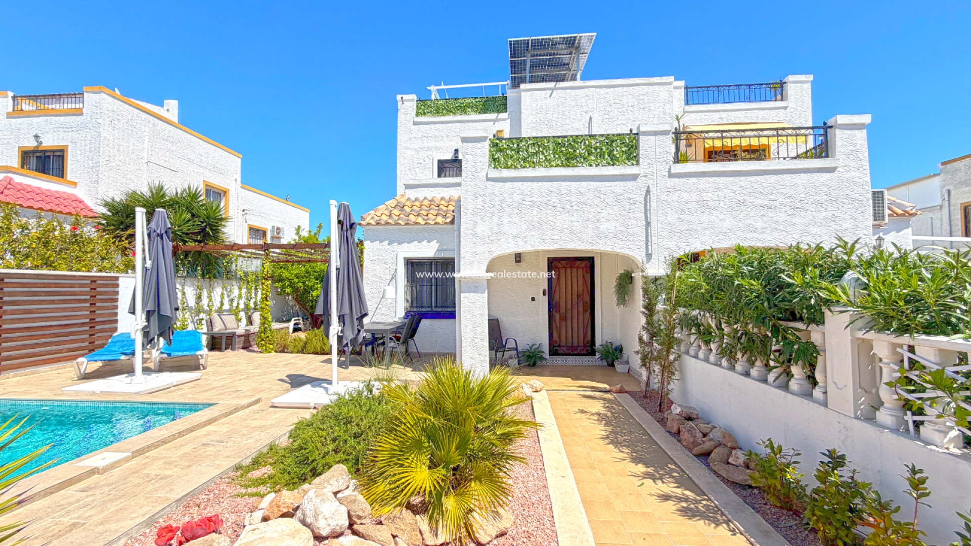 Deze vrijstaande villa met drie slaapkamers is gelegen in een kleine, besloten gemeenschap in de urbanisatie La Marina aan de Costa Blanca. Verdeeld over twee verdiepingen met 69 m² bebouwde oppervlakte op een perceel van 150 m², is de woning goed gepresenteerd en wordt volledig gemeubileerd en uitgerust verkocht, inclusief alle witgoed — waardoor zij vanaf dag één werkelijk instapklaar is.