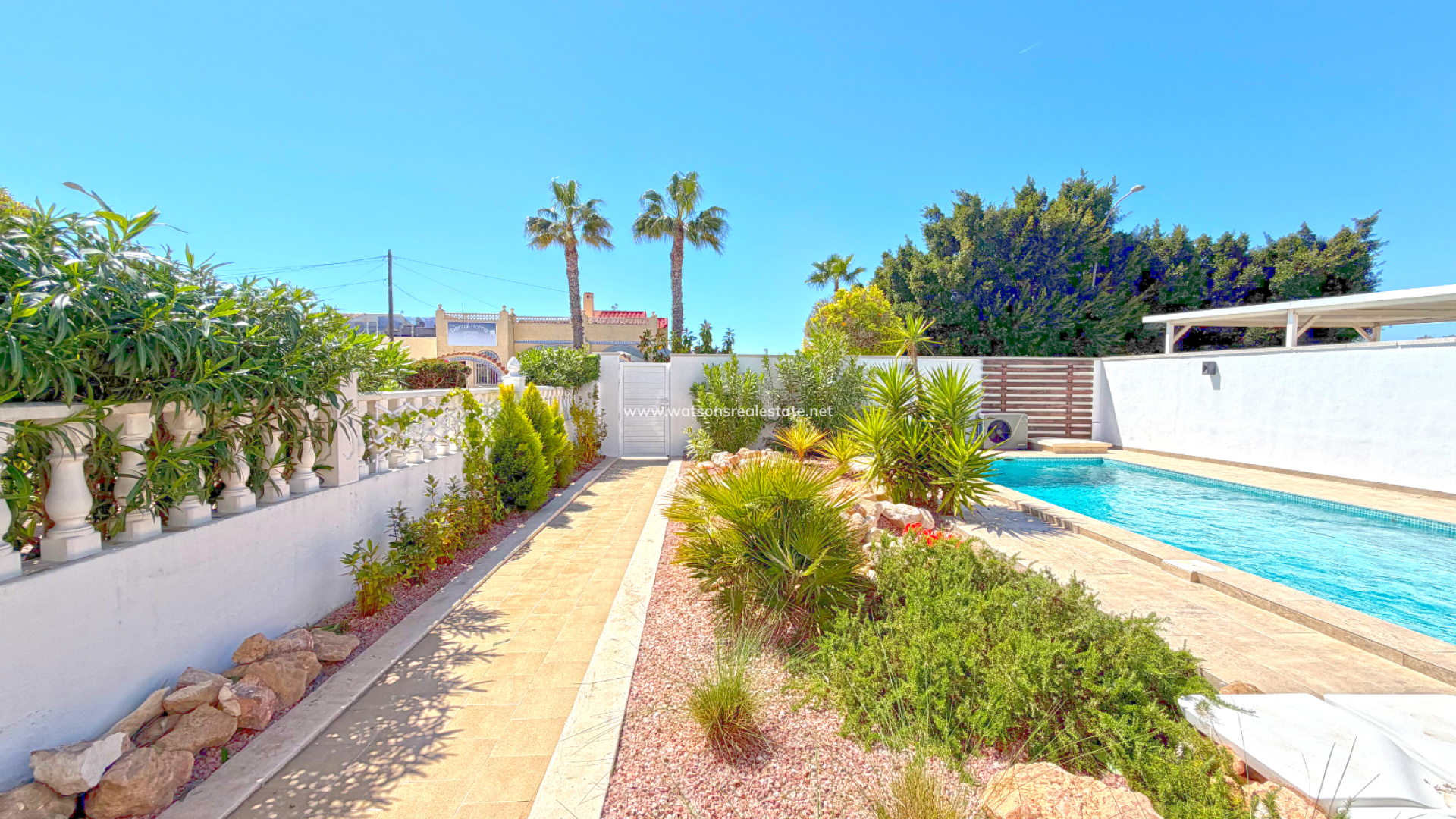 De villa is gelegen in een rustig gedeelte van de urbanisatie, maar dagelijkse voorzieningen bevinden zich op slechts 800 m afstand. Het strand is vijf minuten rijden, de luchthaven van Alicante ligt op ongeveer 25 km en de dichtstbijzijnde golfbaan is ongeveer 10 km verwijderd.