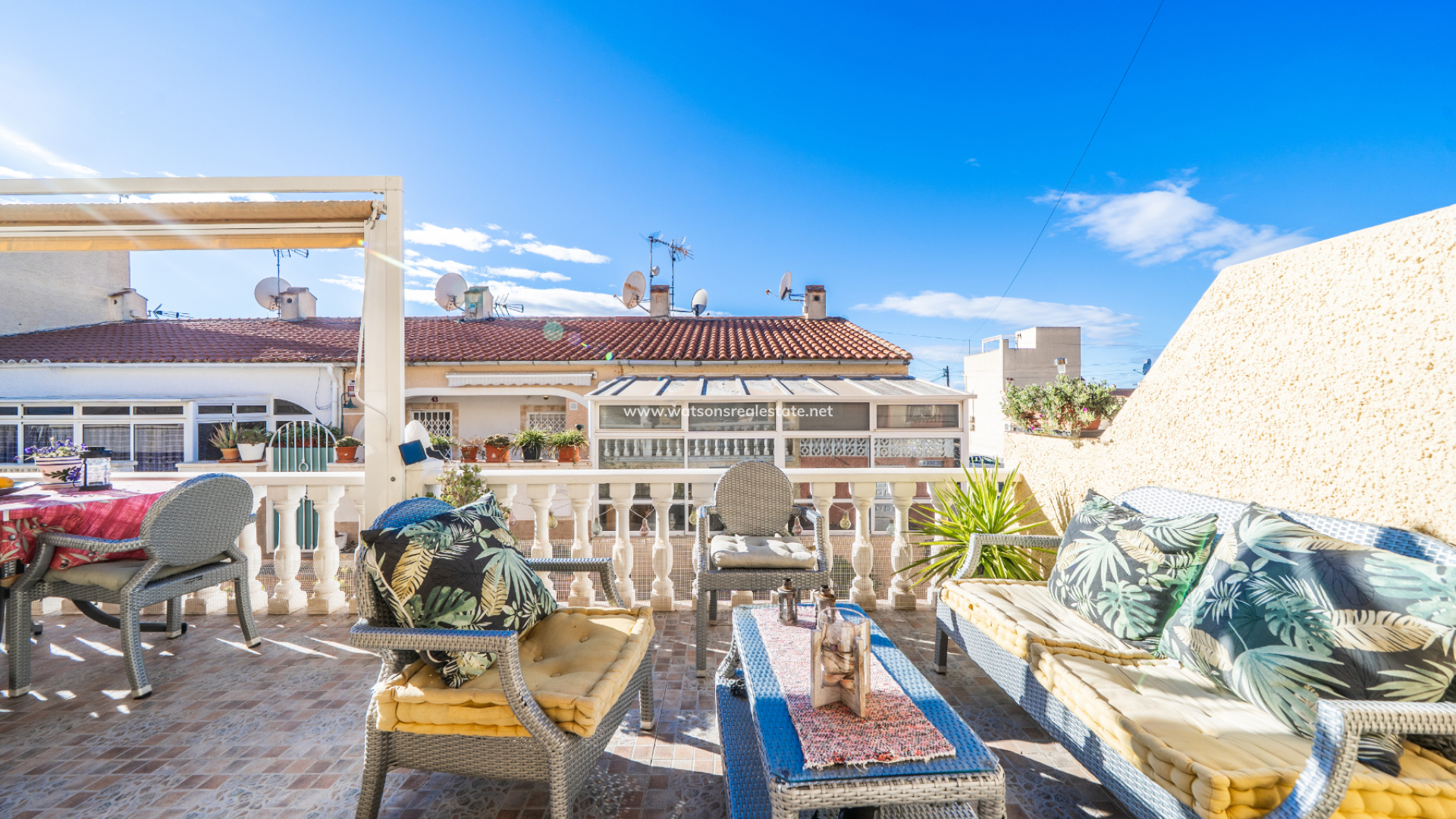 This extended model "Fina" mid-terraced home in La Marina offers ➡️ a bright south-facing layout with a comfortable and modern feel throughout. The property has been refurbished and includes two new bathrooms, a new kitchen, and air conditioning in every room. Double-glazed windows bring in plenty of natural light and make the interior quiet and energy-efficient. Its location is central yet quiet, with amenities just a five-minute walk away.