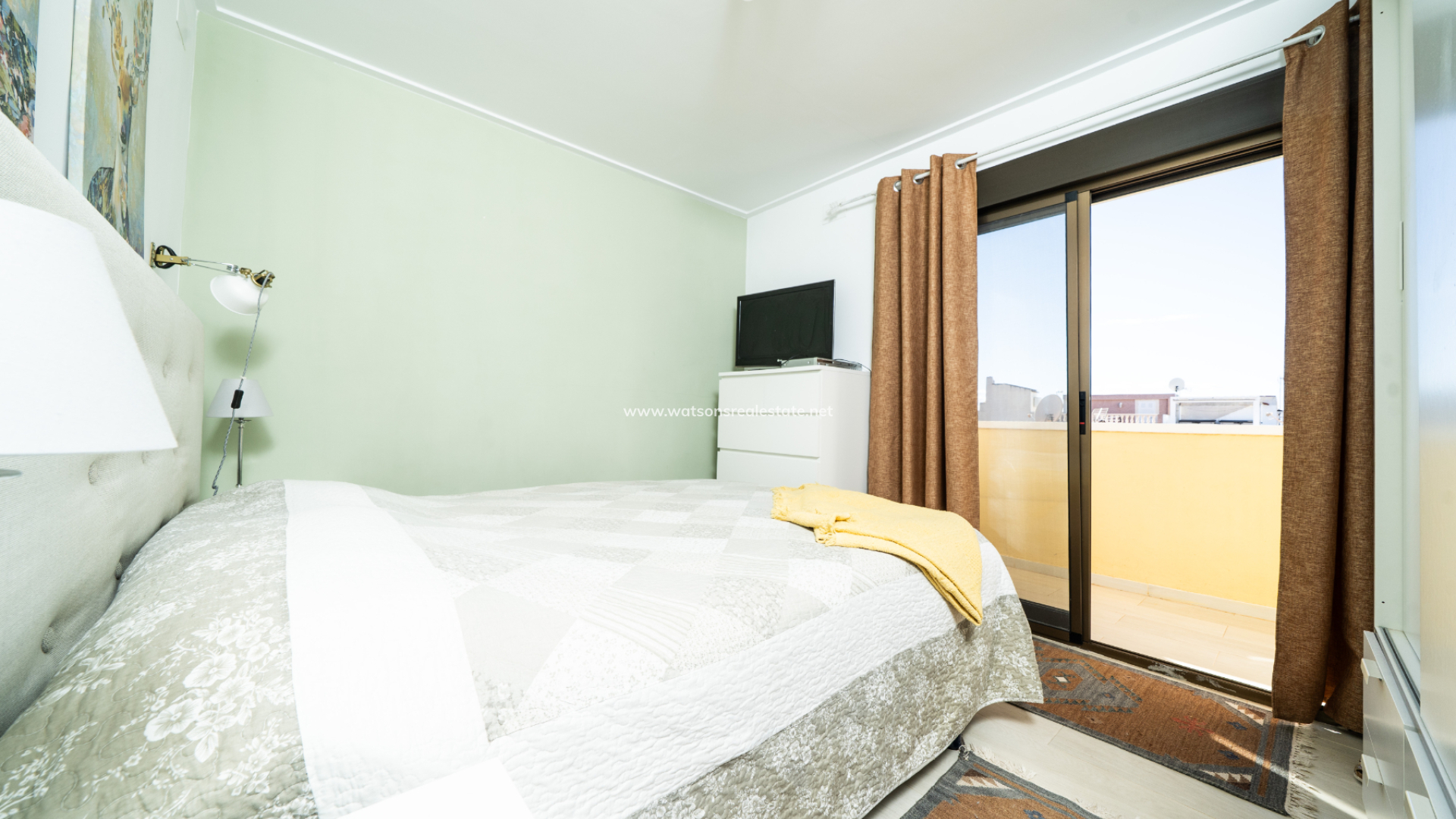 Stairs lead to the first floor and another newly renovated bathroom with wall-to-wall shower and modern fixtures and fittings. Two good sized bedrooms are found at this level with patio doors allowing access to a shared, covered sun terrace with ➡️ lovely views of the surrounding countryside and mountains.
