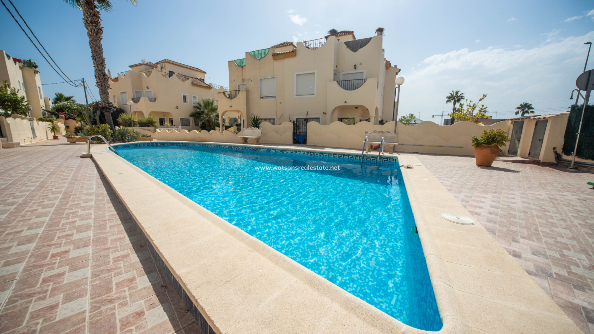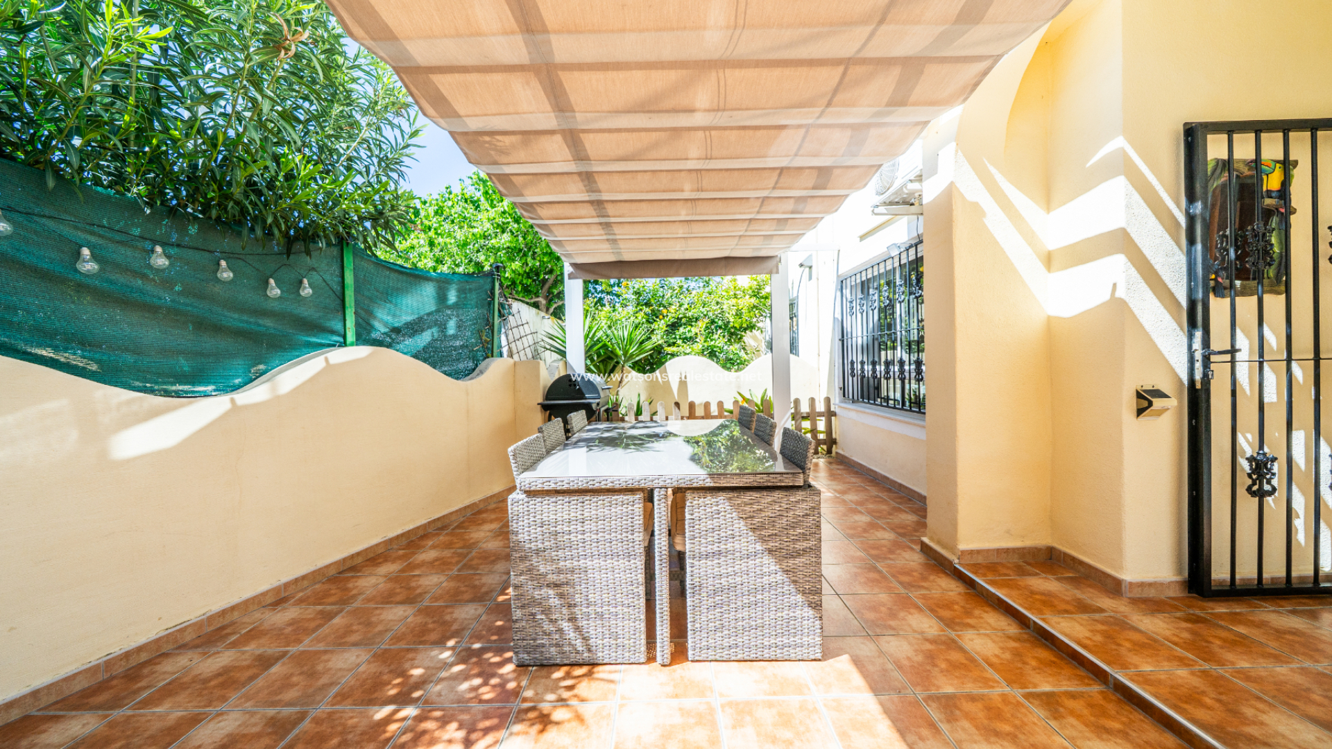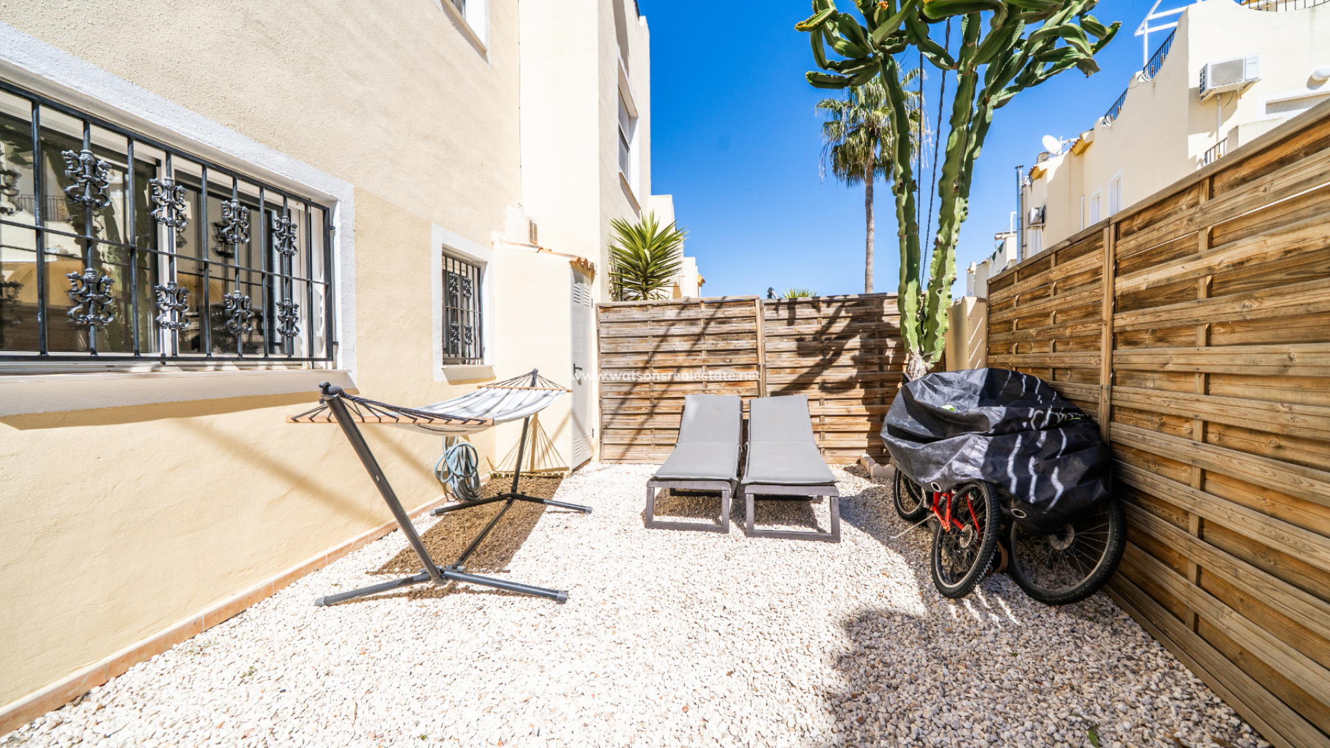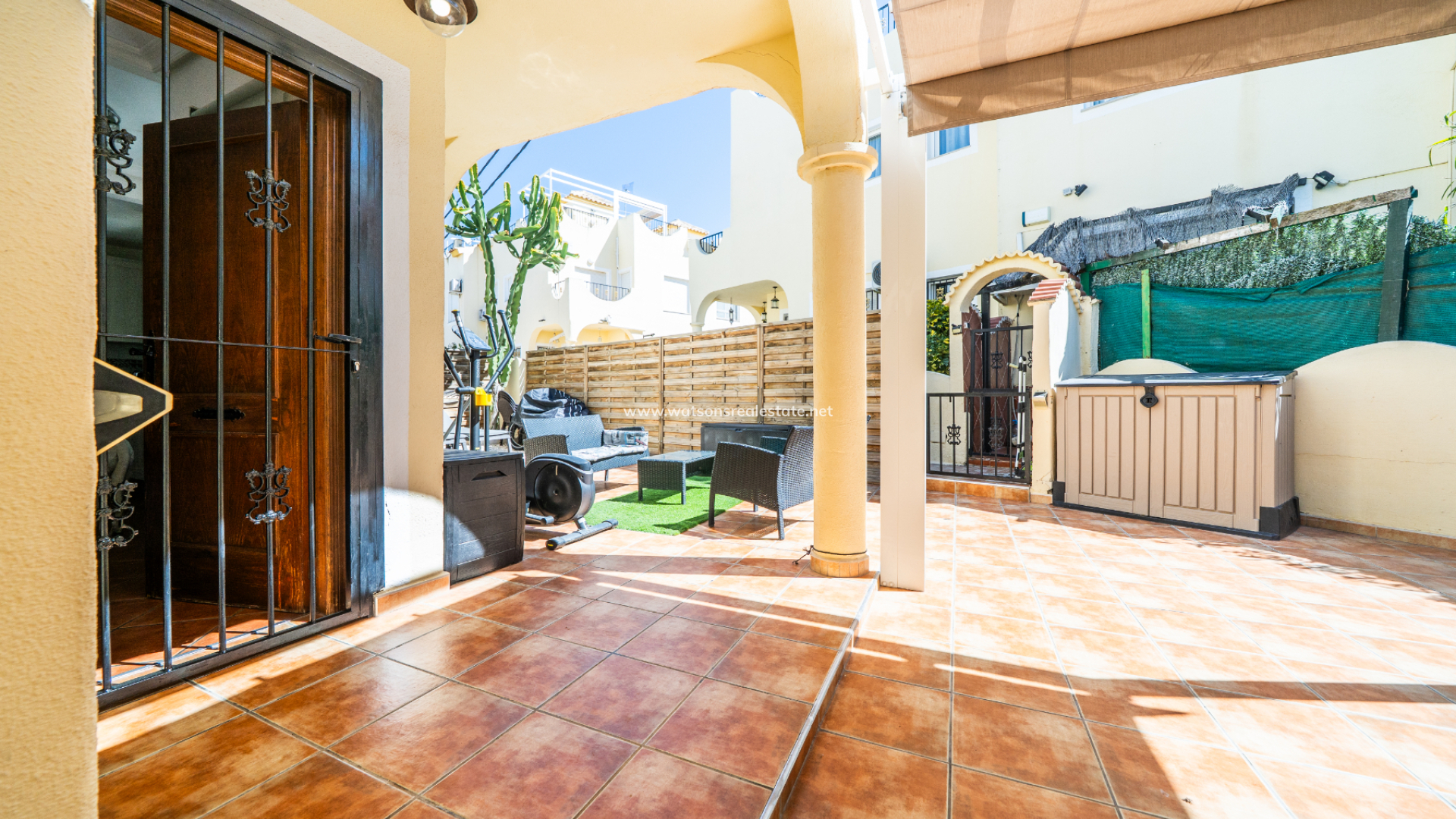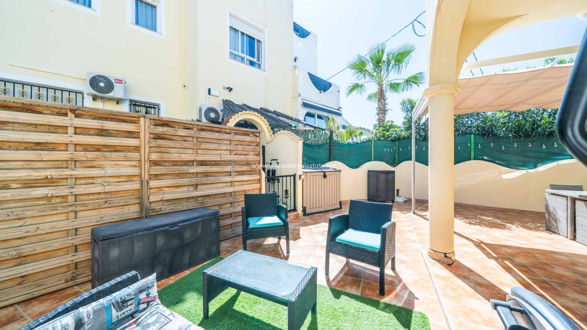 Located in Urb. El Oasis, San Fulgencio, this well-presented "Isla Cristina" quad offers a comfortable and practical layout with 81m² of living space on a 103m² plot, ideal for both permanent living and holidays. The property enjoys a desirable ➡️ south-facing orientation, allowing for plenty of natural light throughout the day, while sun awnings provide welcome shade when needed. The garden has various seating areas to enjoy outdoor living. In addition this property benefits from being part of a private community with shared pool access, perfect for relaxing days in the sun and the ideal place to meet your neighbours.