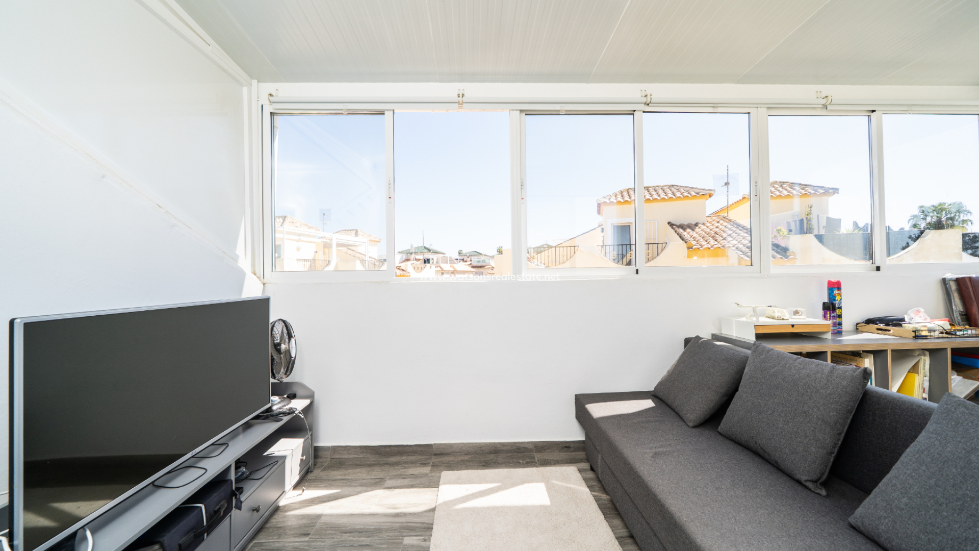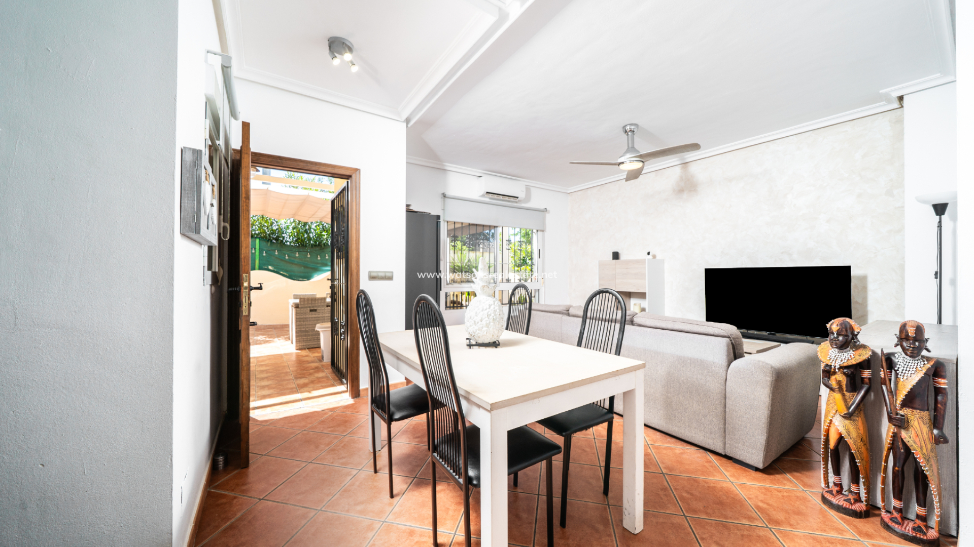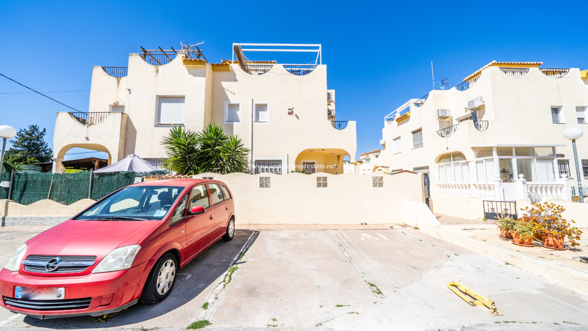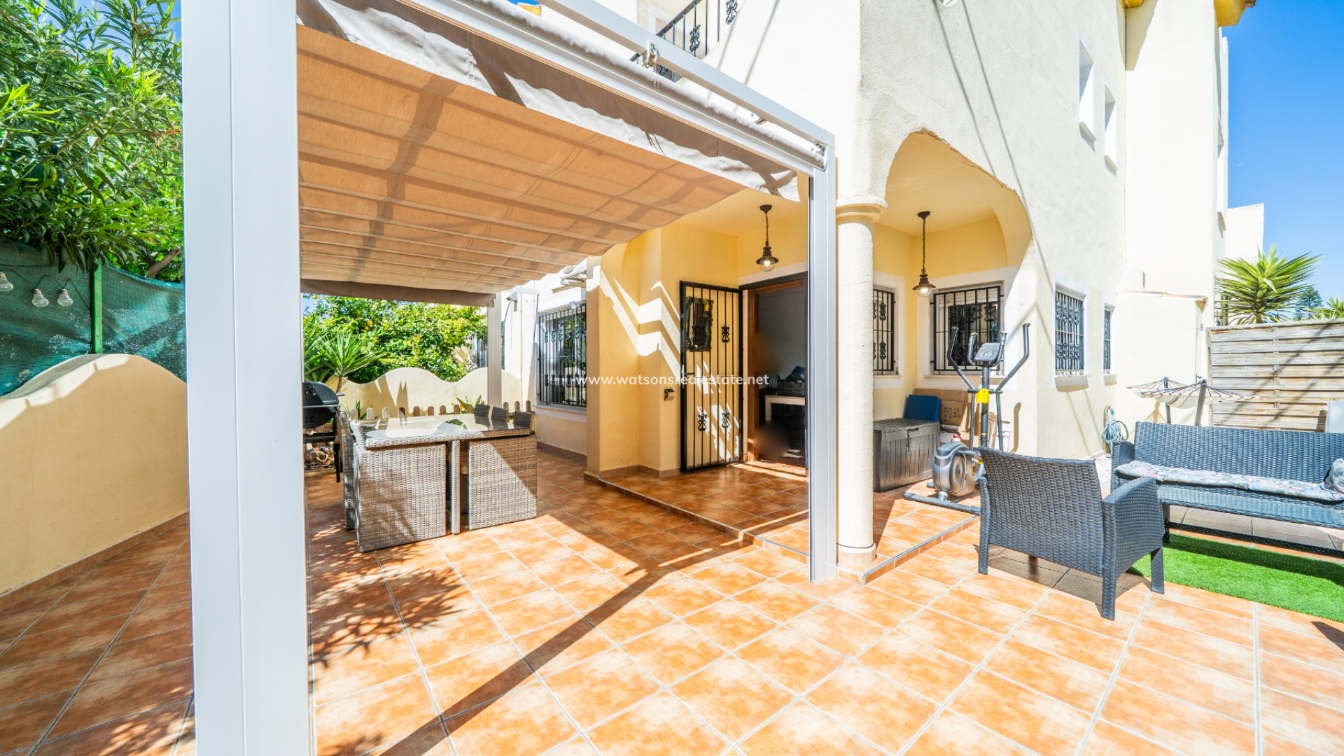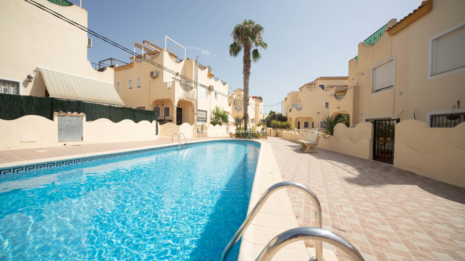 Located in Urb. El Oasis, San Fulgencio, this well-presented "Isla Cristina" quad offers a comfortable and practical layout with 81m² of living space on a 103m² plot, ideal for both permanent living and holidays. The property enjoys a desirable ➡️ south-facing orientation, allowing for plenty of natural light throughout the day, while sun awnings provide welcome shade when needed. The garden has various seating areas to enjoy outdoor living. In addition this property benefits from being part of a private community with shared pool access, perfect for relaxing days in the sun and the ideal place to meet your neighbours.
