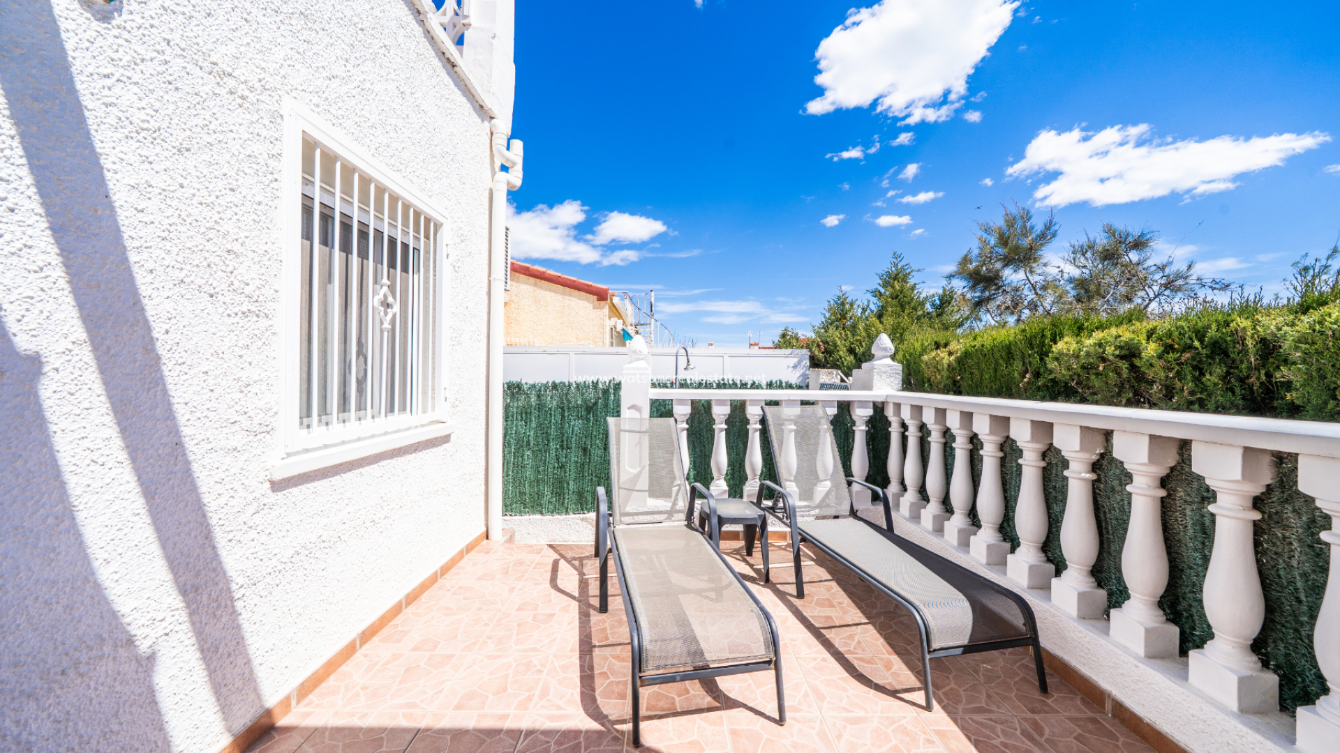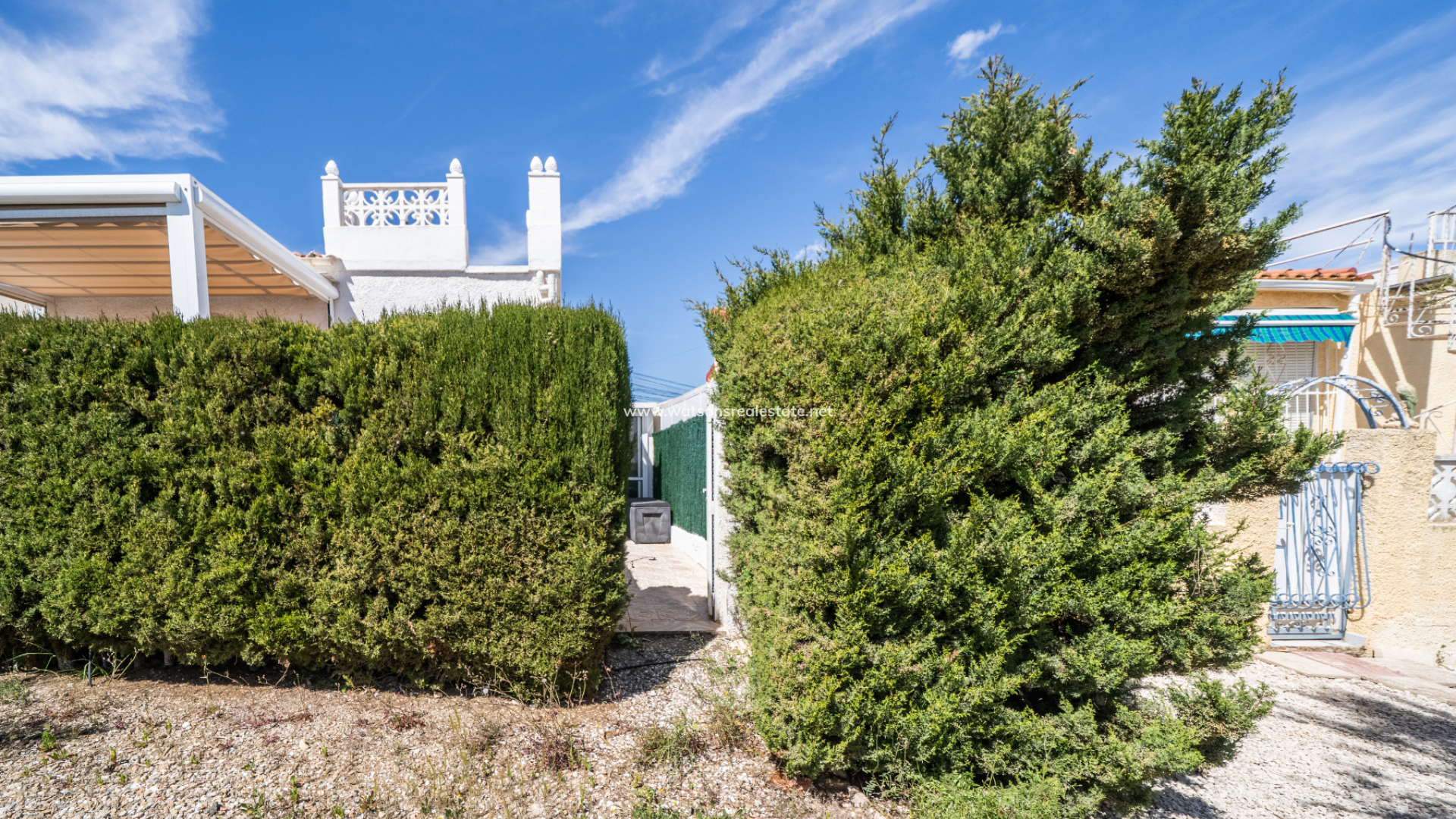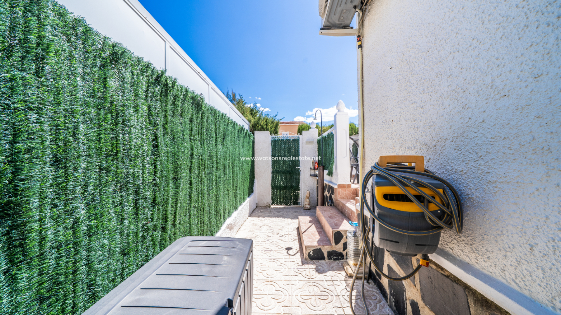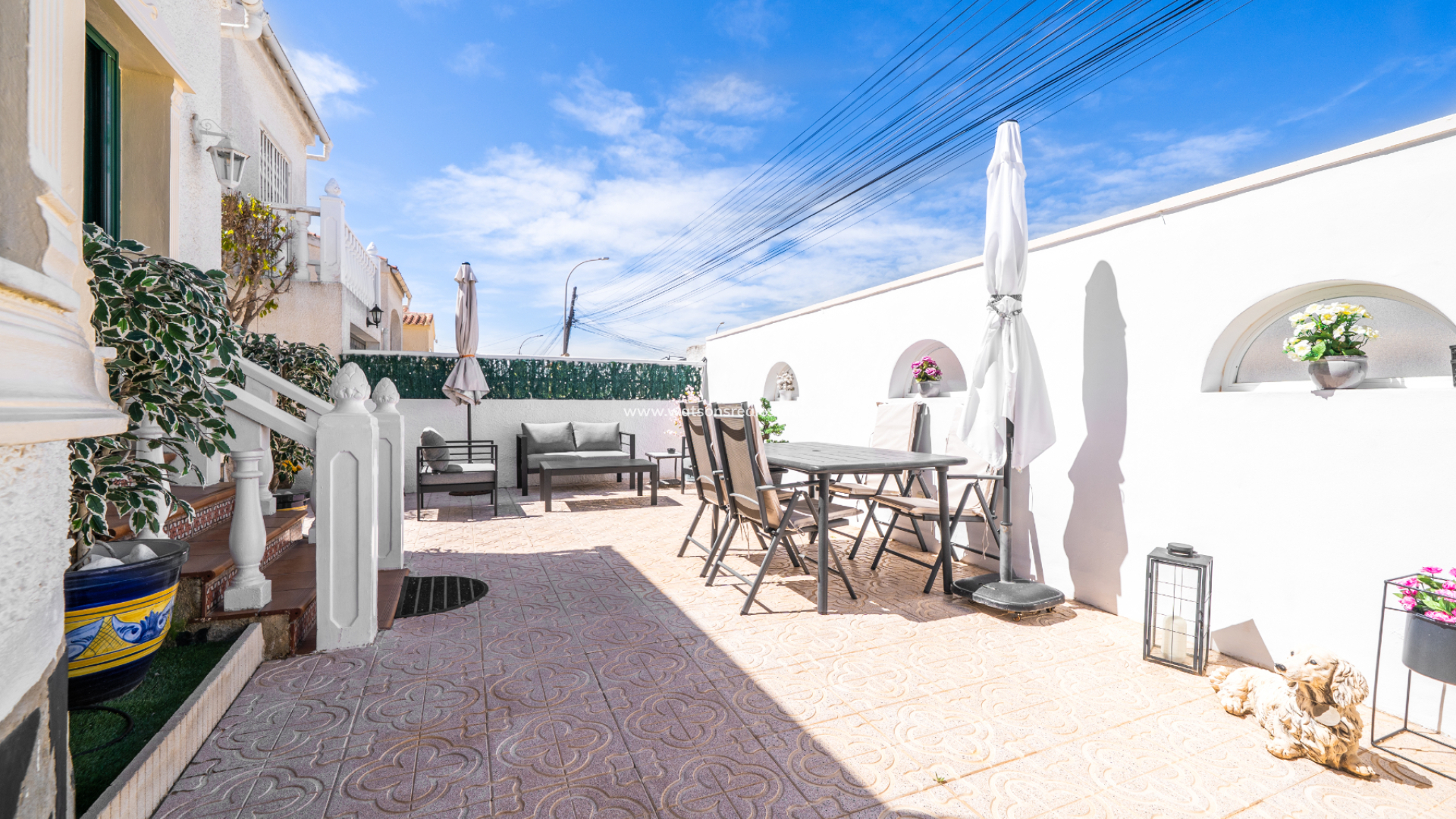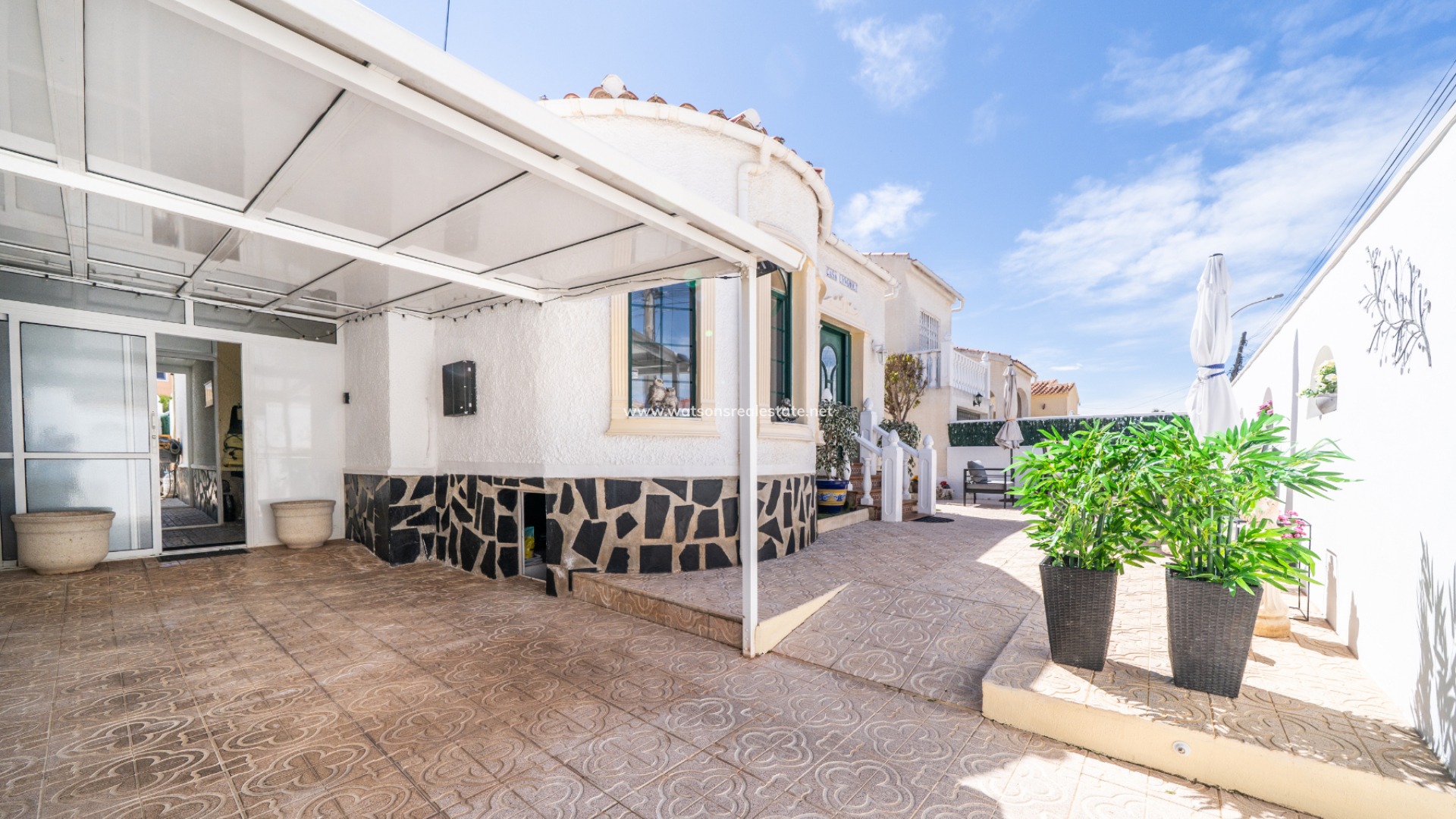 This charming detached “Lola” model property is located in the sought-after Urb. La Marina, This home features a fully paved front garden and a south facing terrace equipped with sun awnings for comfort. This property is located ➡️ only 5-10 minute stroll to the popular “Consum Square” area with supermarkets and an array of bars and restaurants. Further along the road is “The Grey Area” with more eateries and bars, all-in-all a great choice for everyone.