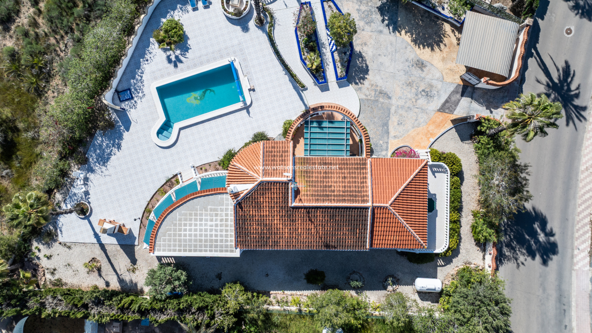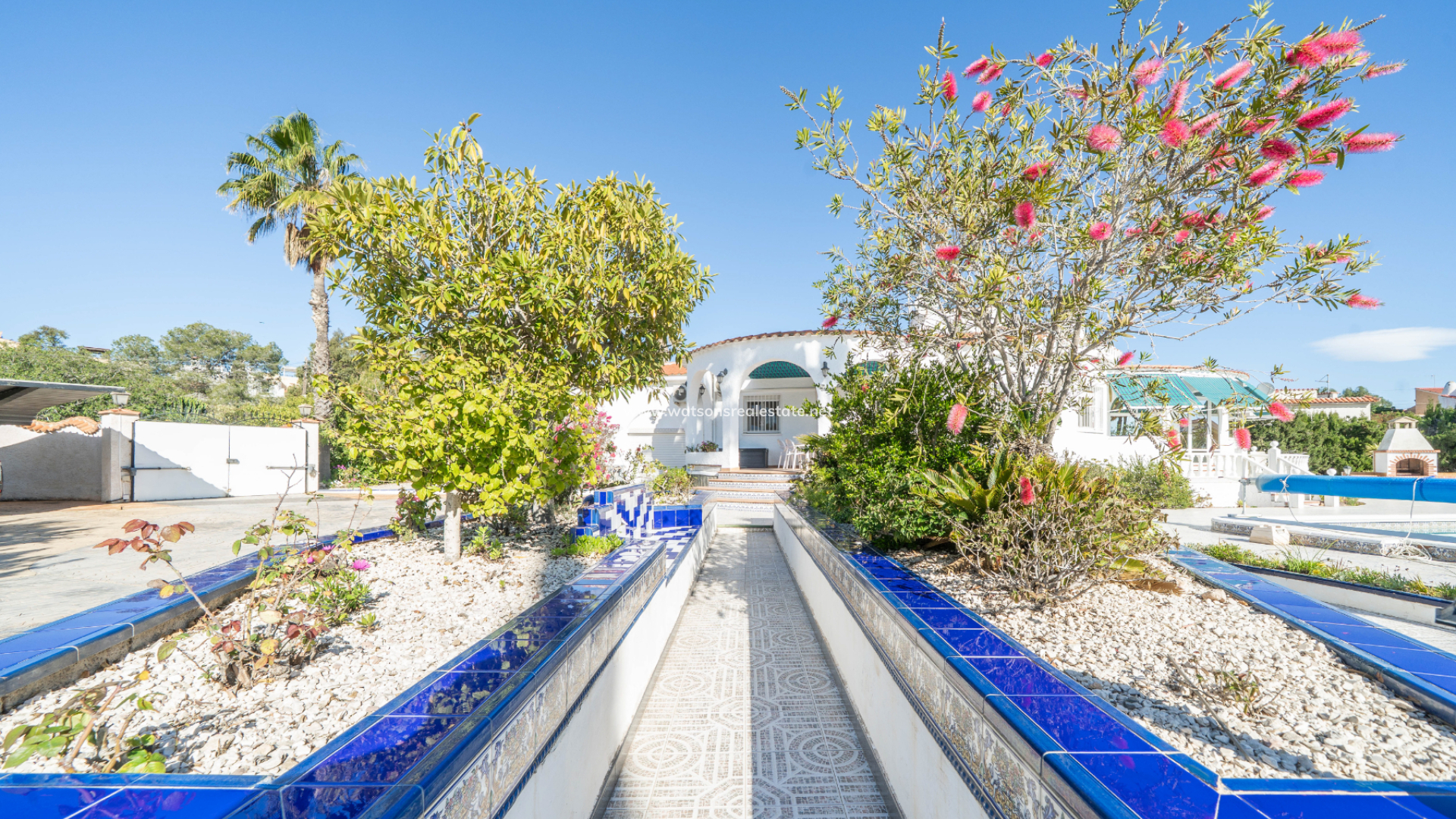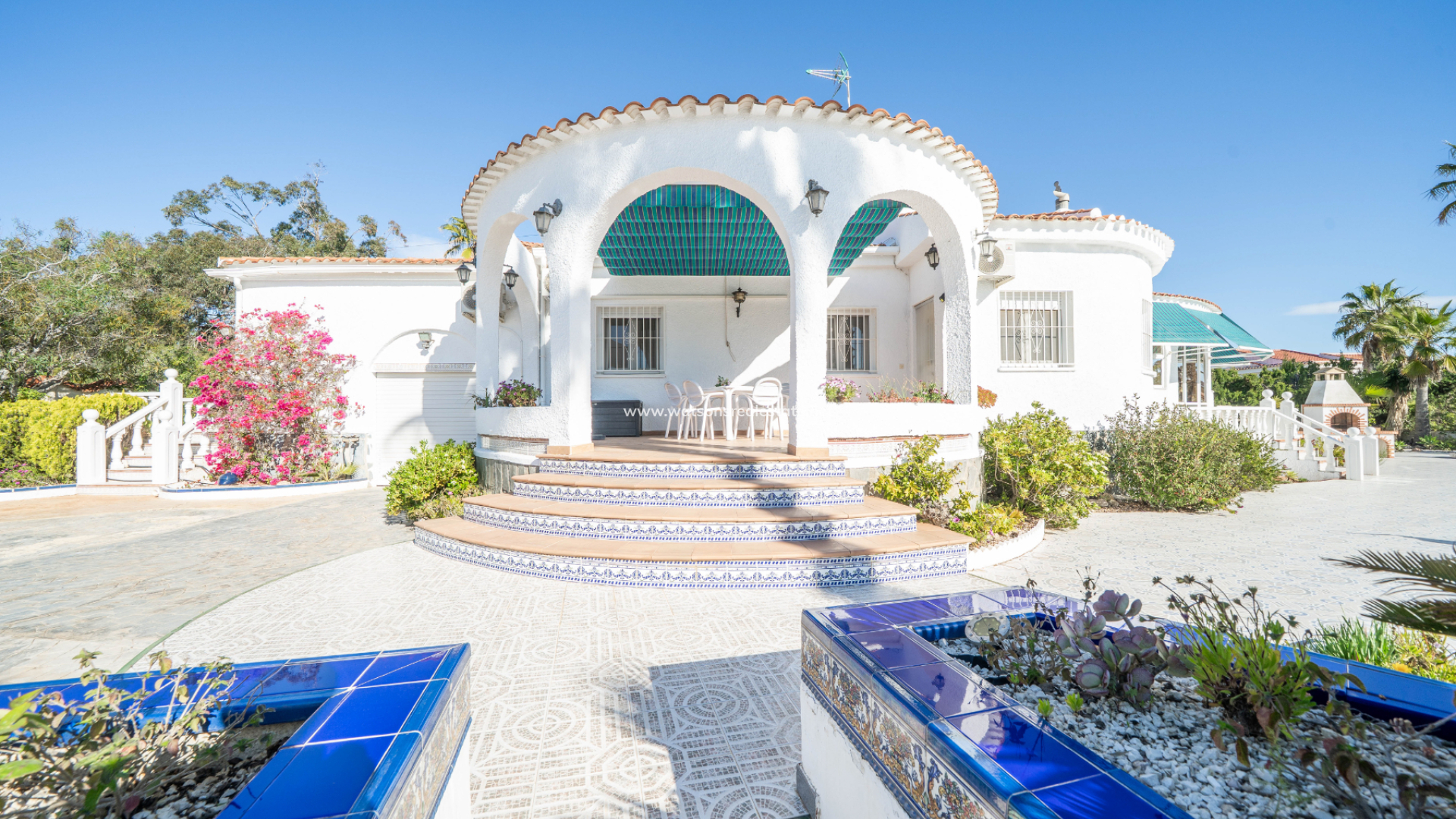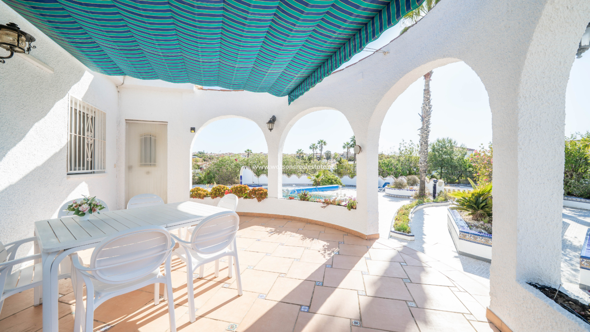 Accessed through an electric gate, the villa sits on beautifully maintained grounds with an irrigation system and enjoys views over the surrounding green area. The expansive plot provides excellent privacy and features ➡️ a superb heated 8 x 3.5 metre swimming pool with exterior shower, ideal for year-round enjoyment. A dedicated BBQ area creates the perfect setting for entertaining family and friends, while the attractive round terrace and additional west-facing terrace, both fitted with sun awnings, offer lovely spaces to relax and enjoy the sunshine throughout the day.