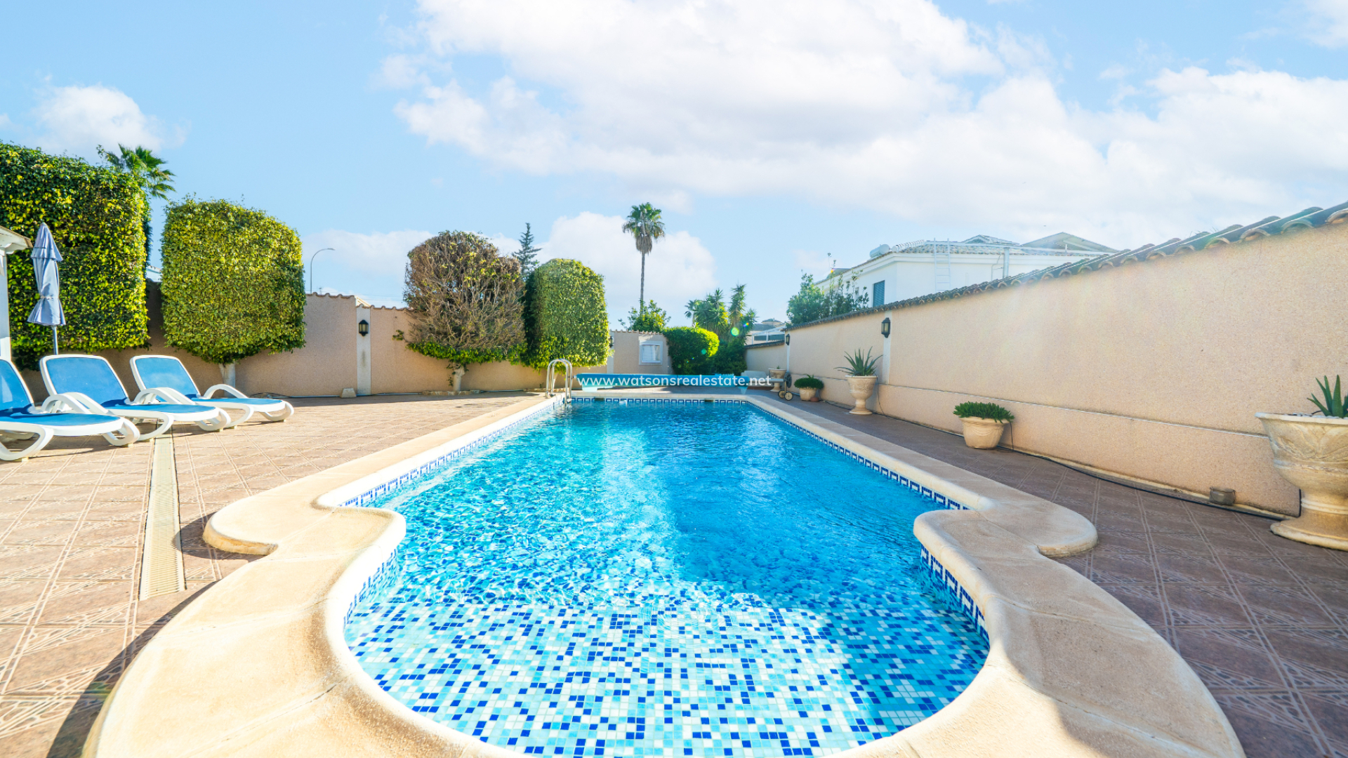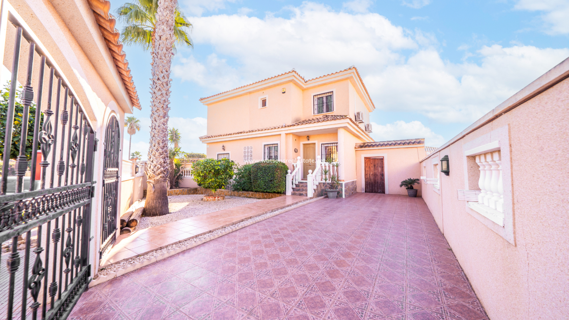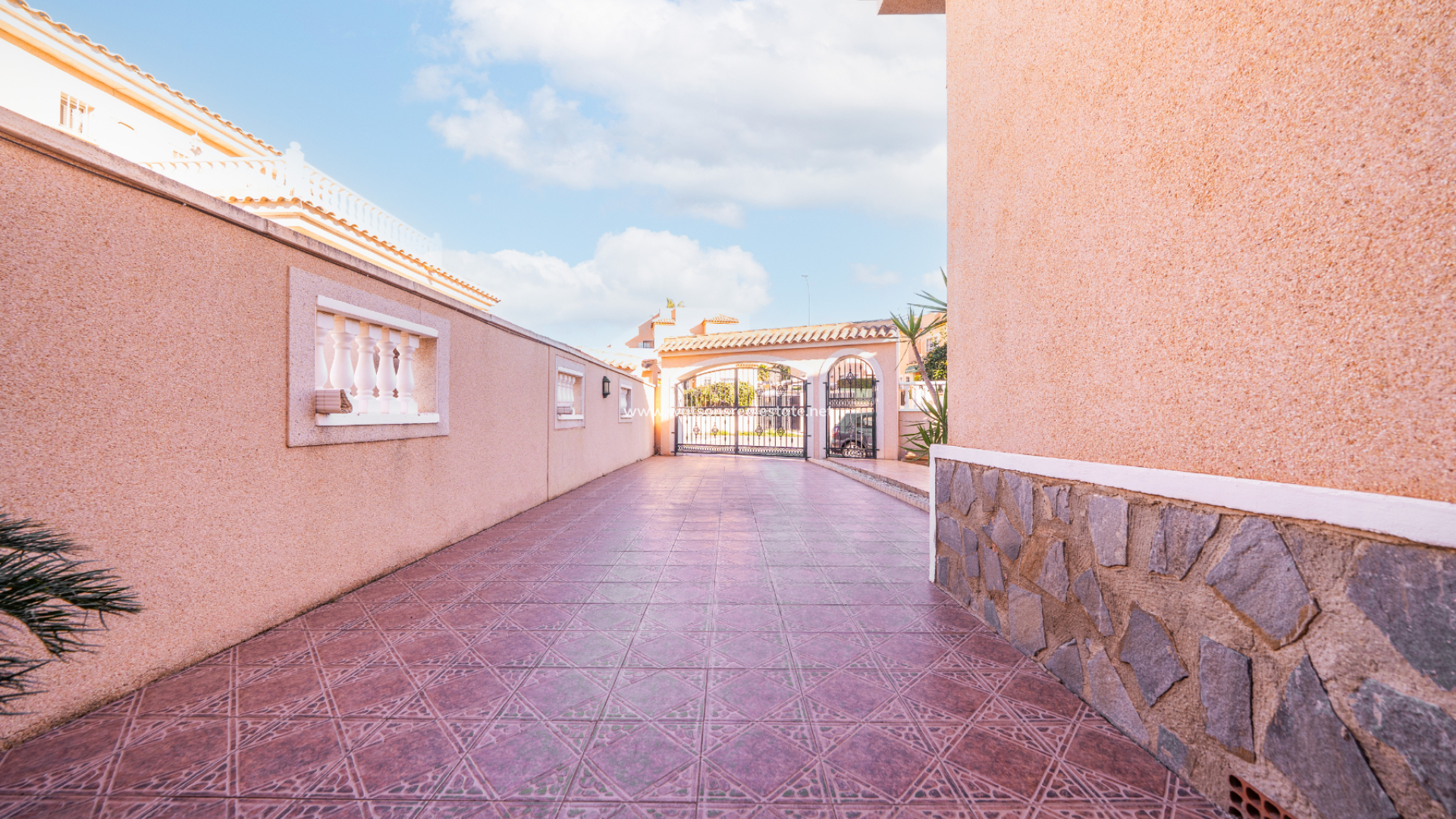 Denna fristående villa av modellen "Azucena" i Urbanisation La Marina erbjuder generöst invändigt utrymme och en välorganiserad planlösning, belägen på en trevlig 531 m² stor tomt ➡️ bara en kort promenad från lokala bekvämligheter och bara några minuter från ytterligare tjänster med bil. Fastigheten på 132 m² har uppdaterade funktioner inklusive nya fönster och en säkerhetsdörr. Utrymmet utomhus är centrerat kring ➡️ en 8 x 4 swimmingpool med en utomhusdusch och en extra sittgrupp, vilket skapar en trevlig miljö för avkoppling eller underhållning.