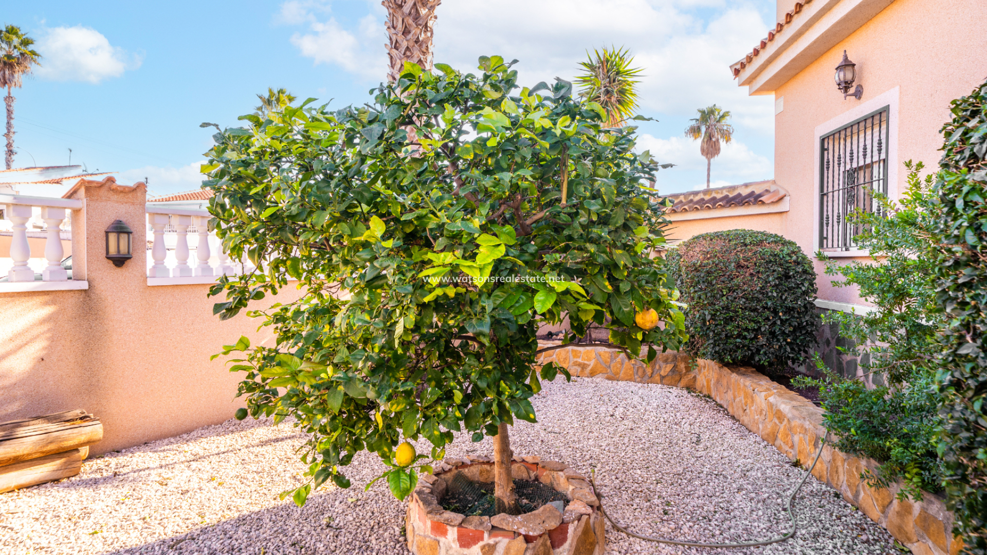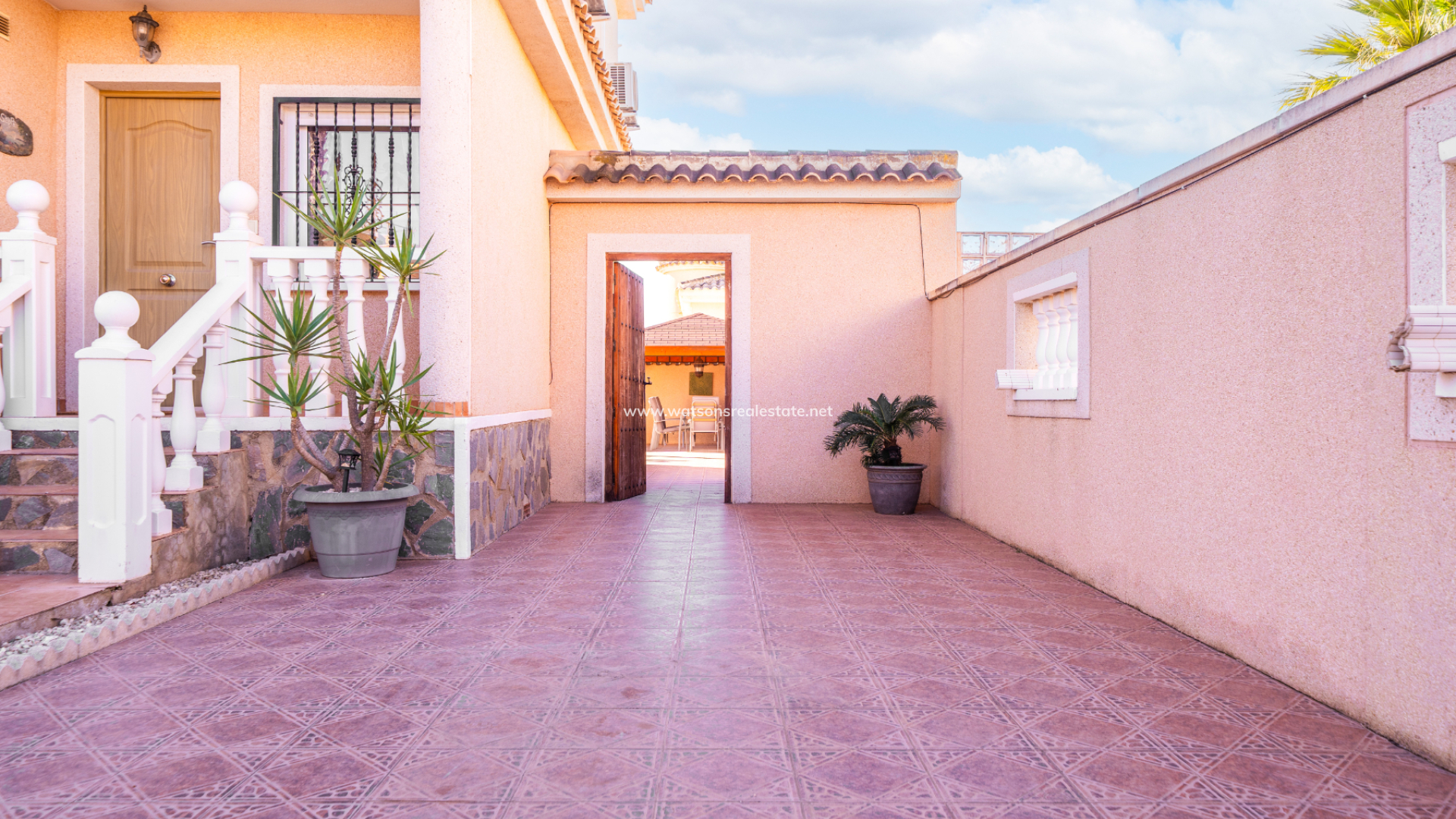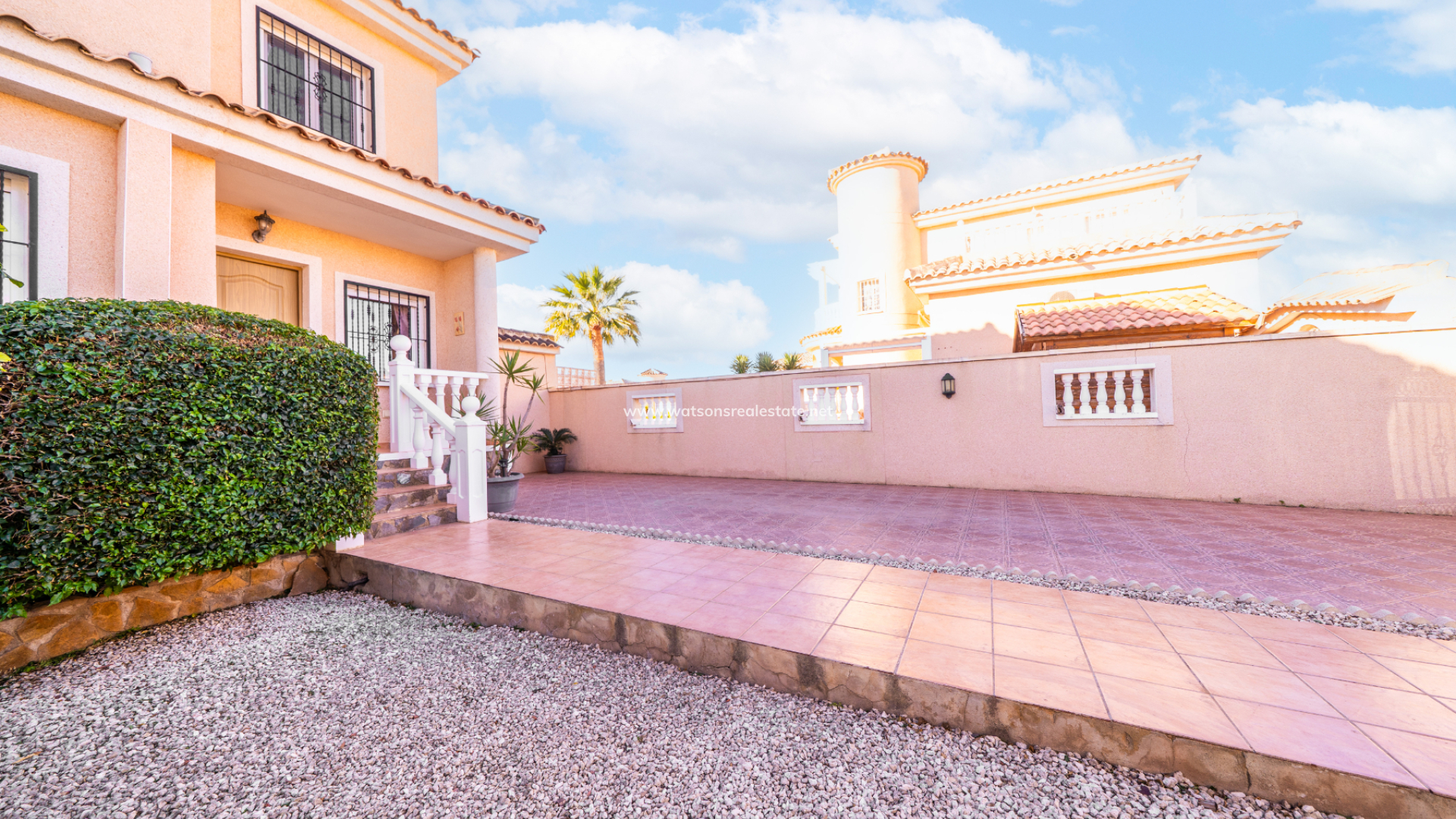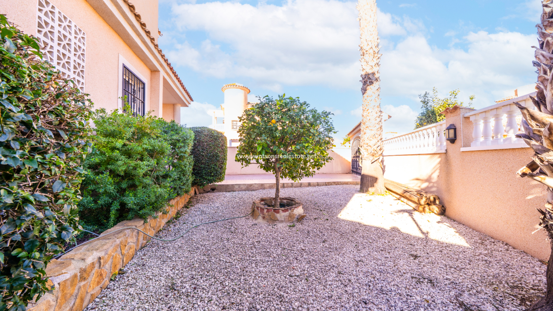 Denna fristående villa av modellen "Azucena" i Urbanisation La Marina erbjuder generöst invändigt utrymme och en välorganiserad planlösning, belägen på en trevlig 531 m² stor tomt ➡️ bara en kort promenad från lokala bekvämligheter och bara några minuter från ytterligare tjänster med bil. Fastigheten på 132 m² har uppdaterade funktioner inklusive nya fönster och en säkerhetsdörr. Utrymmet utomhus är centrerat kring ➡️ en 8 x 4 swimmingpool med en utomhusdusch och en extra sittgrupp, vilket skapar en trevlig miljö för avkoppling eller underhållning.