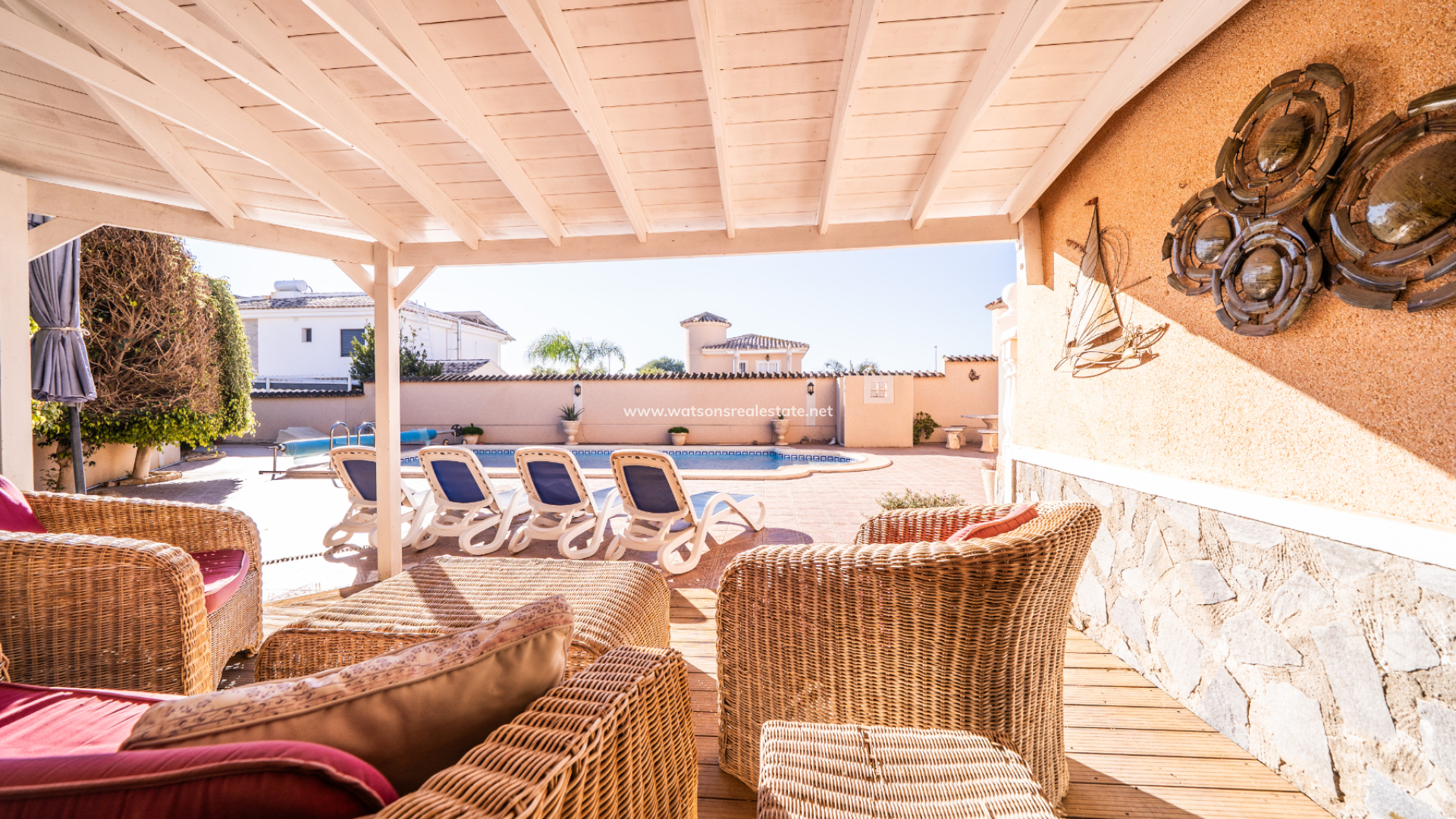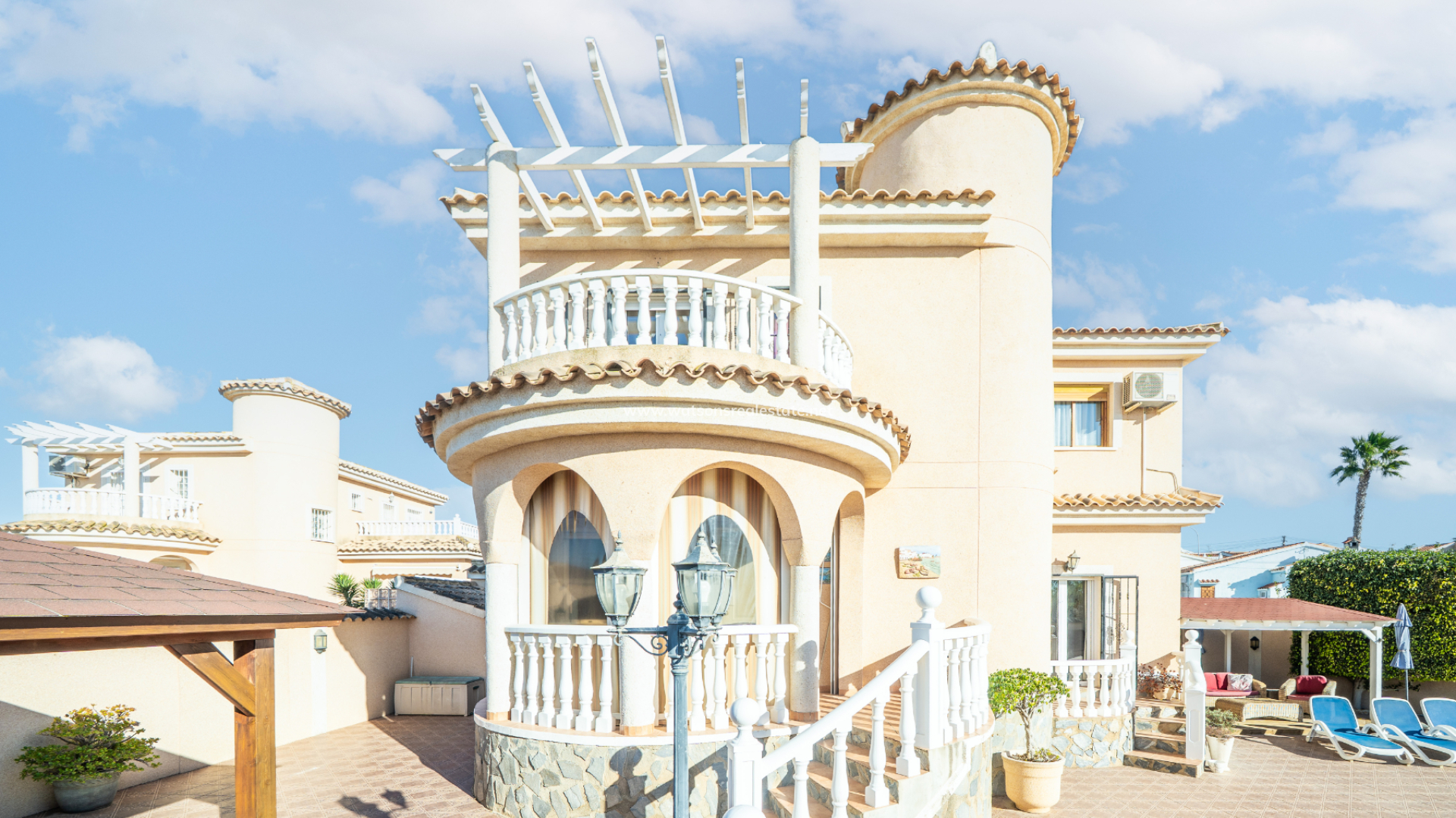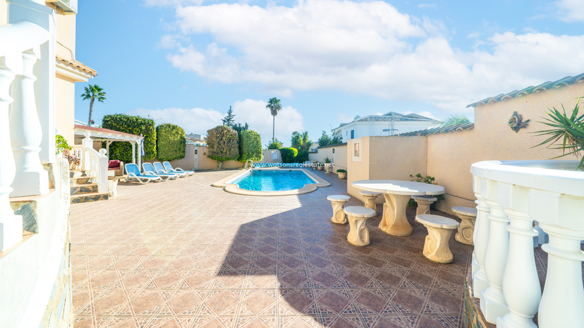Denna villa erbjuder en välproportionerad interiör, utomhusutrymme lämpligt för njutning året runt och ett bekvämt läge inom den populära La Marina-gemenskapen.