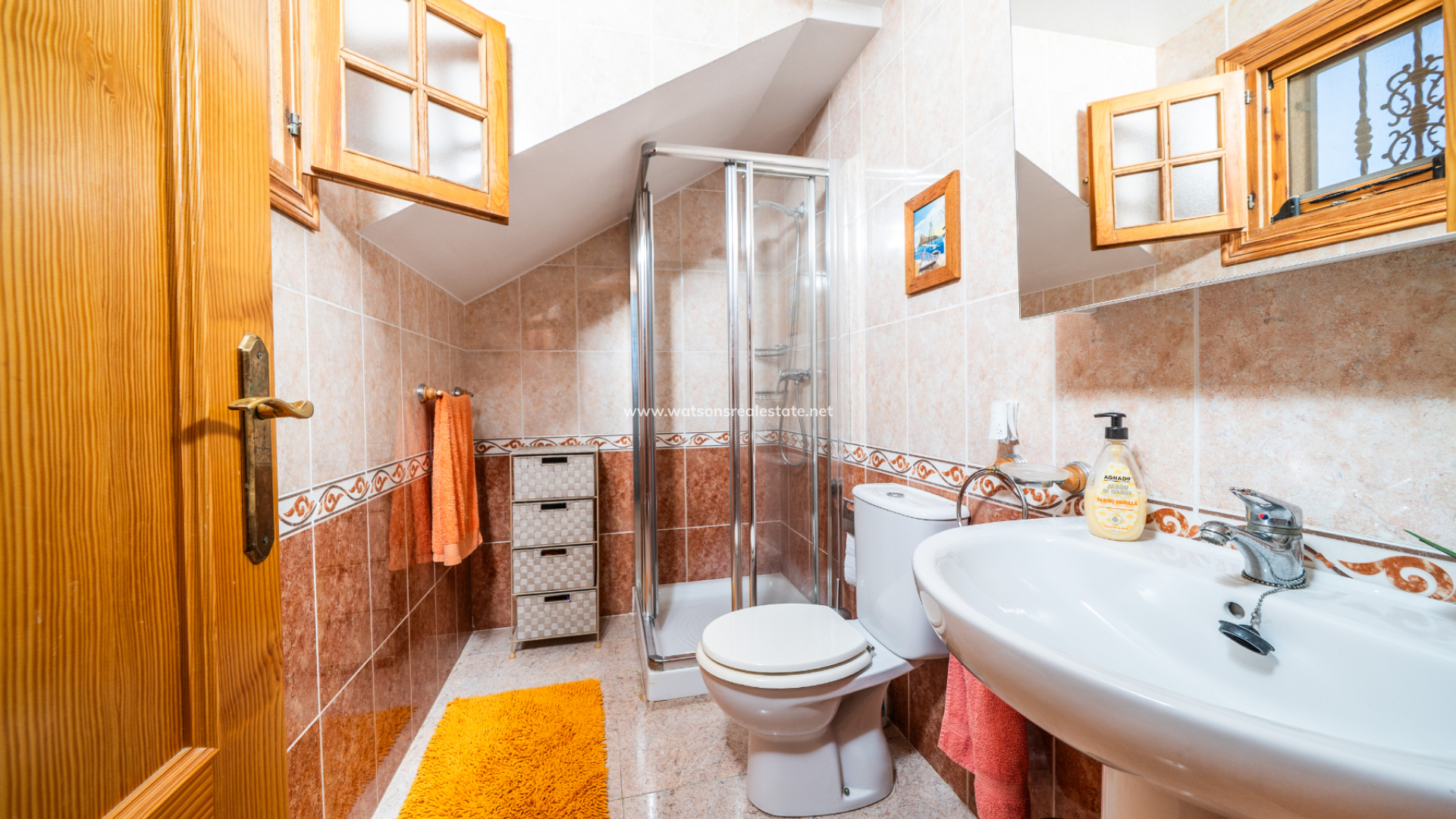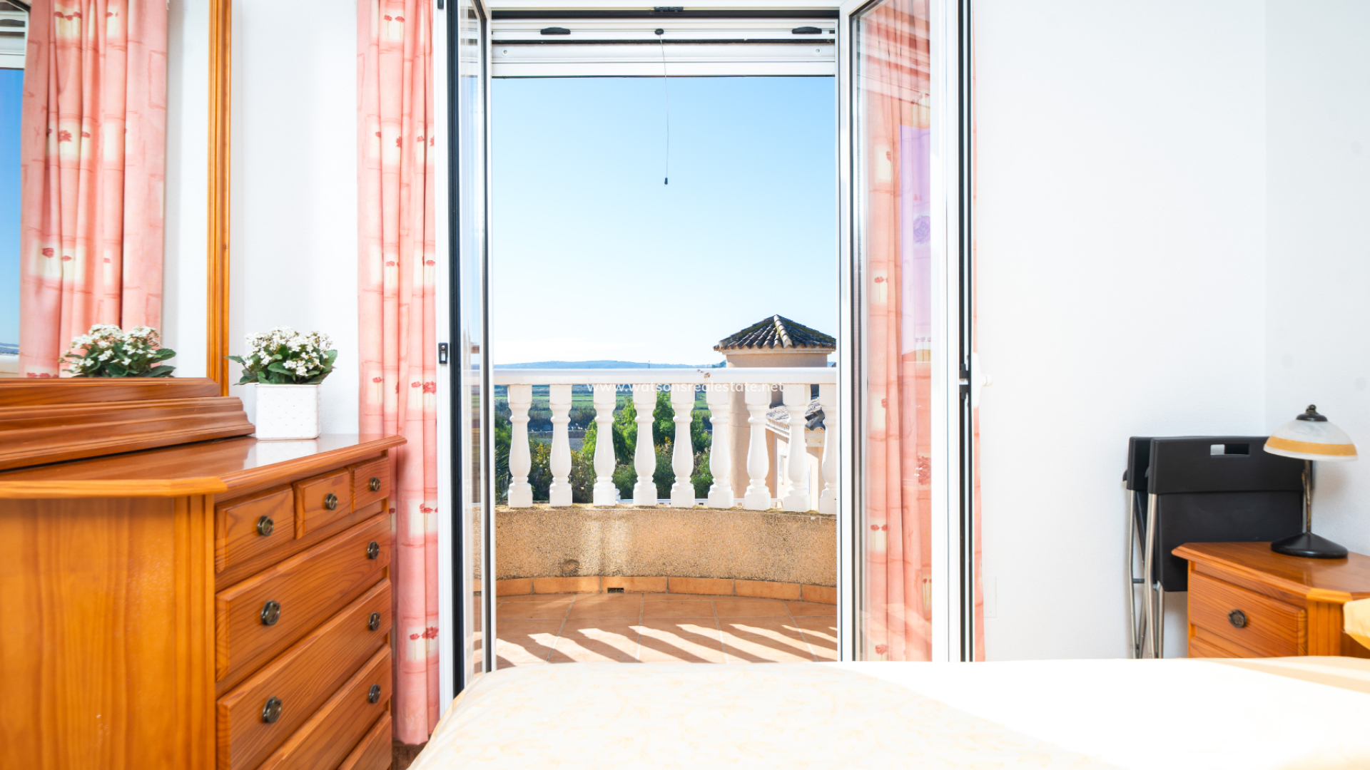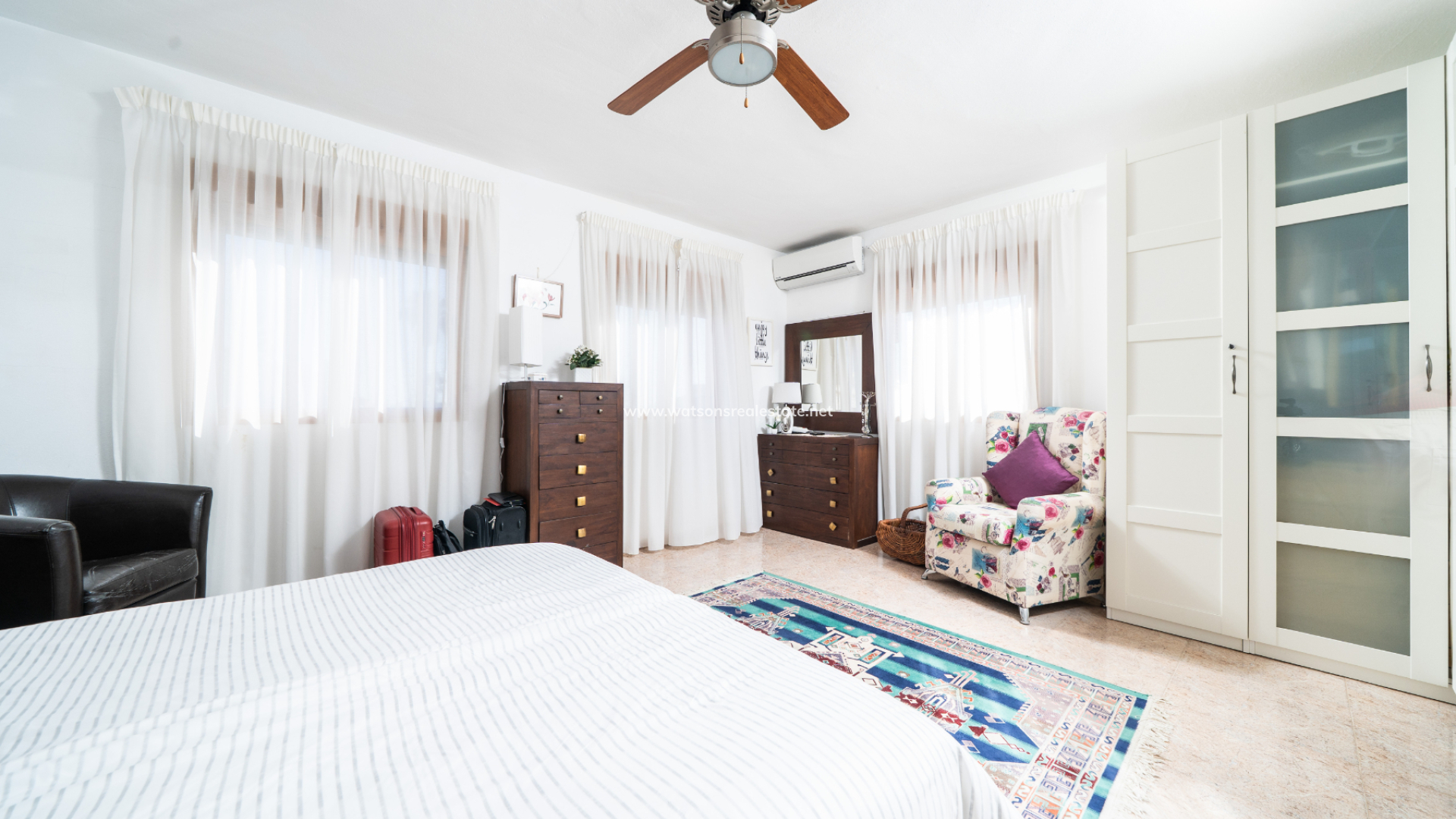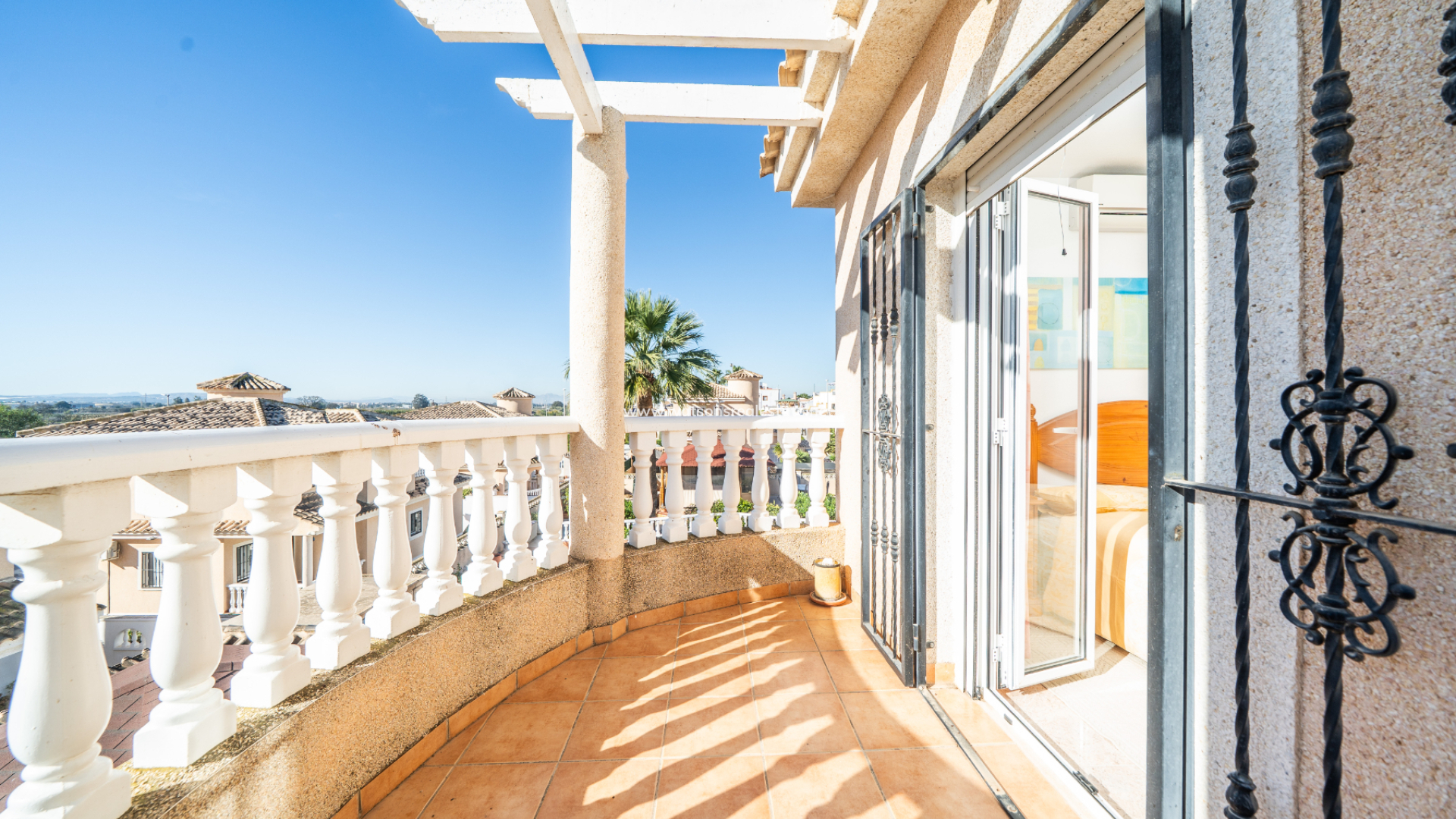 På övervåningen är det andra sovrummet ett dubbelrum med inbyggda garderober, luftkonditionering och altandörrar som öppnar upp till en balkong med vacker, öppen utsikt över landsbygden. Det andra badrummet erbjuder ett badkar i full storlek, toalett, bidé och handfat. Det tredje sovrummet är ett tvåbäddsrum (med två enkelsängar) med inbyggda garderober och luftkonditionering. Det stora sovrummet är rymligt, med luftkonditionering, takfläktar, stora garderober och ett modernt en-suite badrum med en generös dusch, kommod och toalett.