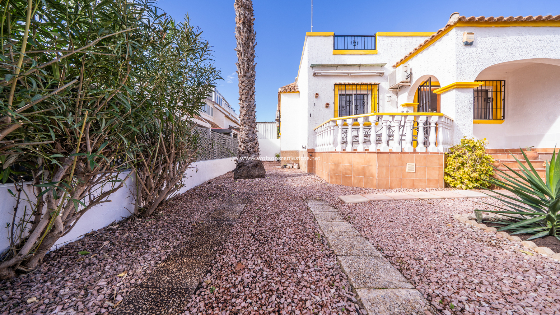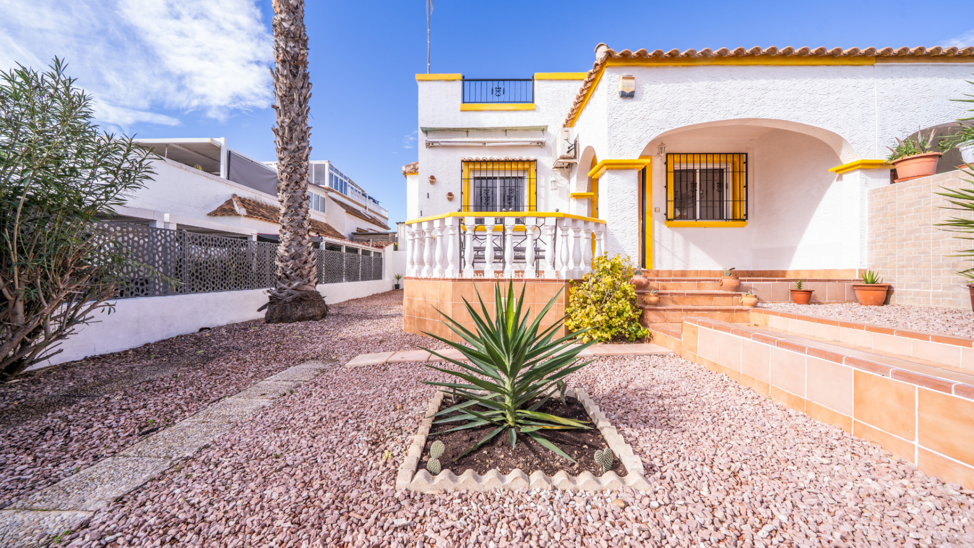 Denna quad-villa modell Julia ligger i den populära urbanisationen La Marina och erbjuder en fantastisk möjlighet som hyresinvestering, ➡️ med tillgång till en gemensam pool och ett bekvämt läge nära faciliteter.