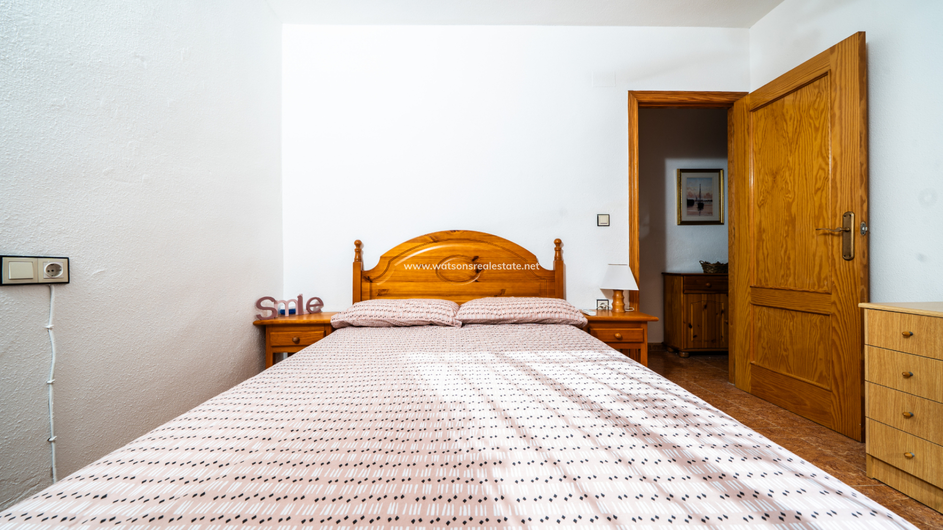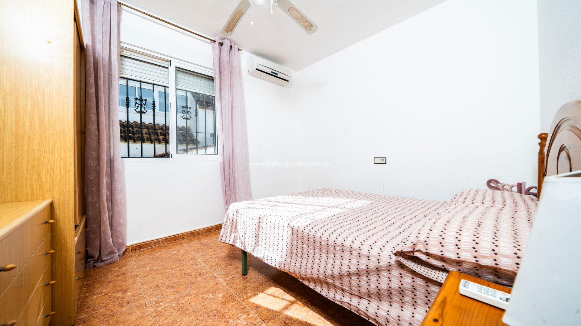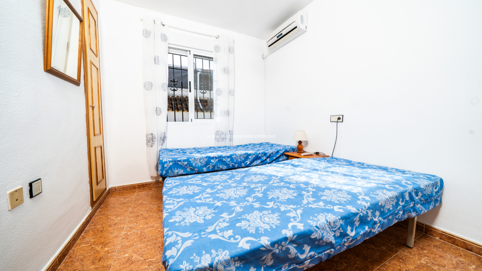 Det finns totalt tre sovrum. Det första sovrummet är ett dubbelrum med inbyggda garderober, takfläkt och luftkonditionering. Det andra sovrummet är ett tvåbäddsrum, också med inbyggda garderober, takfläkt och luftkonditionering. Det tredje sovrummet är ytterligare ett dubbelrum, utrustat med takfläkt och luftkonditionering. Badrummet inkluderar ett badkar, WC, kommod och en elektrisk handdukstork.