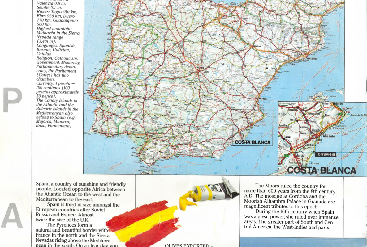 Russell Cowan & Co. är idag ett av de största brittiska fastighetsbolagen i Spanien och organiserar veckovisa mässor över hela landet. Intresset för att investera i ett hus i Spanien har ökat markant sedan Spanien gick med i Europeiska ekonomiska gemenskapen (EEG) 1986. Fastighetsvärdena har också stigit i motsvarande grad. Spanien är ett demokratiskt styrt land. Kungen heter Juan Carlos och hans hustru är drottning Sofía.