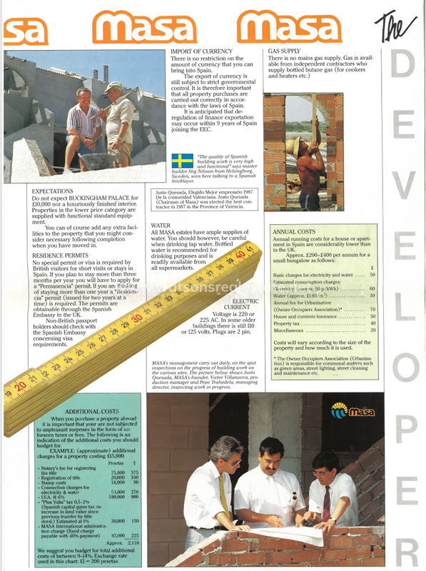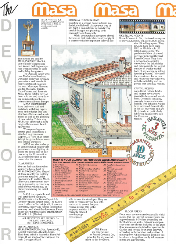 Vi vill gärna dela några utdrag ur de ursprungliga MASA-broschyrerna: små glimtar från förr som påminner dig om hur Urbanisation La Marina först presenterades för världen.